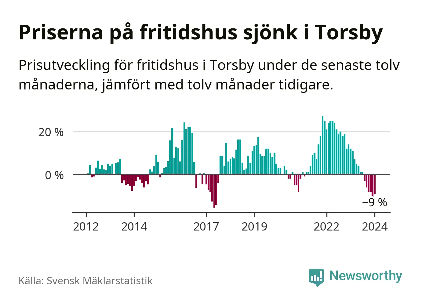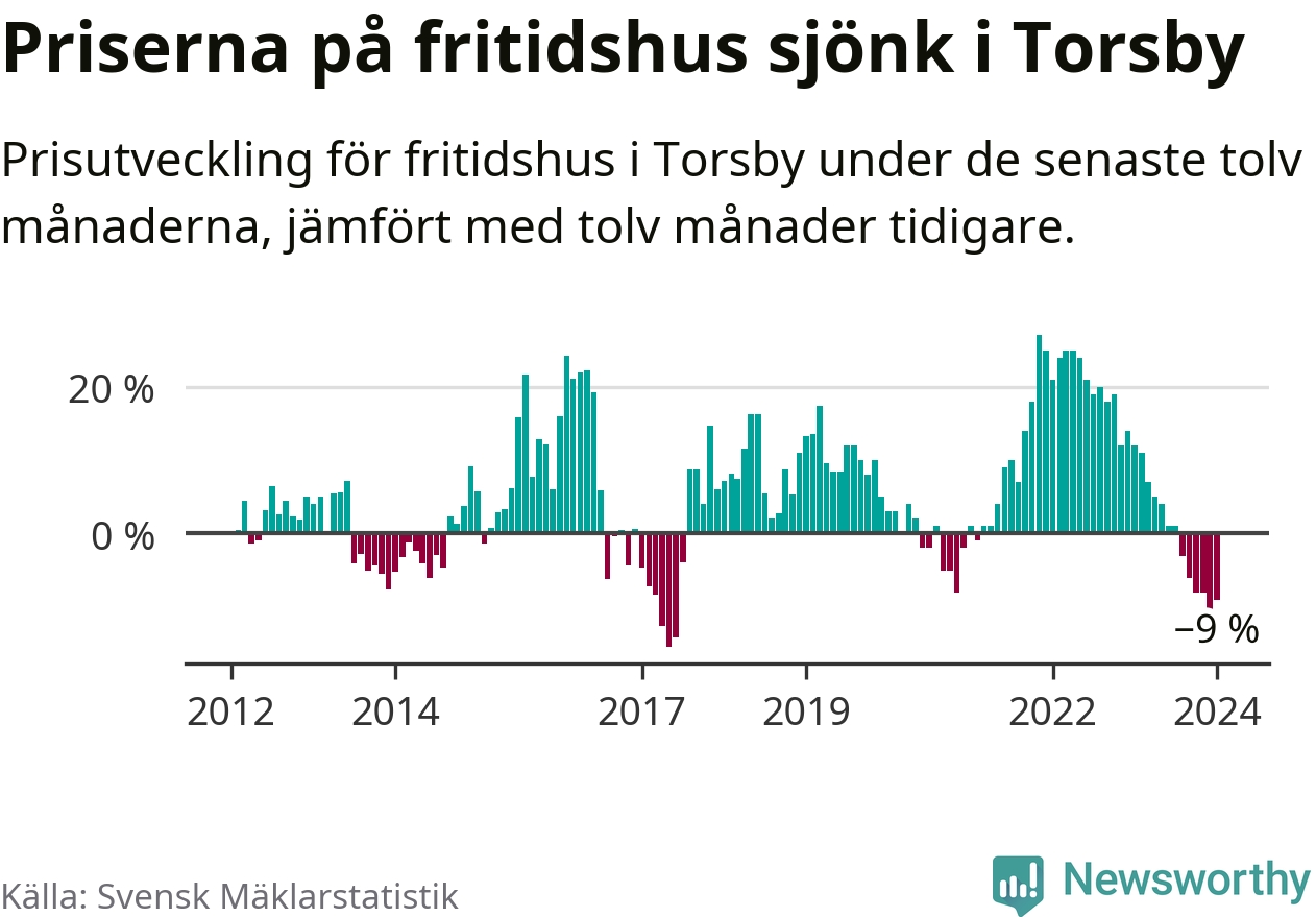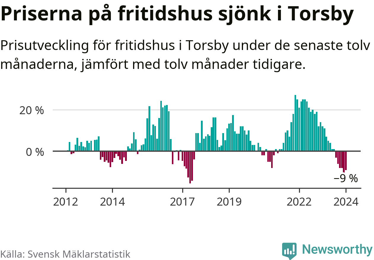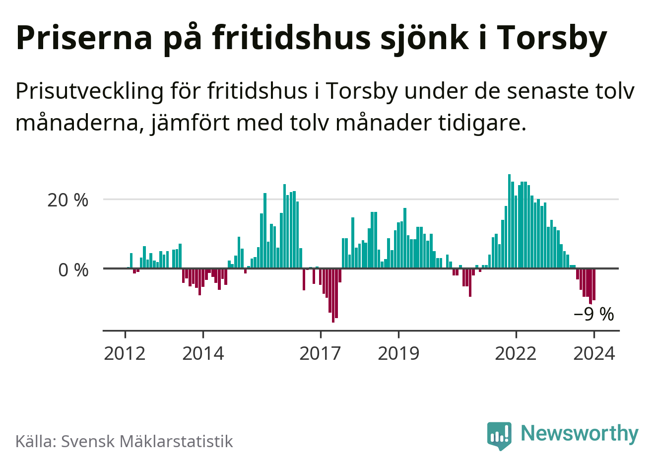 Priserna på fritidshus har gått ner i Torsby kommun. Medelpriset på försäljningarna under de senaste tolv månaderna visar på en nedgång med 9 procent.