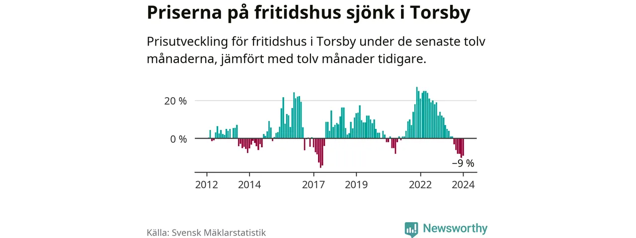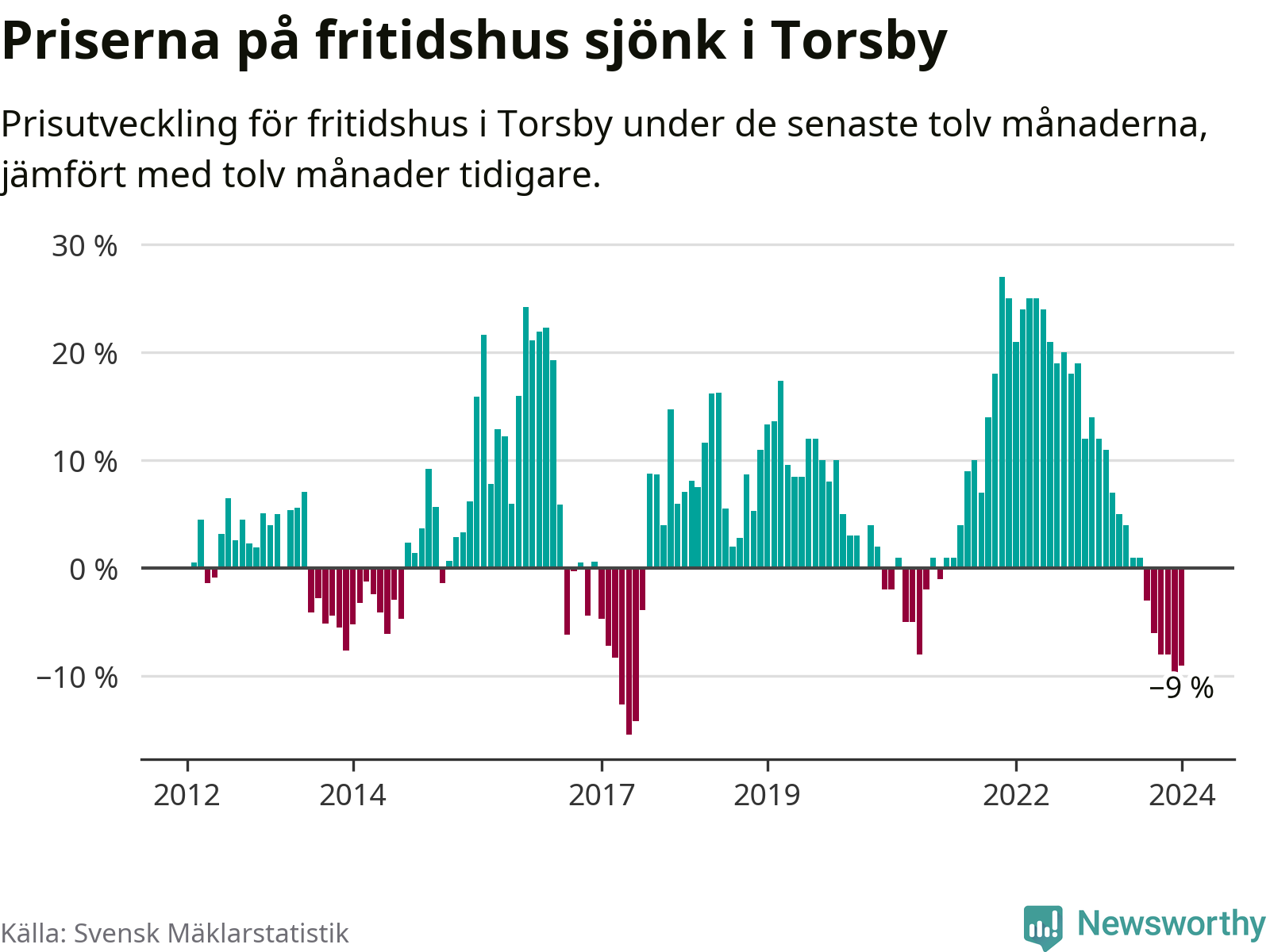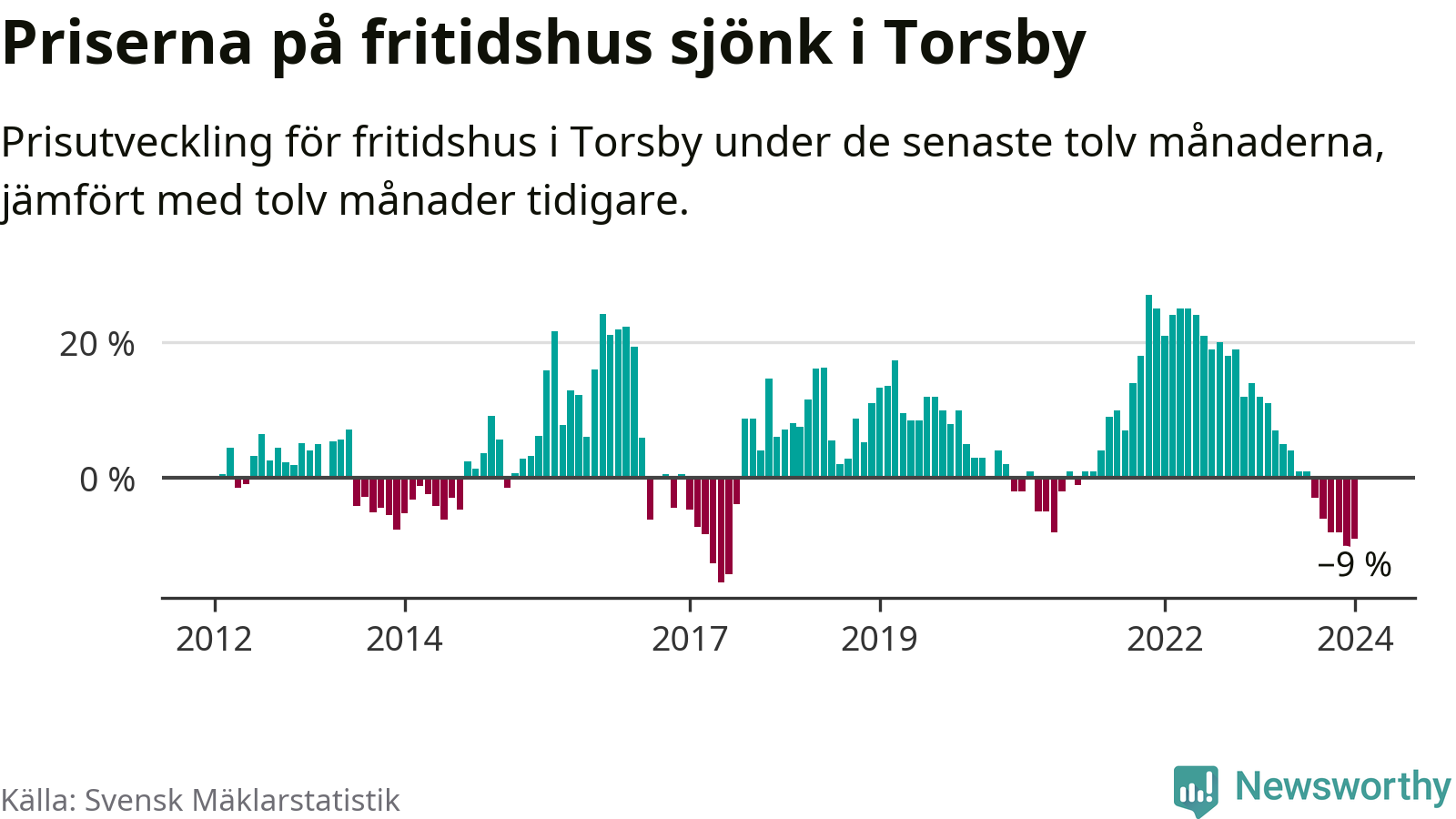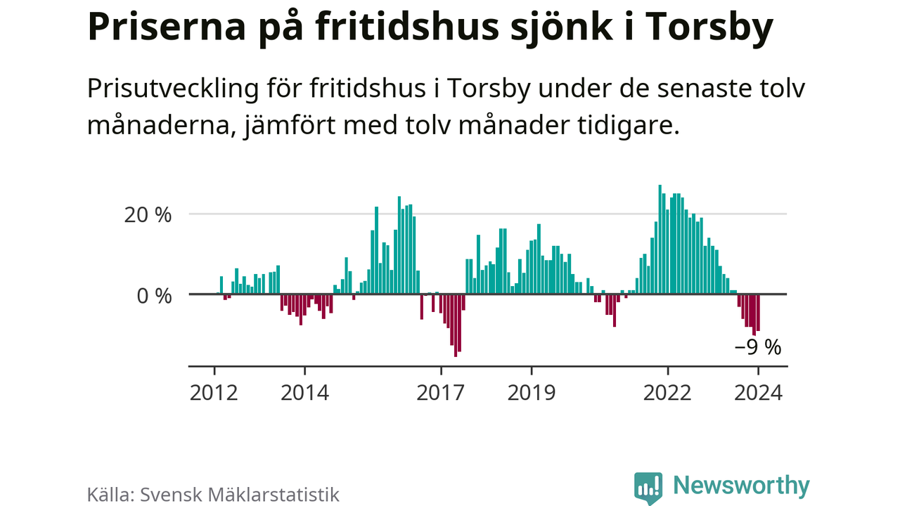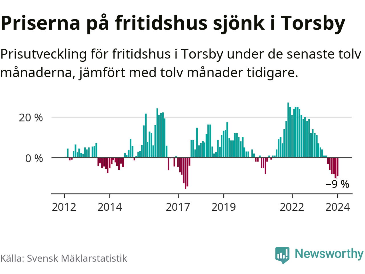 Priserna på fritidshus har gått ner i Torsby kommun. Medelpriset på försäljningarna under de senaste tolv månaderna visar på en nedgång med 9 procent.