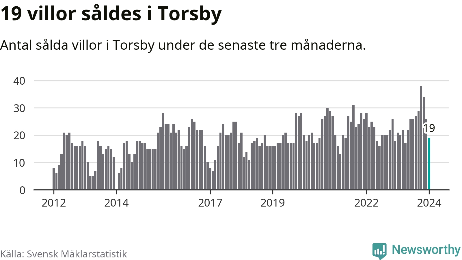 Mellan november och januari gjordes sammanlagt 19 affärer med villor i Torsby kommun. Det kan jämföras med 21 vid motsvarande tid i fjol.