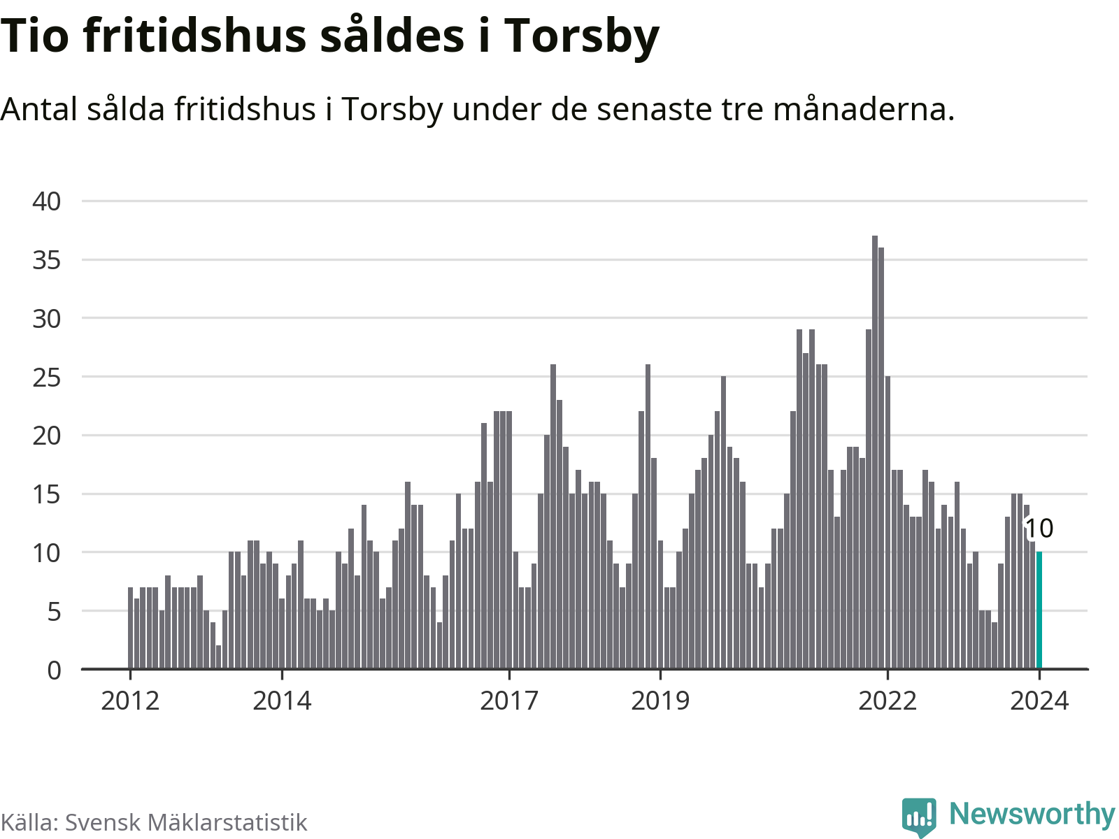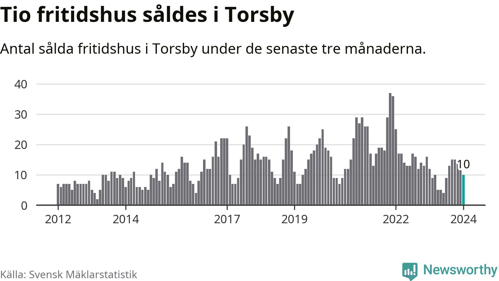 Sammanlagt såldes tio fritidshus i Torsby kommun mellan november 2023 och januari till ett genomsnittligt pris på 1,3 miljoner kronor. I fjol gjordes tolv affärer vid den här tiden på året.