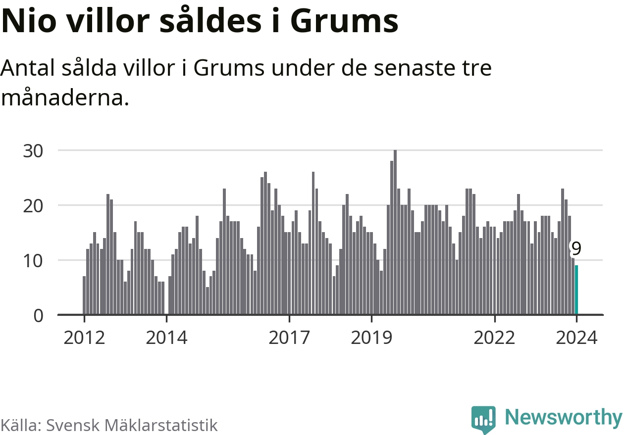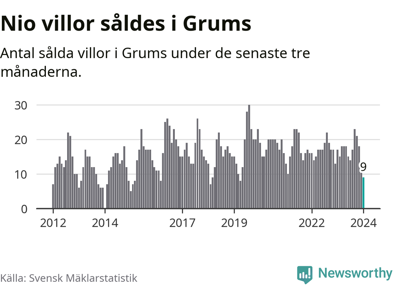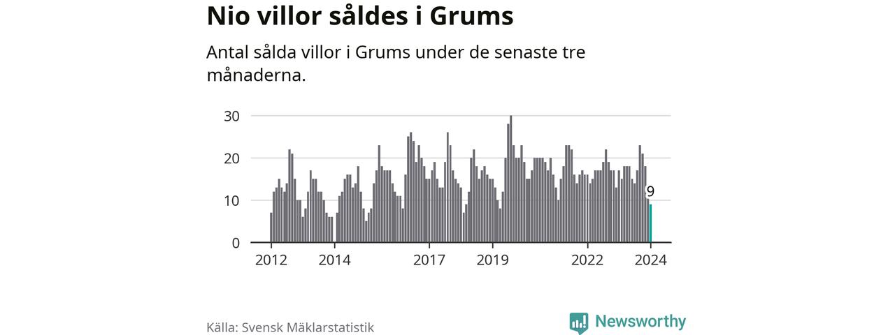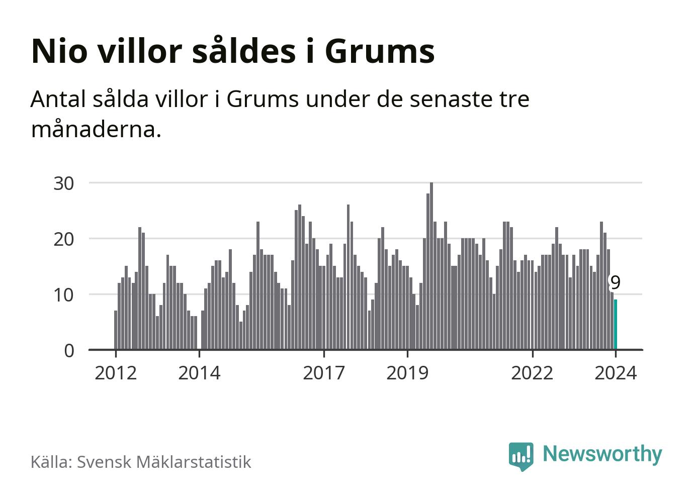 Mellan november och januari gjordes sammanlagt nio affärer med villor i Grums kommun. Det kan jämföras med 17 vid motsvarande tid i fjol.