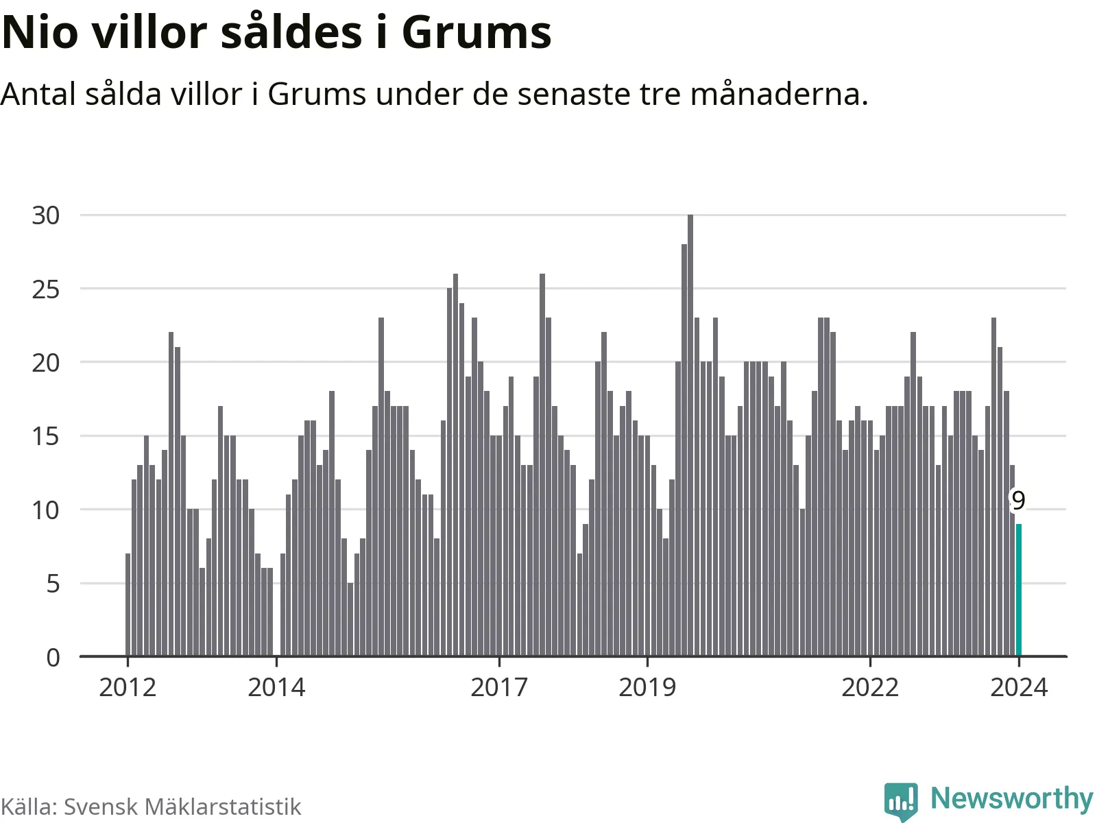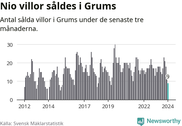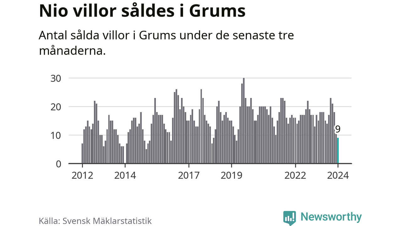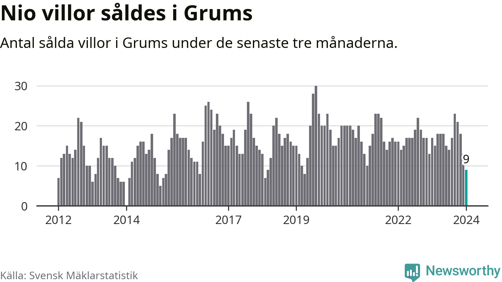 Mellan november och januari gjordes sammanlagt nio affärer med villor i Grums kommun. Det kan jämföras med 17 vid motsvarande tid i fjol.