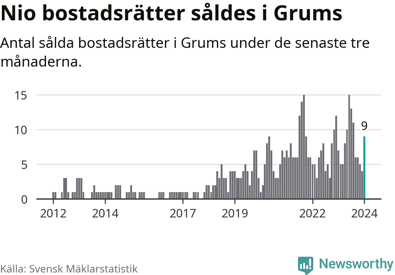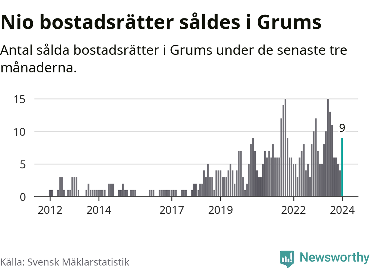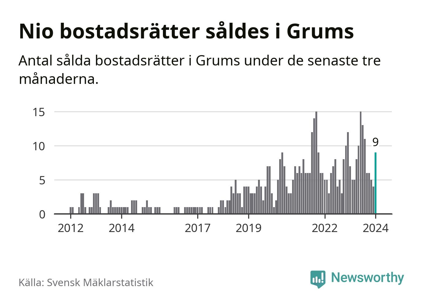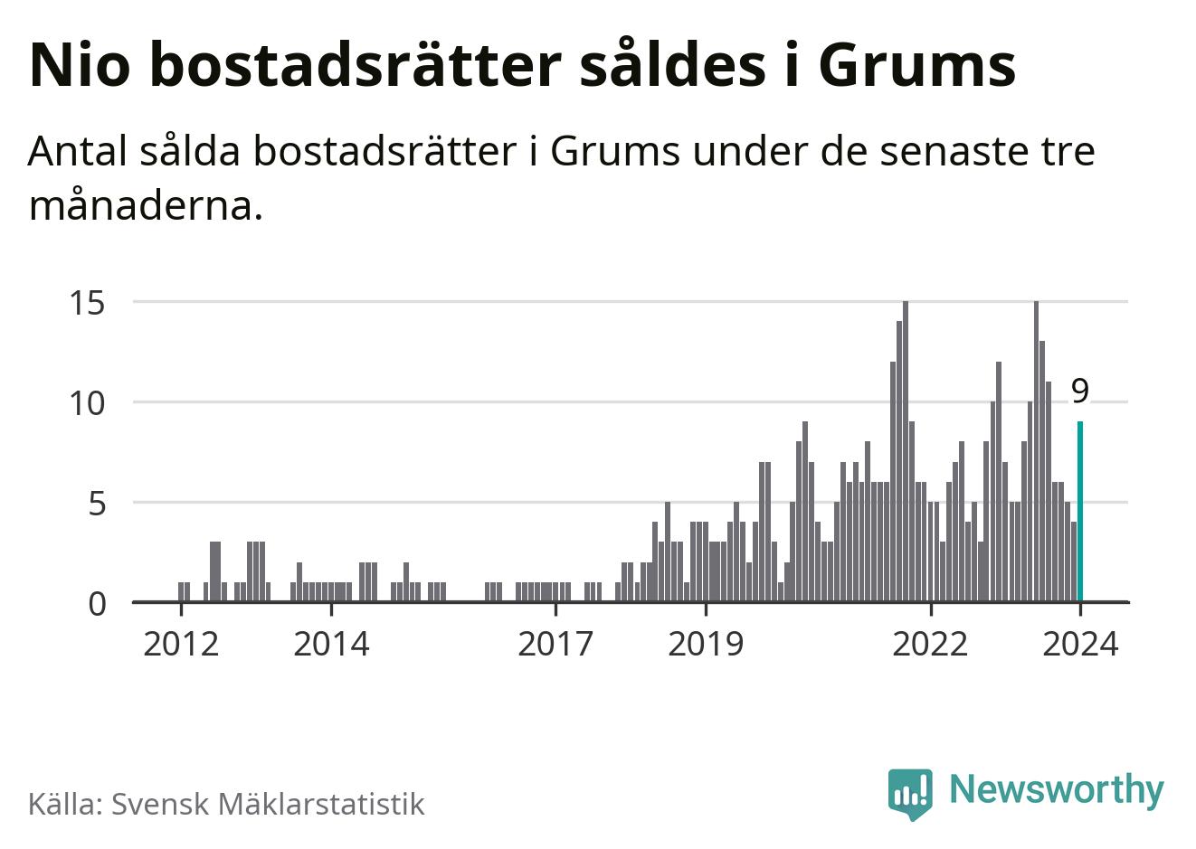 Mellan november och januari gjordes sammanlagt nio affärer med bostadsrätter i Grums kommun. Det kan jämföras med sju vid motsvarande tid i fjol.