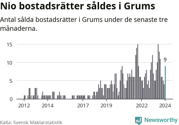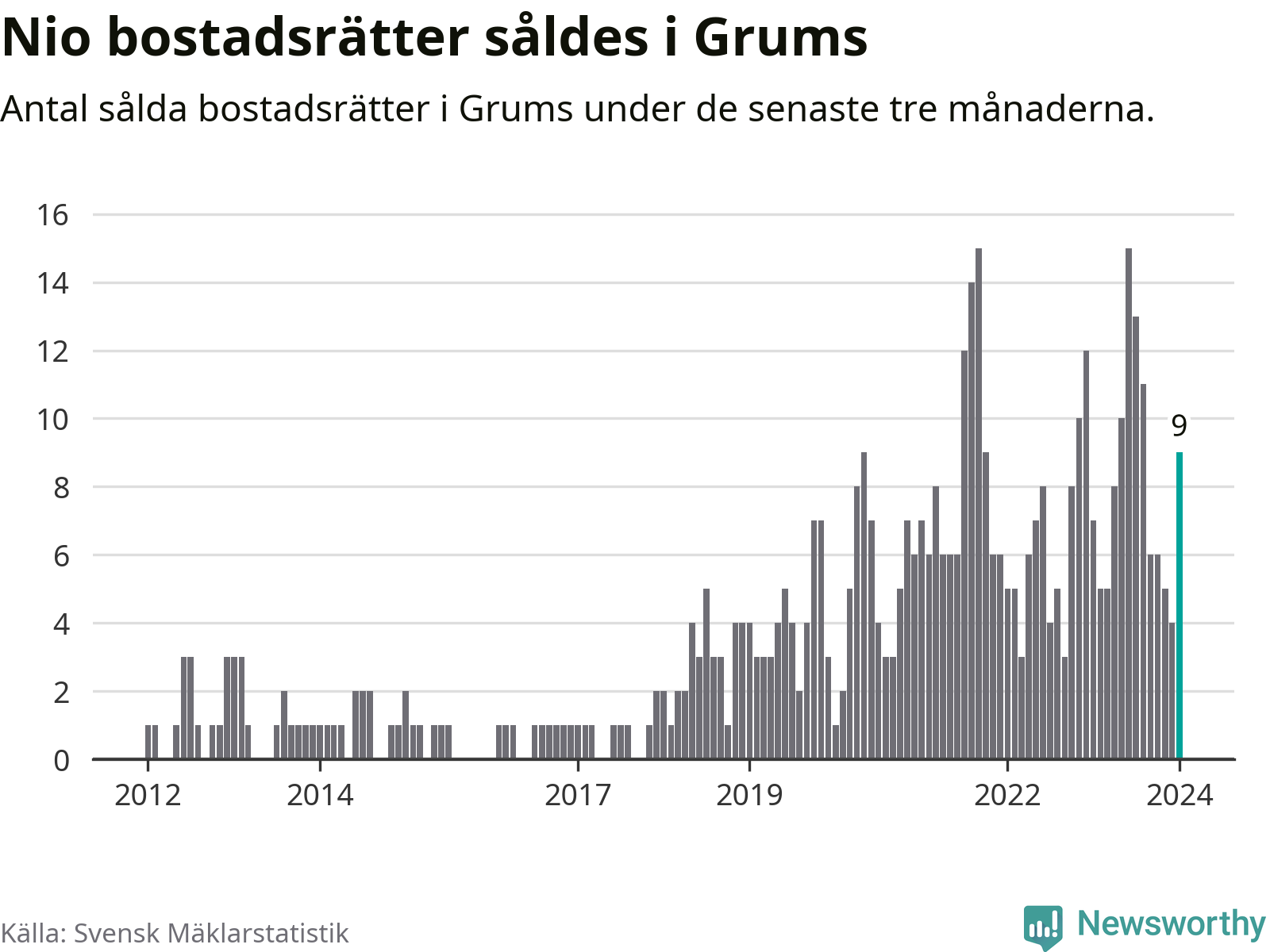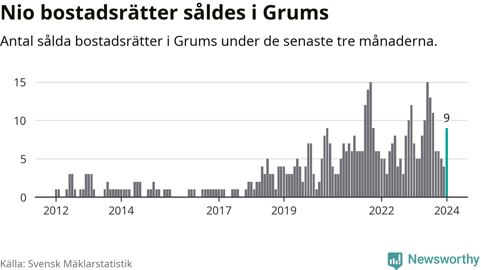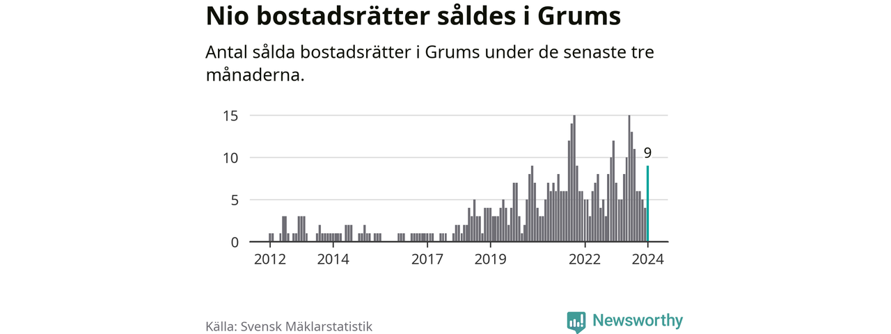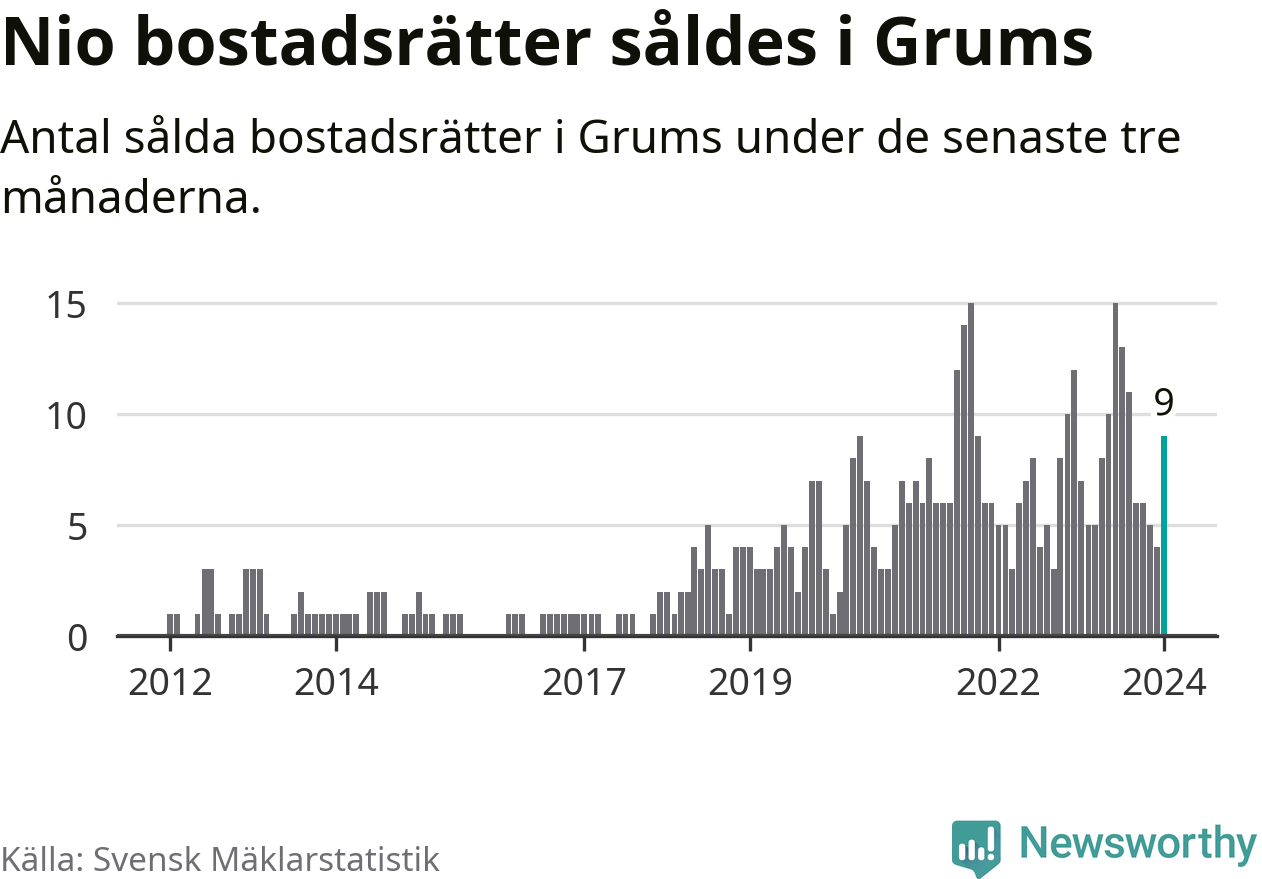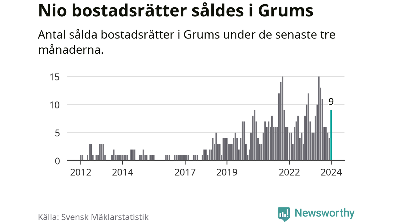 Mellan november och januari gjordes sammanlagt nio affärer med bostadsrätter i Grums kommun. Det kan jämföras med sju vid motsvarande tid i fjol.