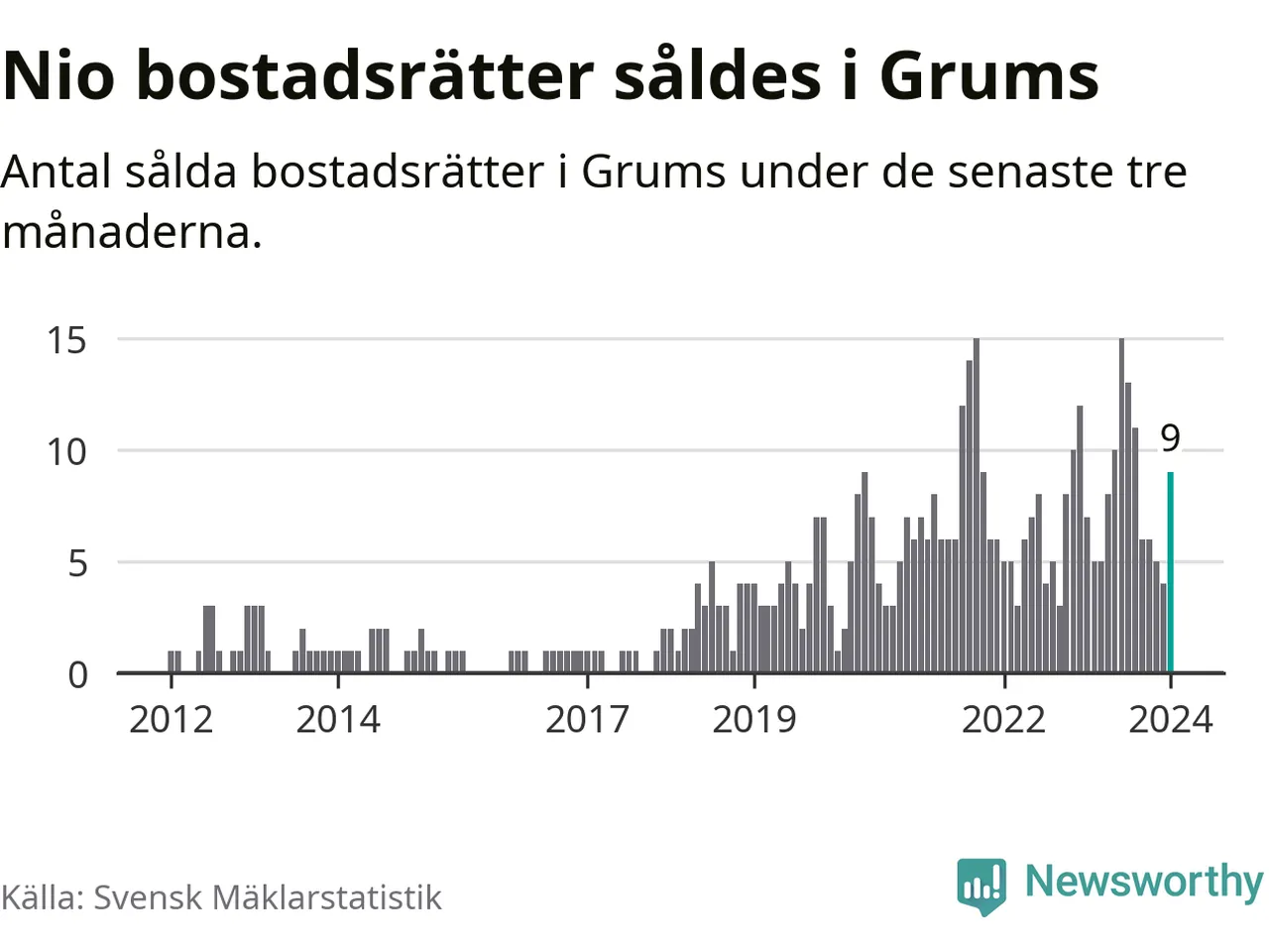 De sålda bostadsrätterna i Grums kommun hade ett genomsnittligt pris på 0,3 miljoner kronor.