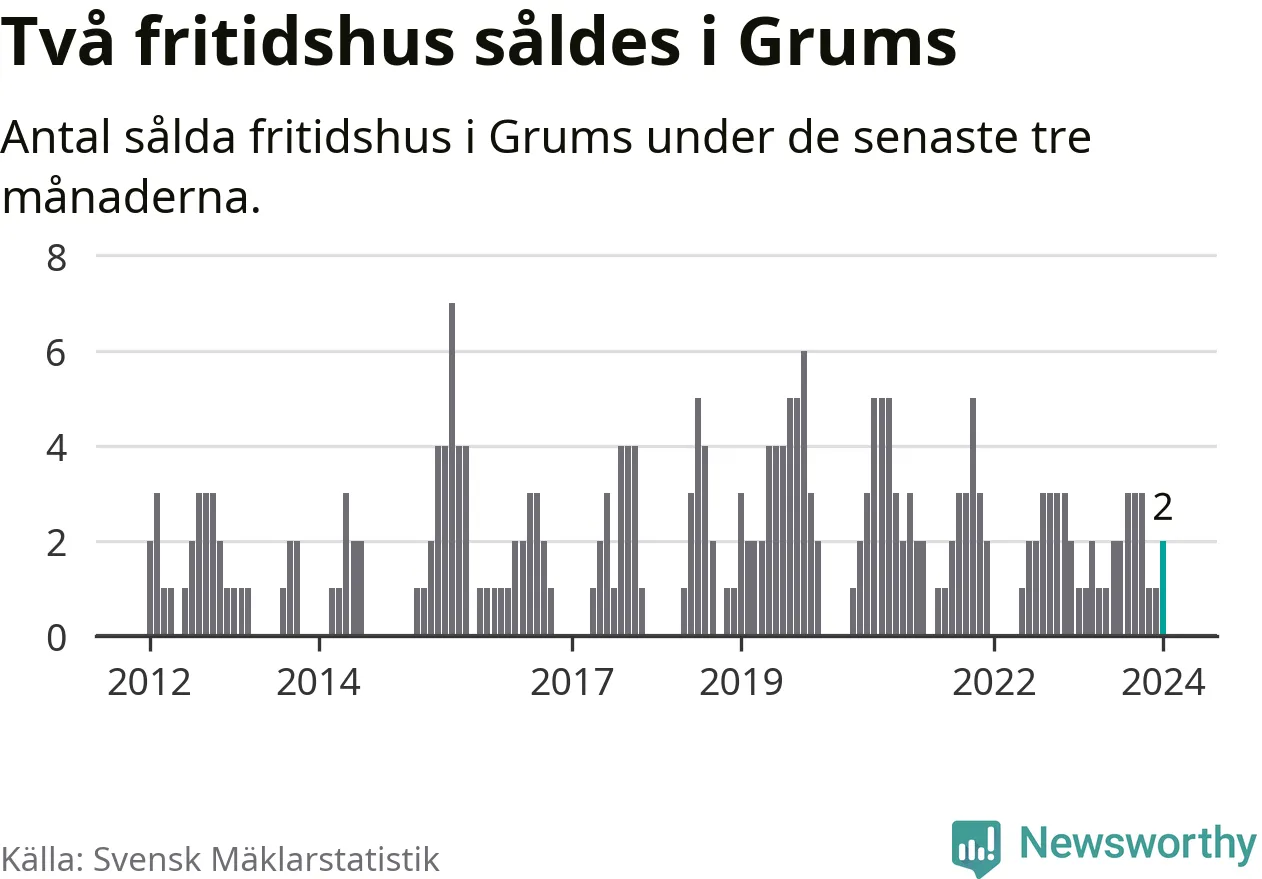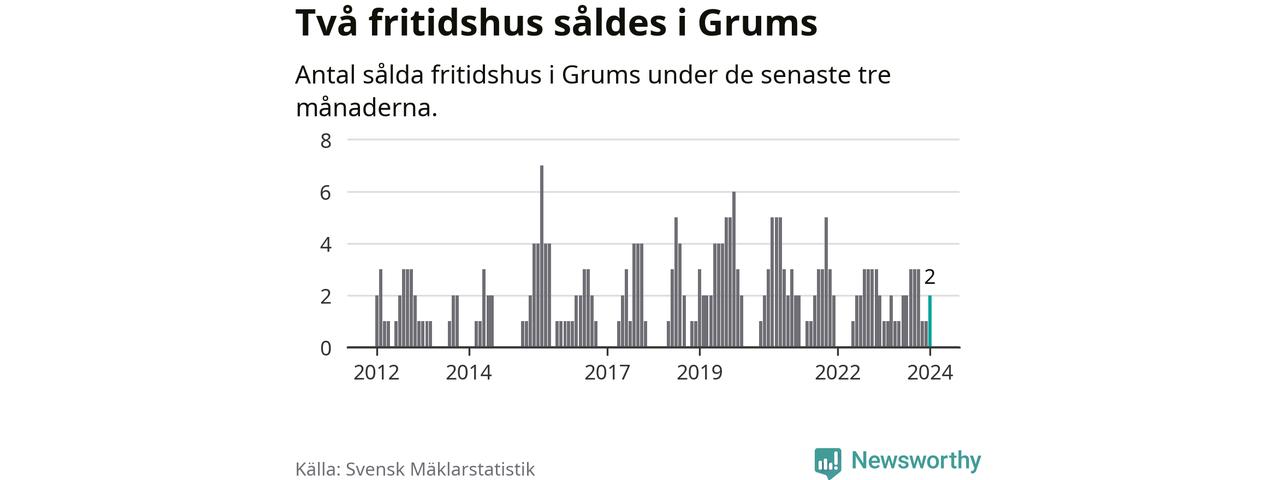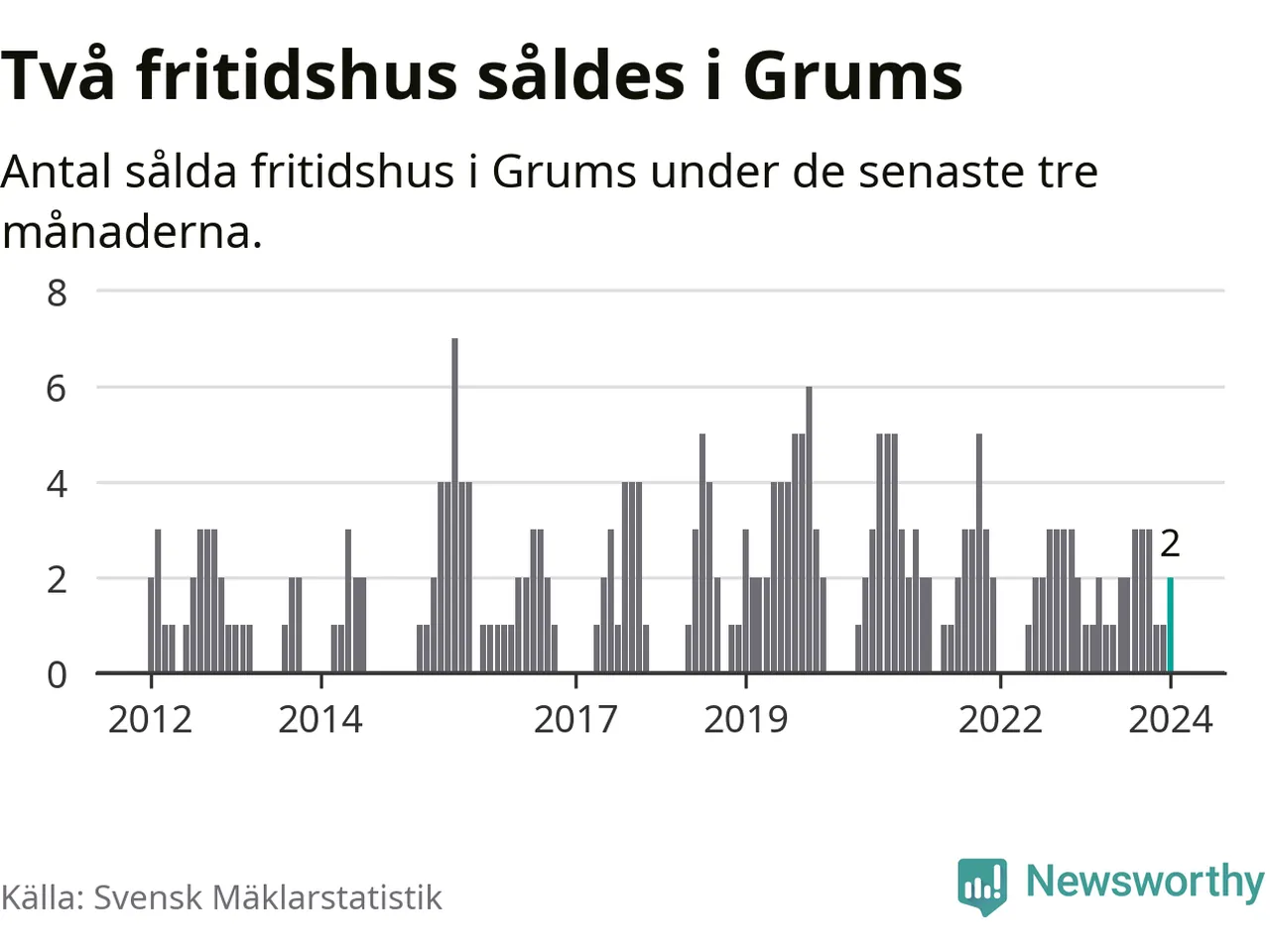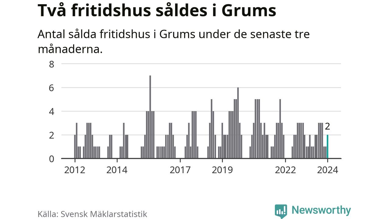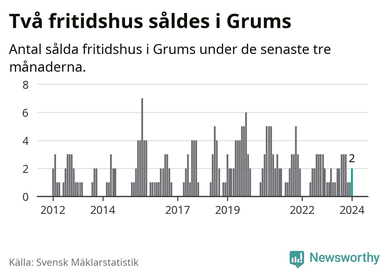 Mellan november och januari gjordes sammanlagt två affärer med fritidshus i Grums kommun. Det kan jämföras med ett vid motsvarande tid i fjol.