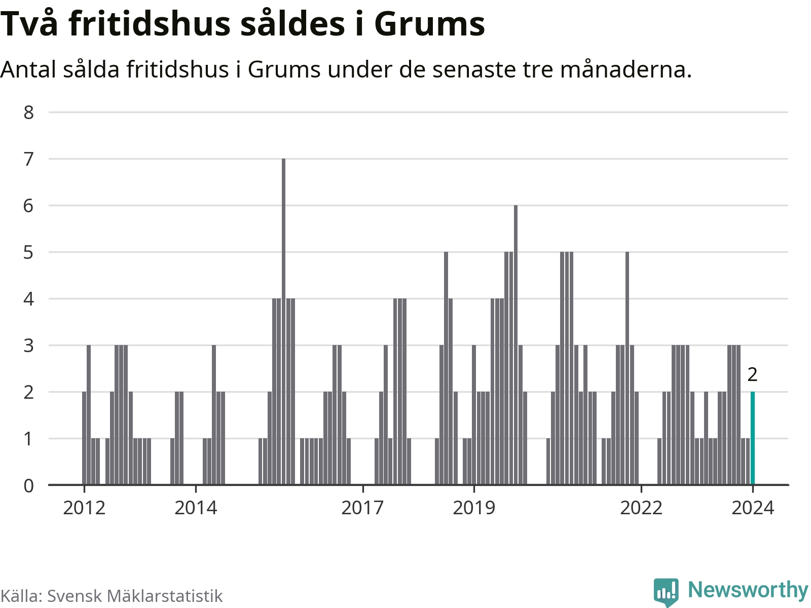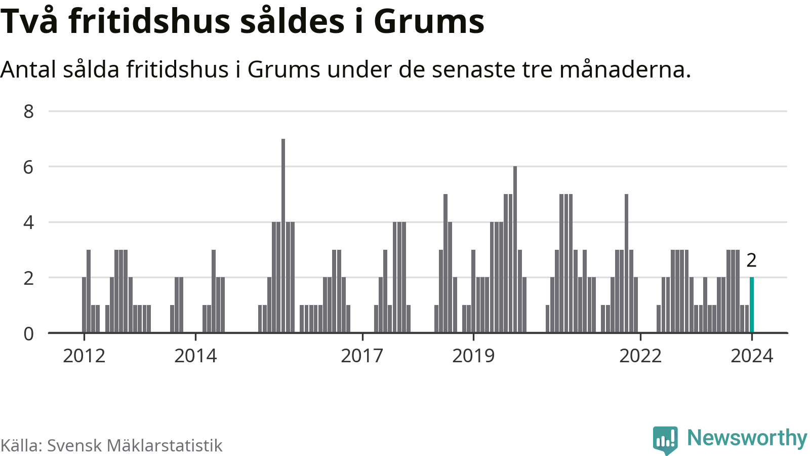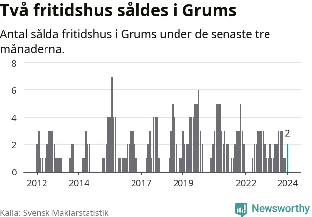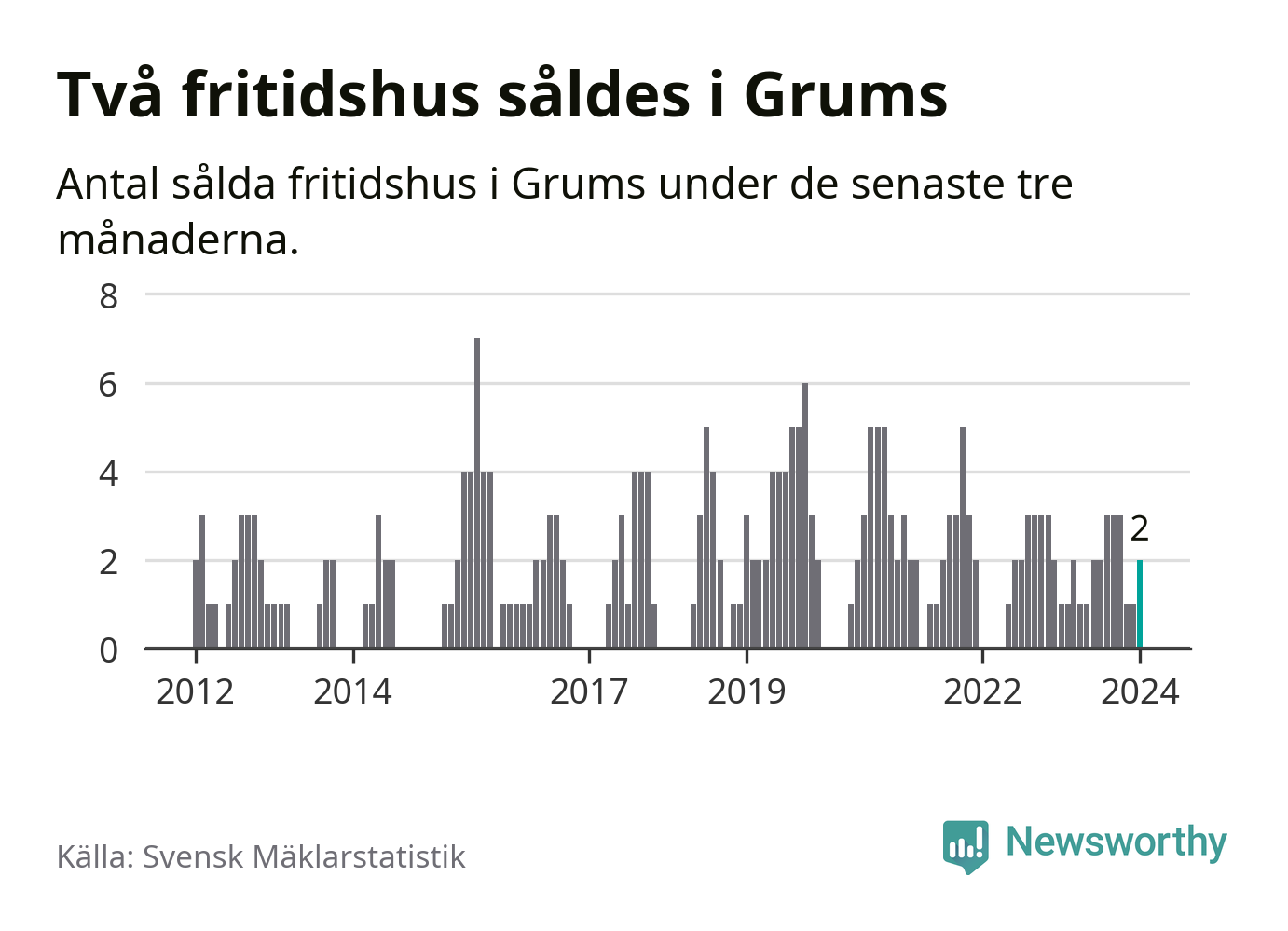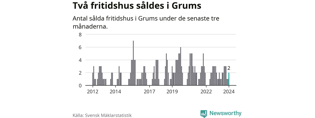 Mellan november och januari gjordes sammanlagt två affärer med fritidshus i Grums kommun. Det kan jämföras med ett vid motsvarande tid i fjol.