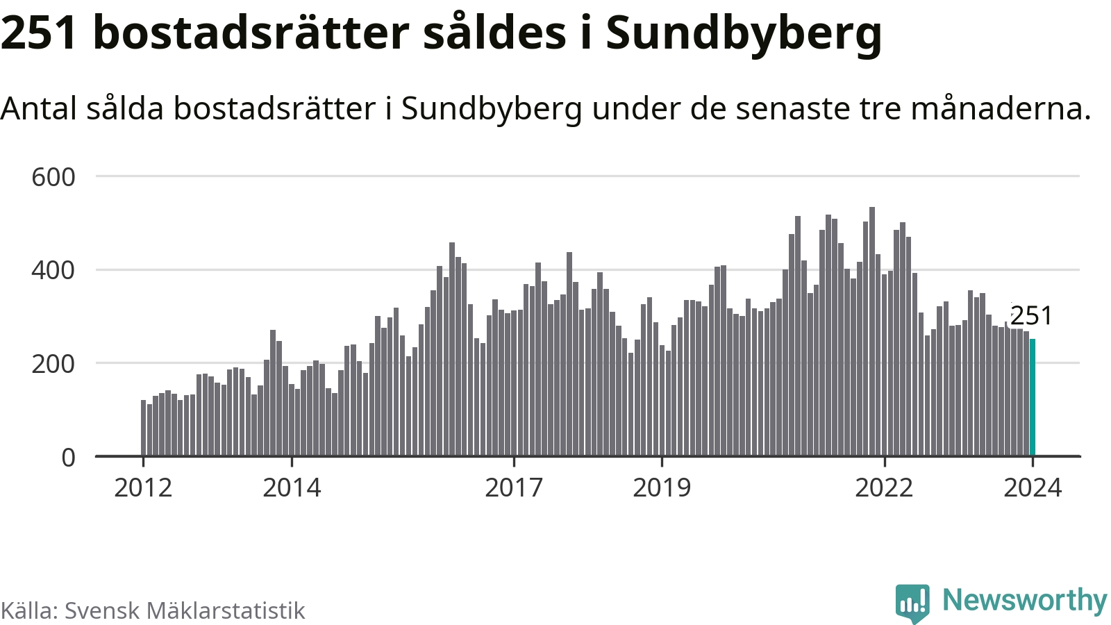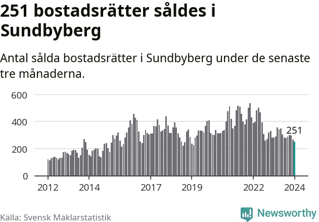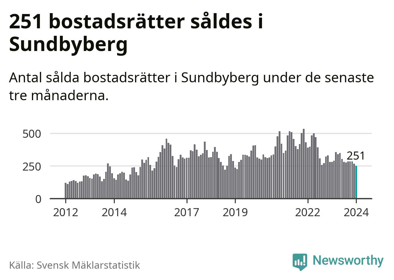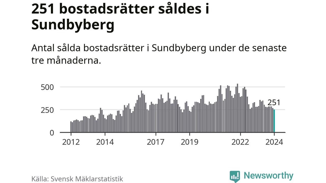Mellan november och januari såldes 251 bostadsrätter i Sundbybergs kommun. Det är färre än någon tremånadersperiod sedan 2019.