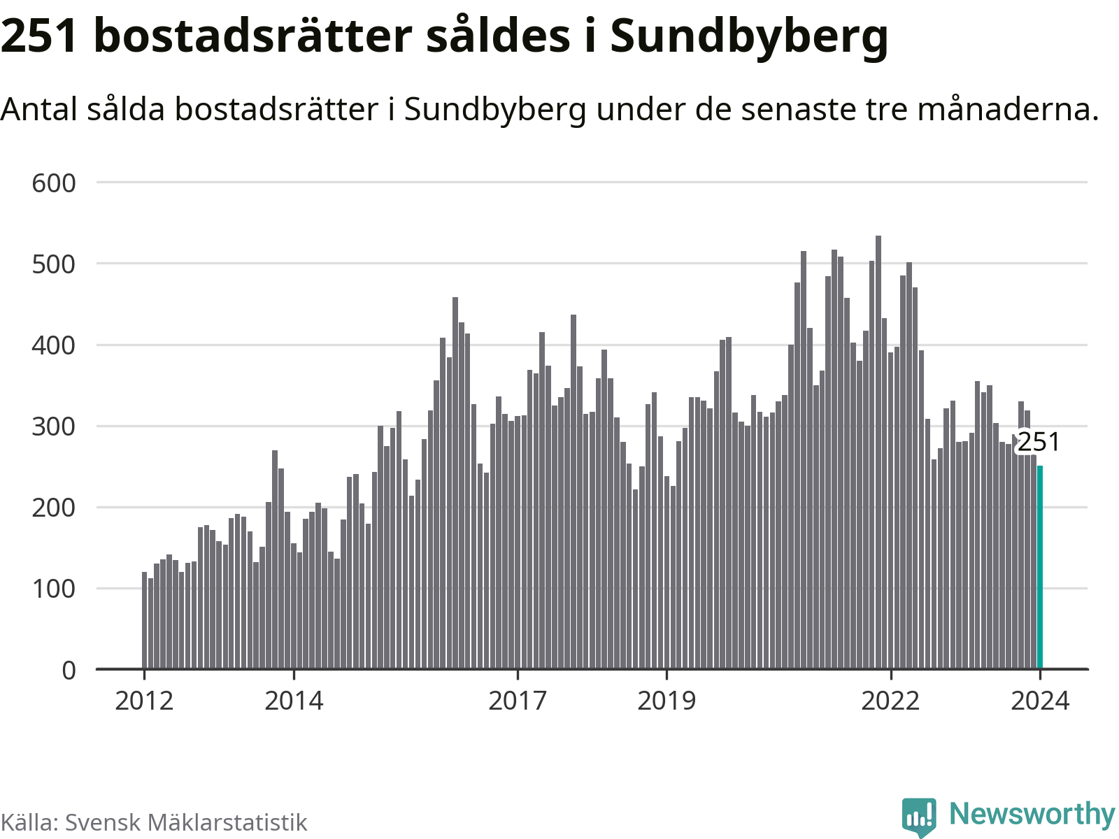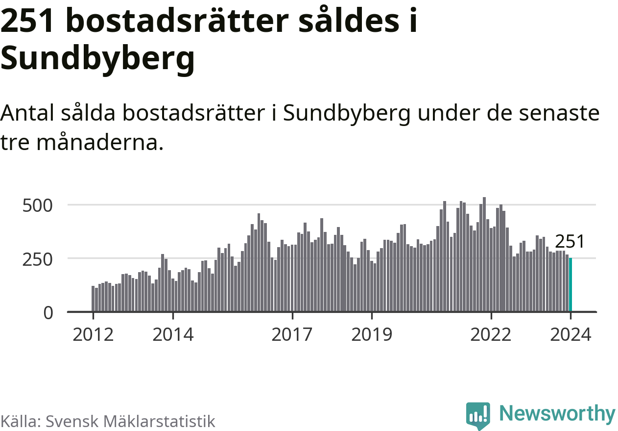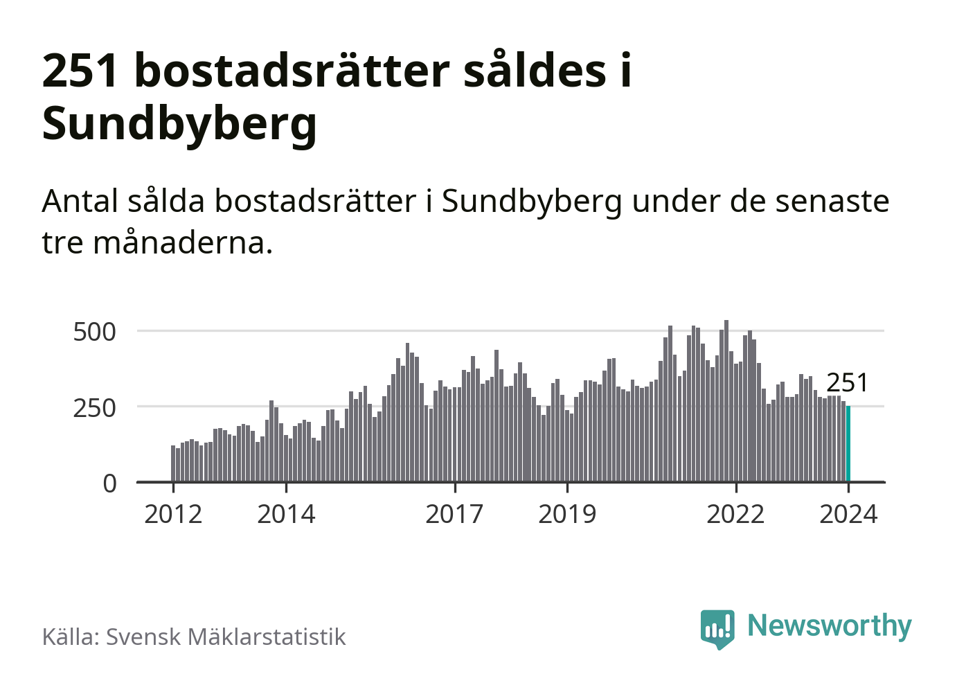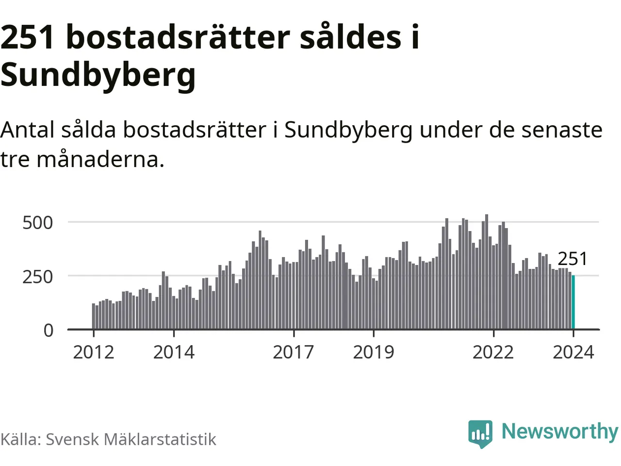 Mellan november och januari såldes 251 bostadsrätter i Sundbybergs kommun. Det är färre än någon tremånadersperiod sedan 2019.