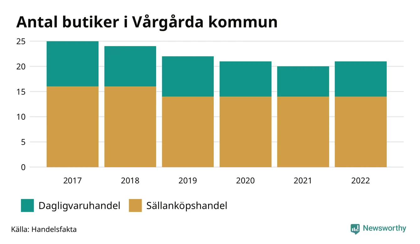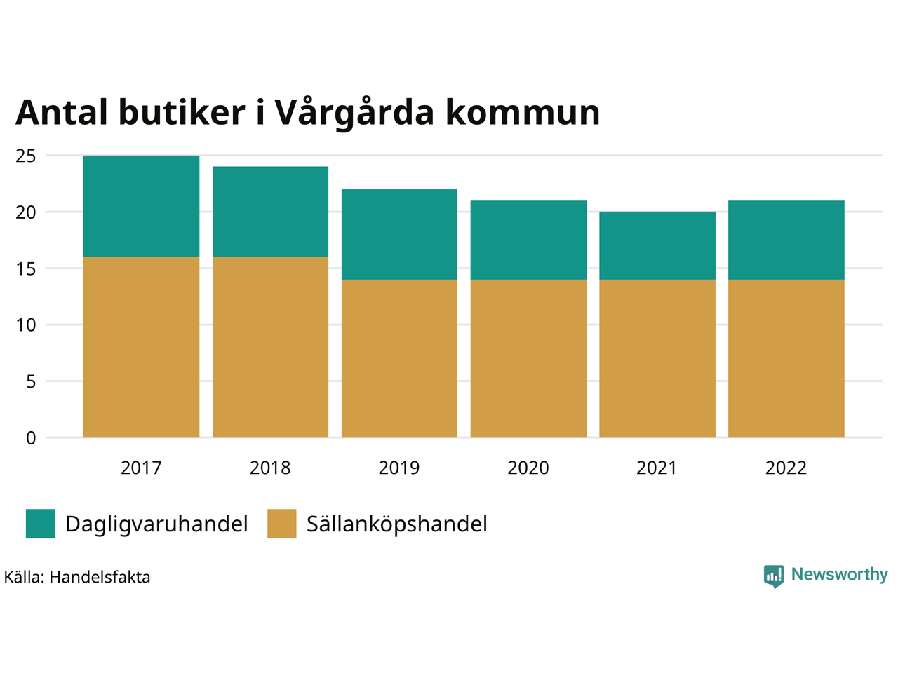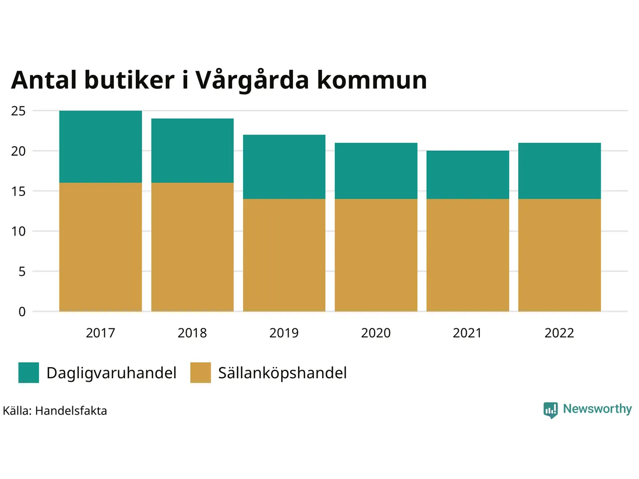 Butikerna blir allt färre i landet, sedan 2017 har antalet minskat med 7 procent. I Vårgårda kommun fanns 21 butiker 2022 – jämfört med 25 stycken fem år tidigare.