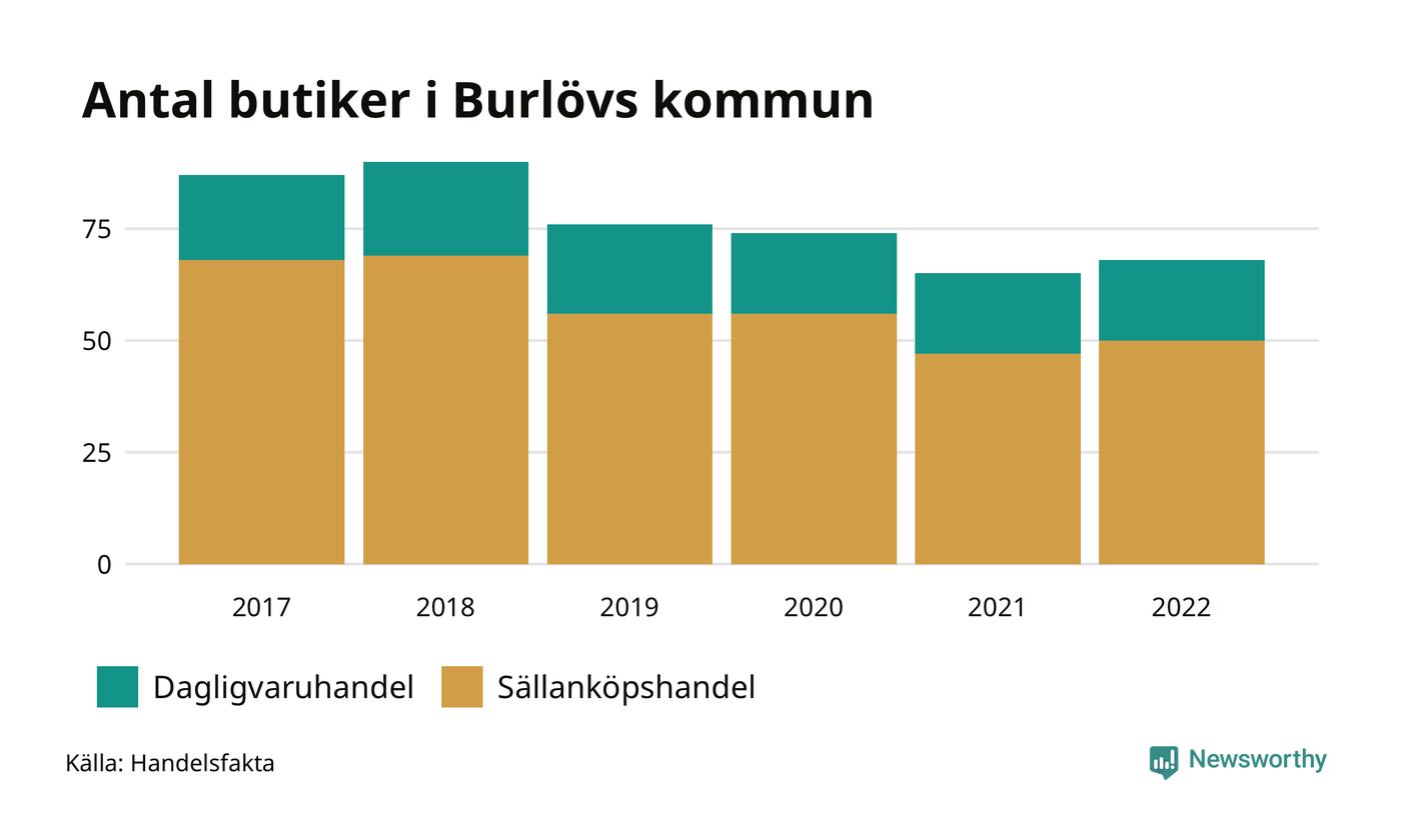 I Burlövs kommun har utvecklingen gått ännu fortare. Här har var femte butik försvunnit. Den 30 november 2022 fanns 68 butiker i kommunen, vilket är tre fler än året innan men 19 färre än 2017.
