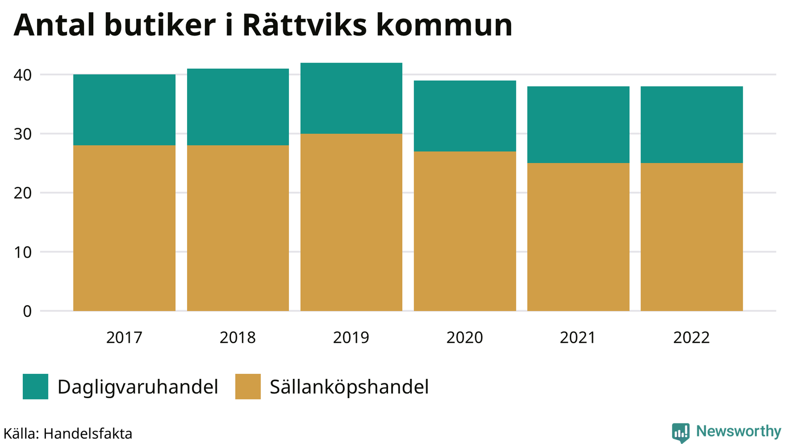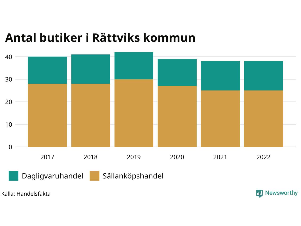 | Butikstyp | Antal butiker 2022 | Antal butiker 2017 | Förändring | |