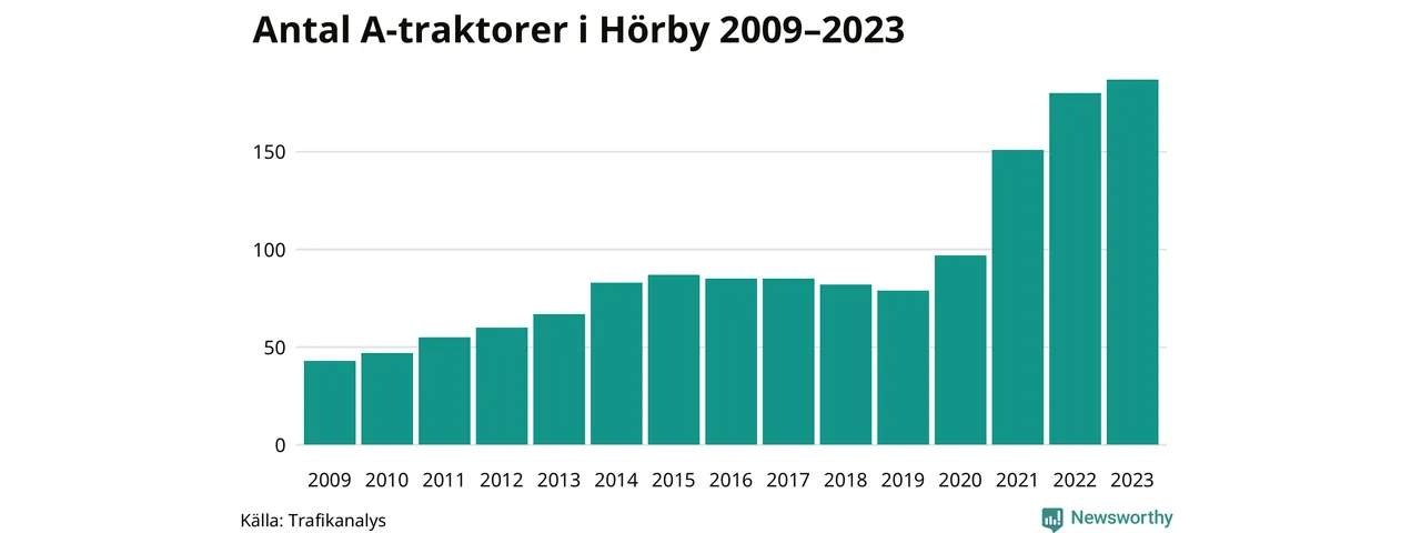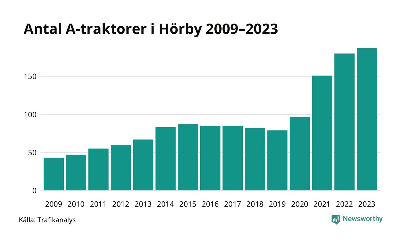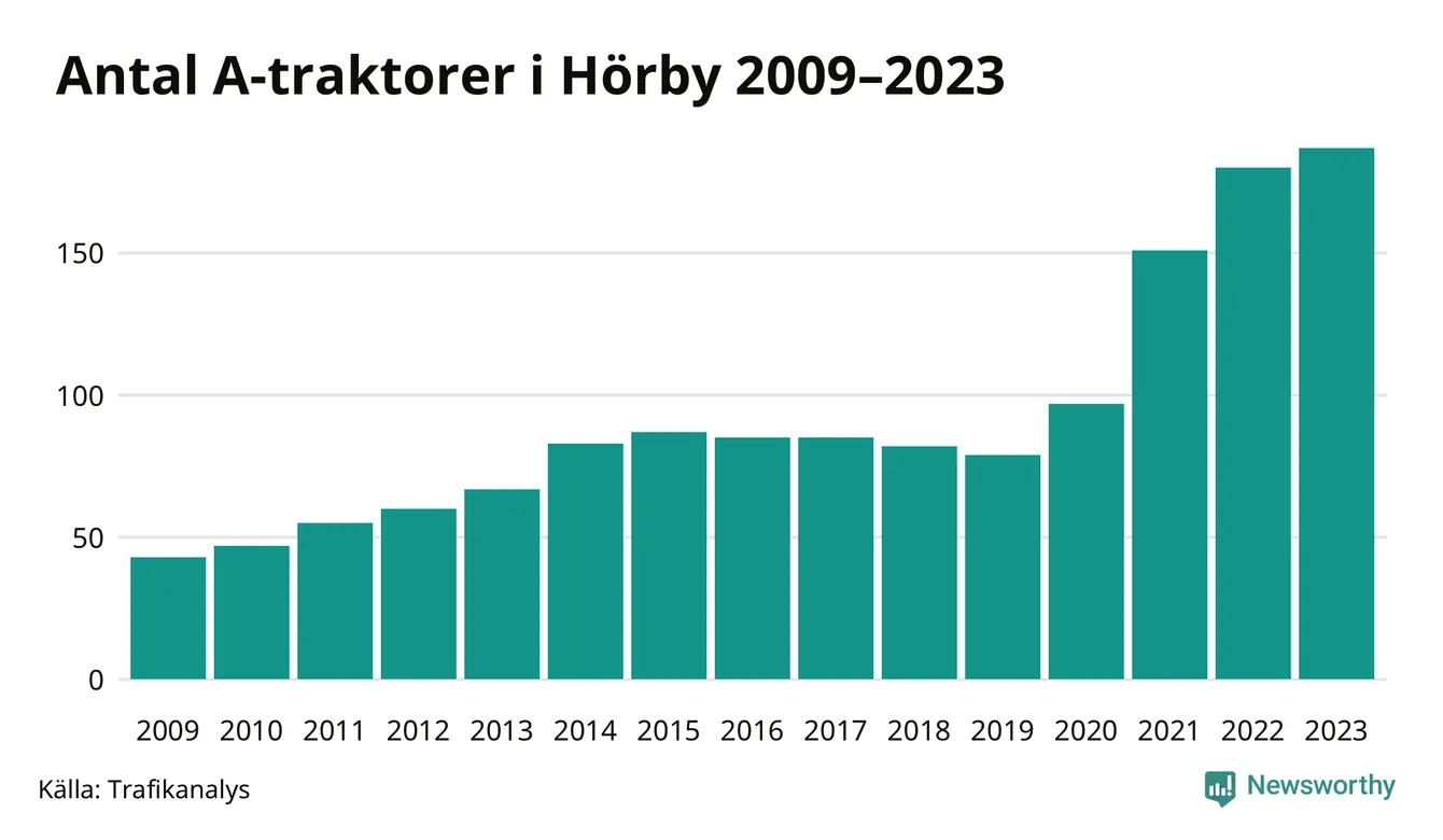 Under det senaste decenniet har antalet A-traktorer mer än fyrdubblats i Sverige – och under 2023 fortsatte utvecklingen. Även i Hörby blev de fler.