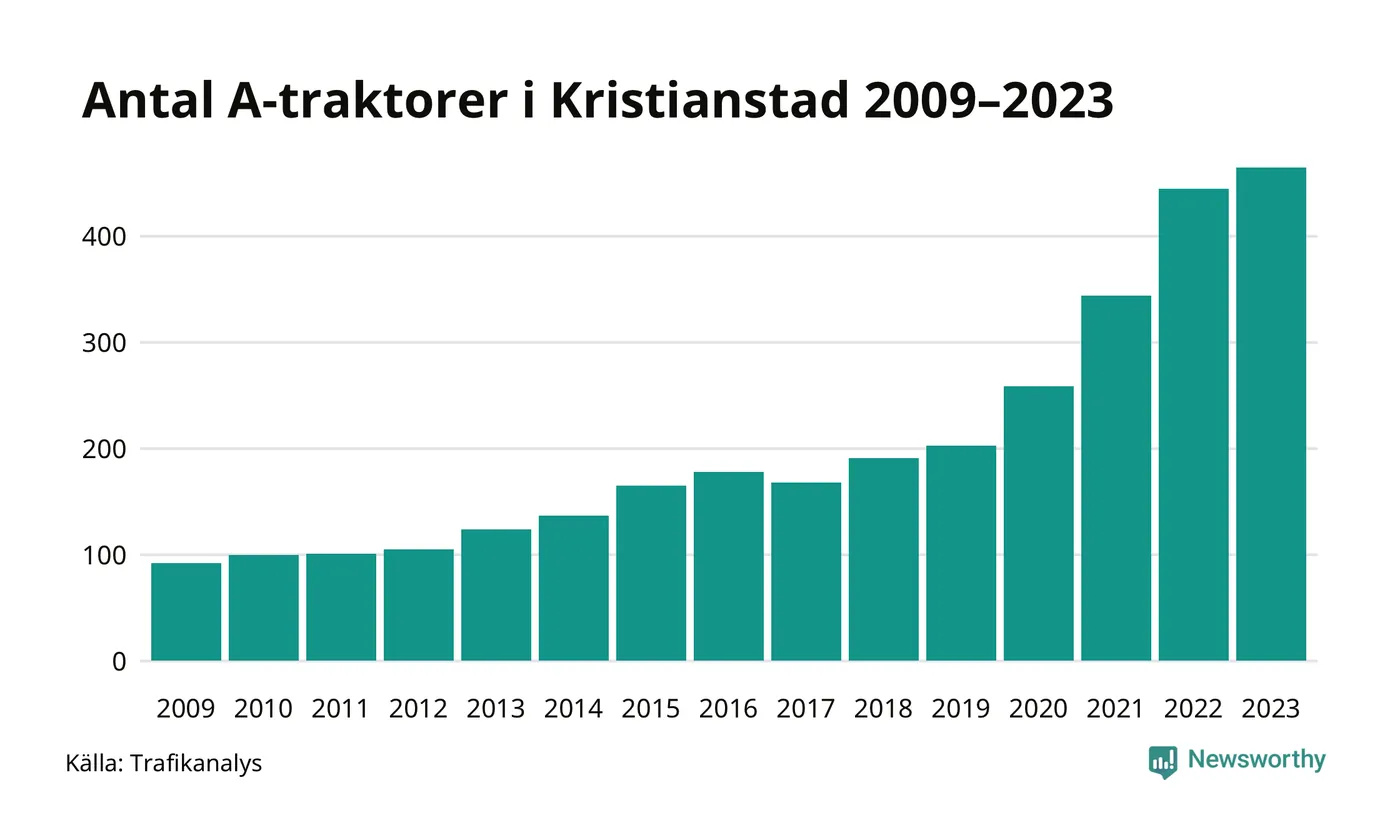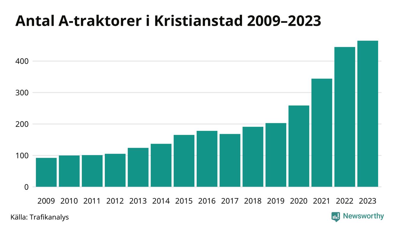 Under det senaste decenniet har antalet A-traktorer mer än fyrdubblats i Sverige – och under 2023 fortsatte utvecklingen. Precis som i Kristianstads kommun.