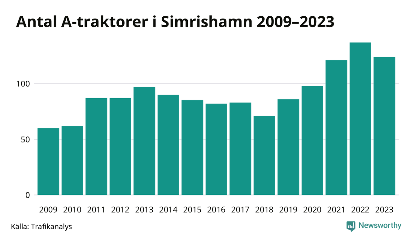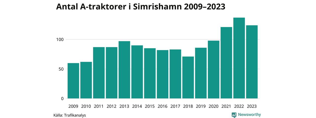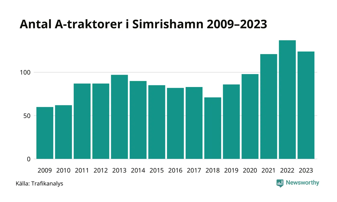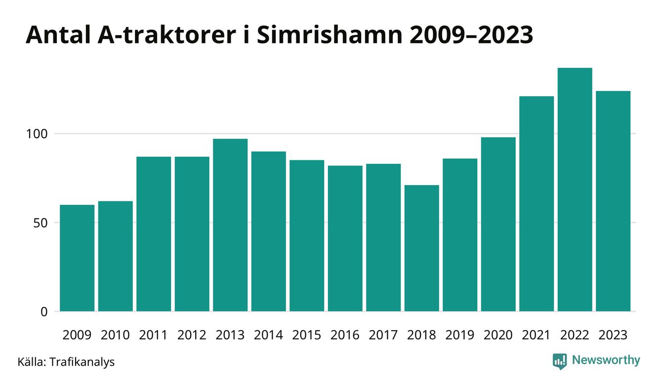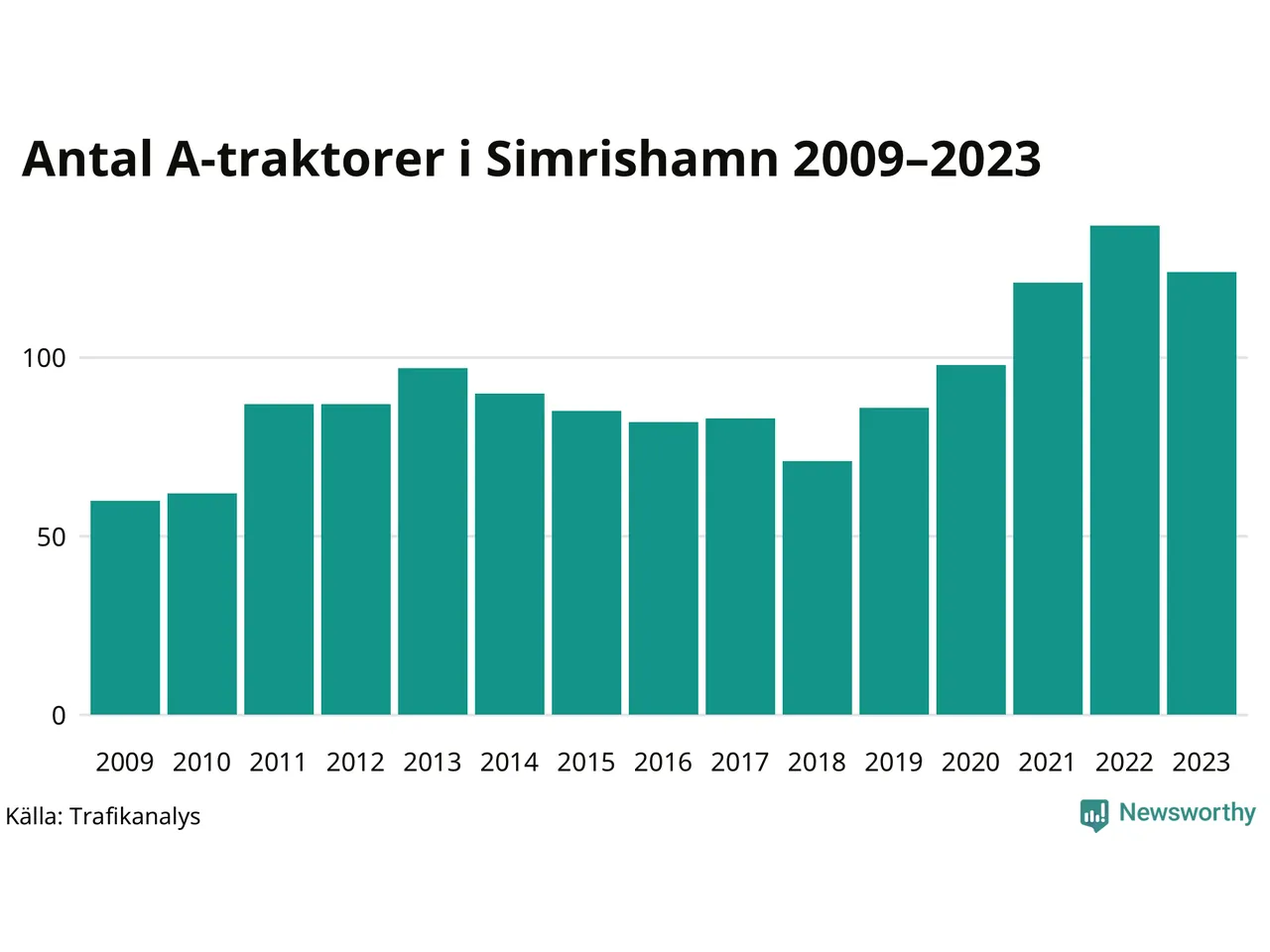 Under det senaste decenniet har antalet A-traktorer mer än fyrdubblats i Sverige, och under 2023 fortsatte utvecklingen. Men i Simrishamns kommun blev A-traktorerna färre. Det är första gången sedan 2019 som antalet inte ökar.