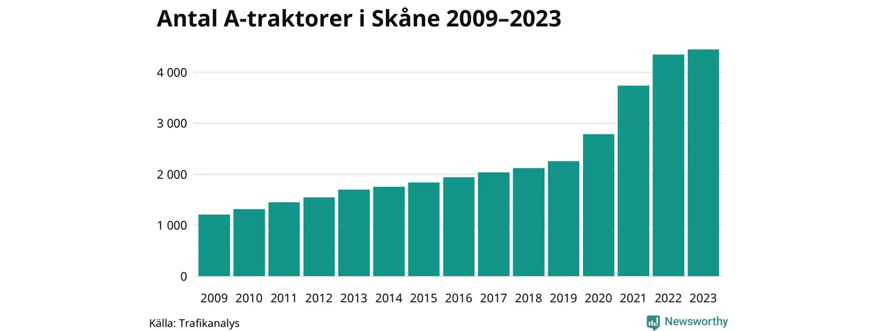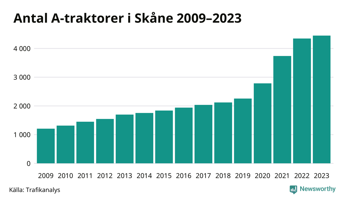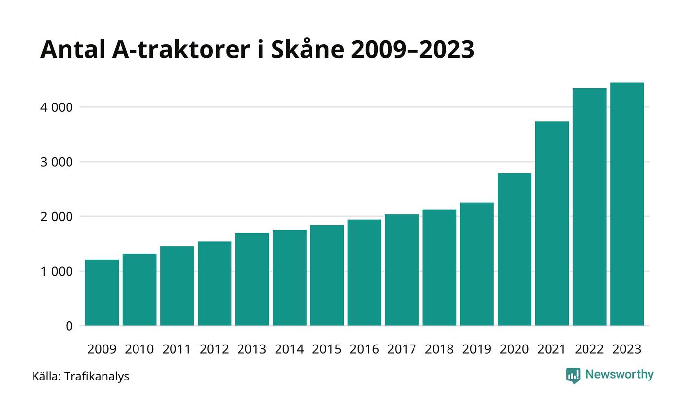 Under det senaste decenniet har antalet A-traktorer mer än fyrdubblats i Sverige – och under 2023 fortsatte utvecklingen. Precis som i Skåne län.