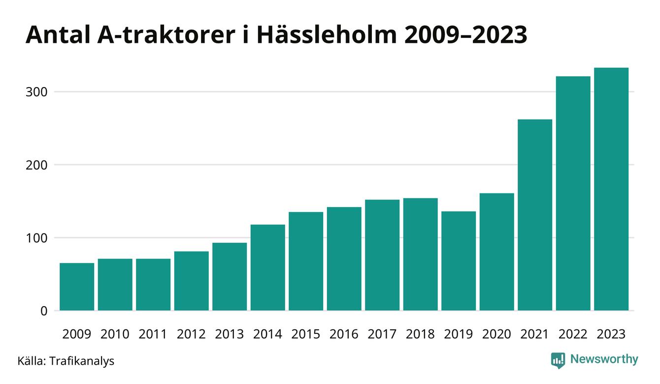 Under det senaste decenniet har antalet A-traktorer mer än fyrdubblats i Sverige – och under 2023 fortsatte utvecklingen. Även i Hässleholm blev de fler.