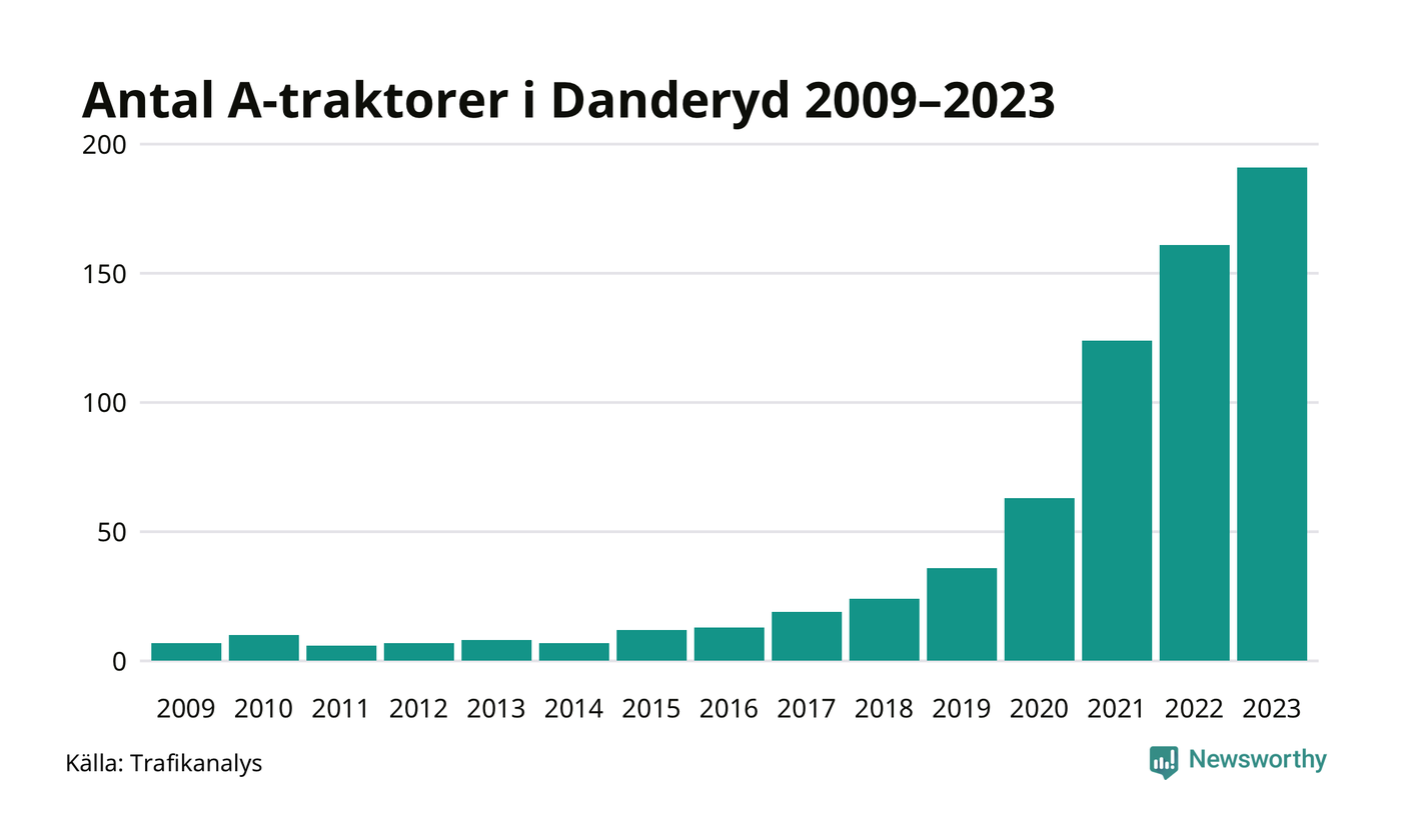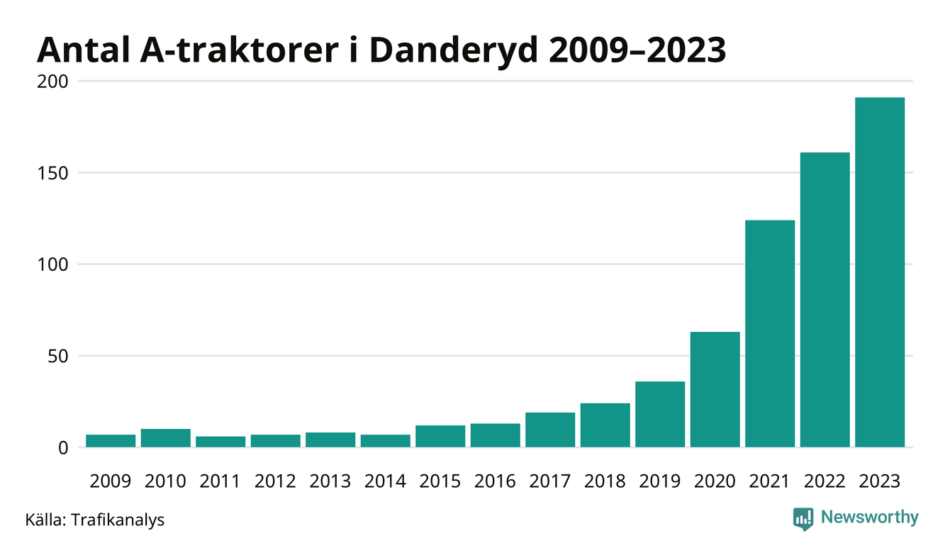 Under det senaste decenniet har antalet A-traktorer mer än fyrdubblats i Sverige – och under 2023 fortsatte utvecklingen. Precis som i Danderyds kommun.