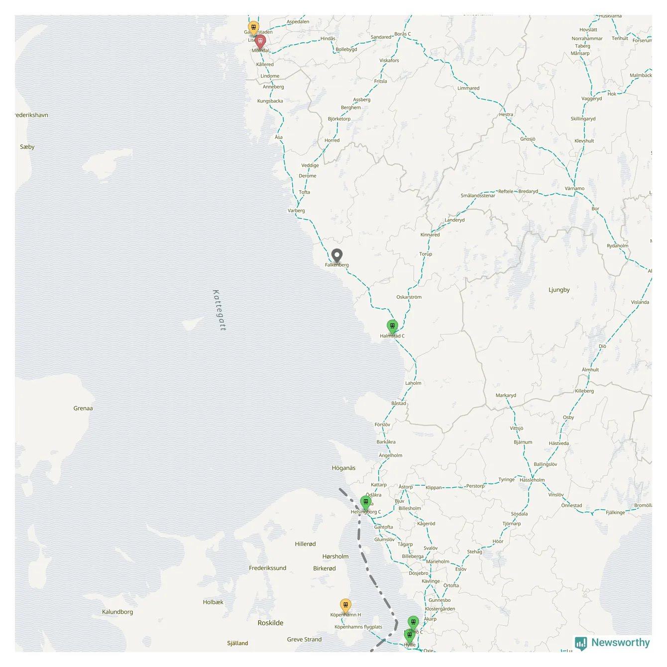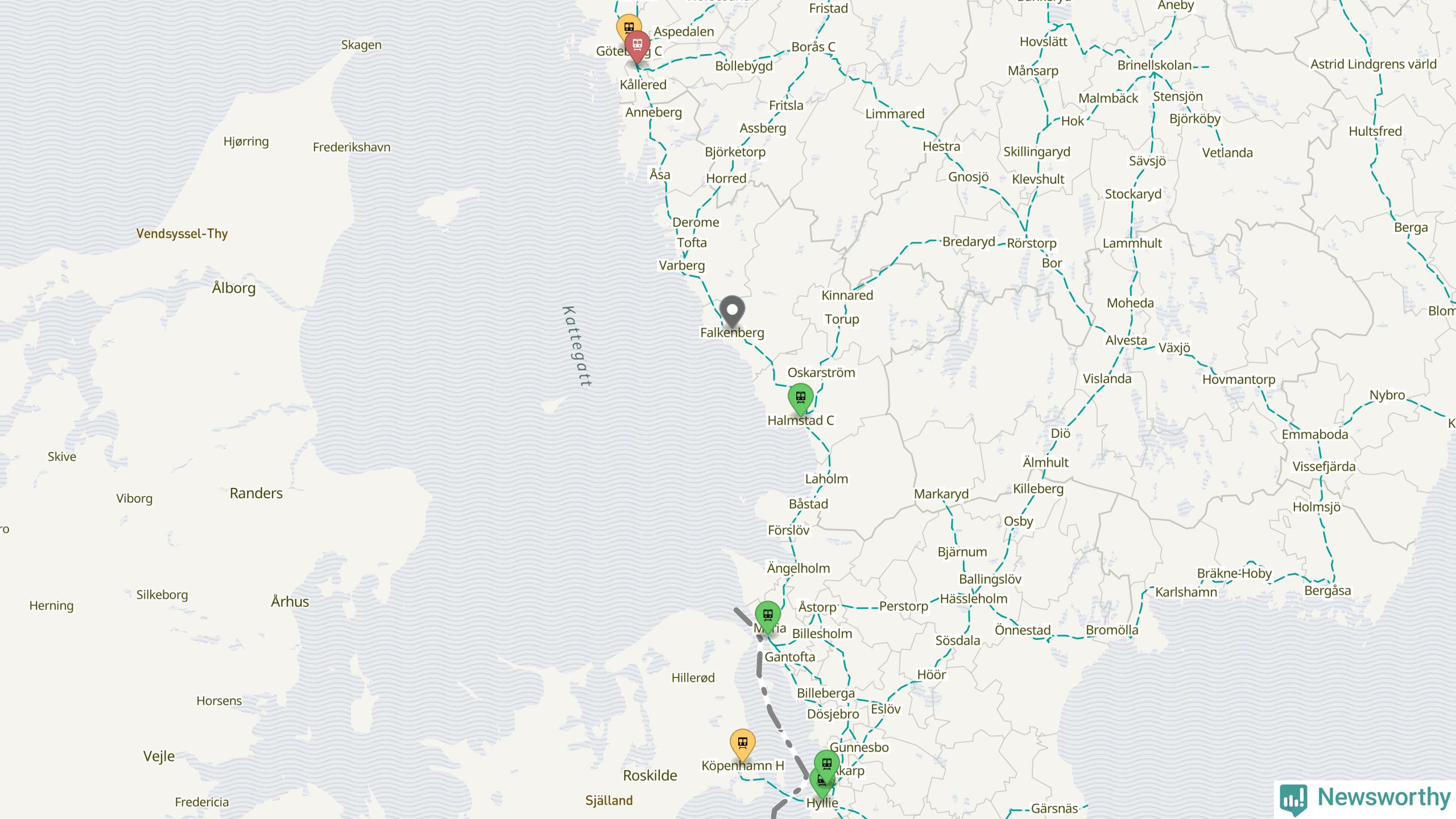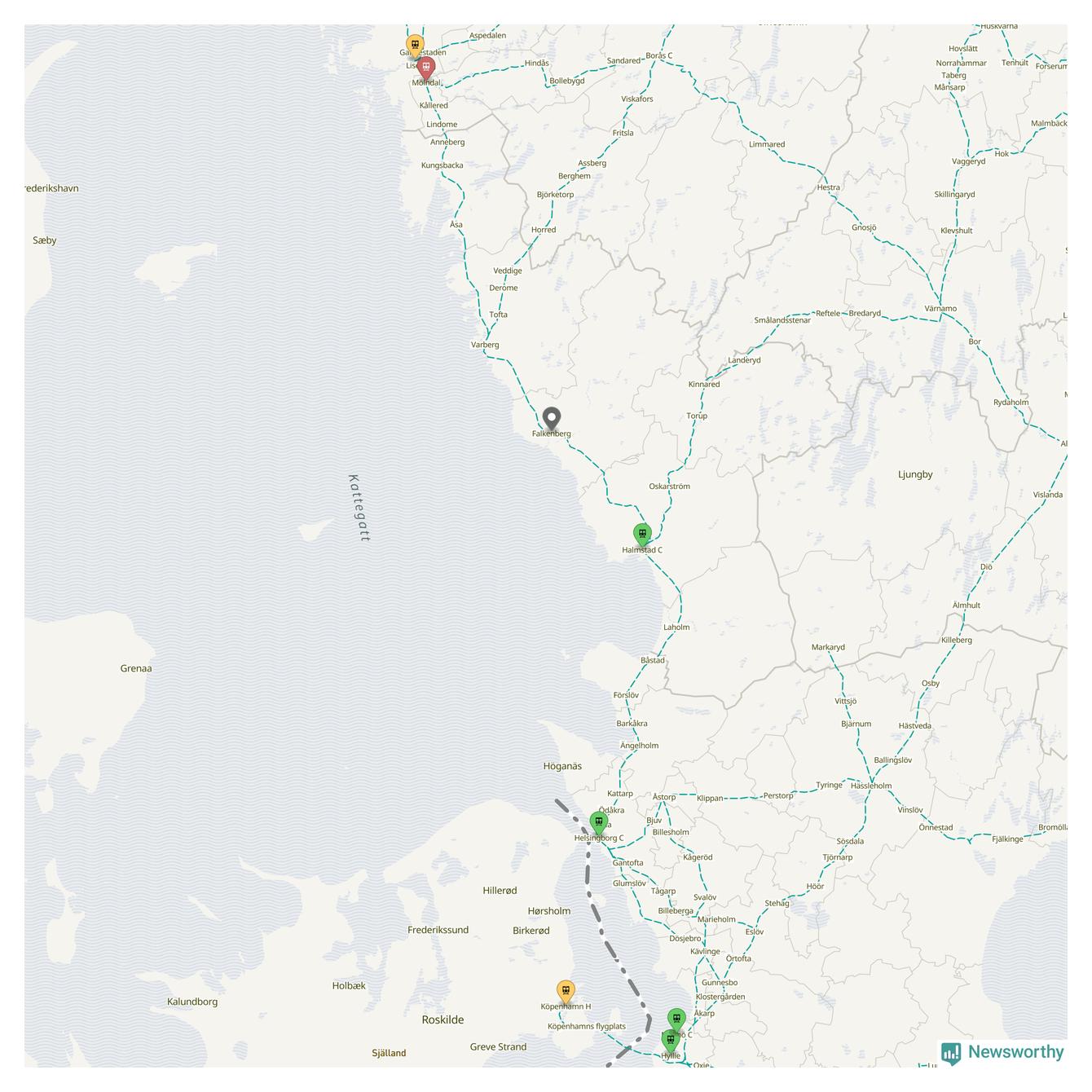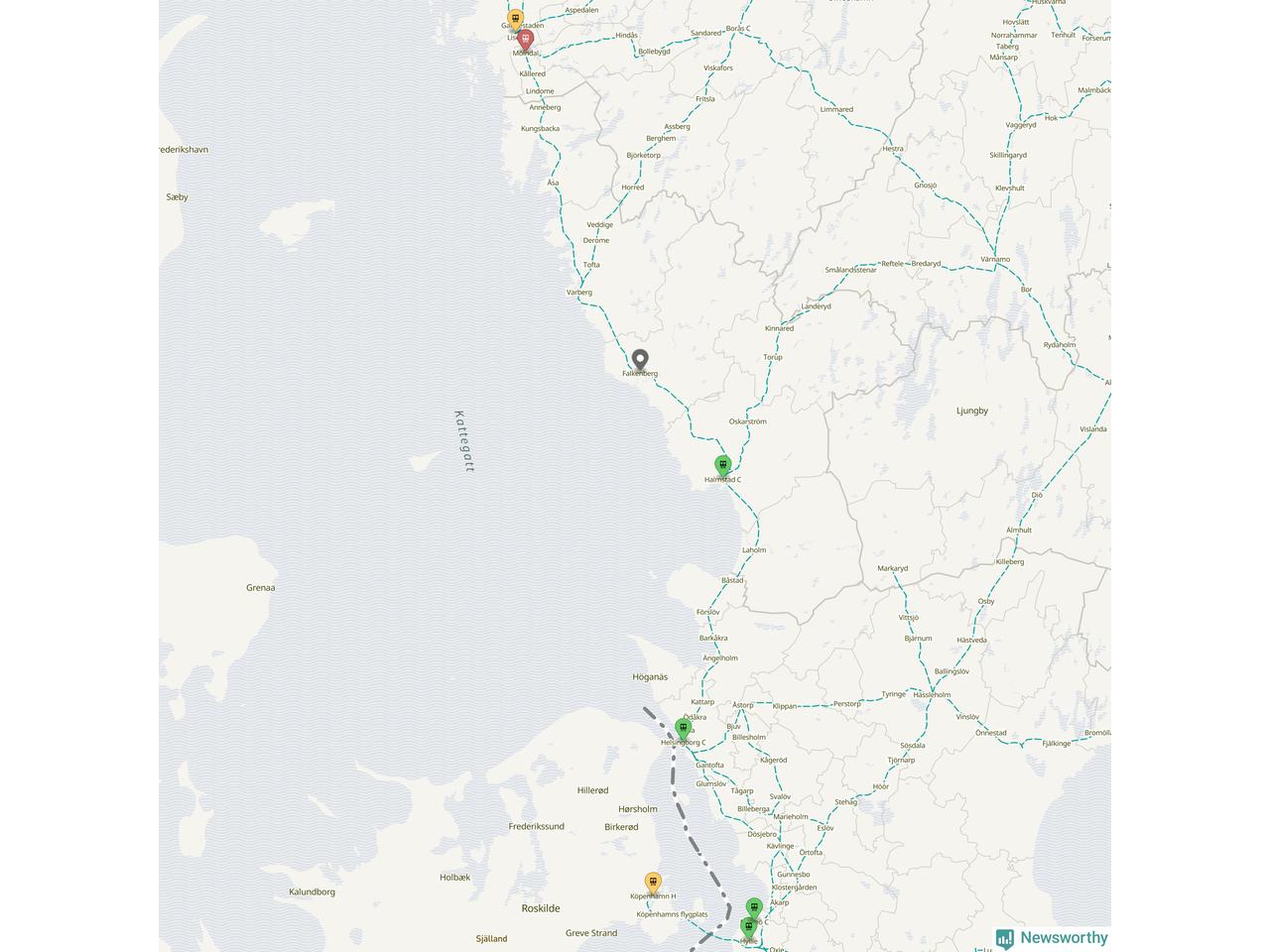 Kartdata från Mapbox, Newsworthy, OpenStreetMap och Trafikverket. Uppgifter om sträckor med passagerartrafik från jarnvag.net.