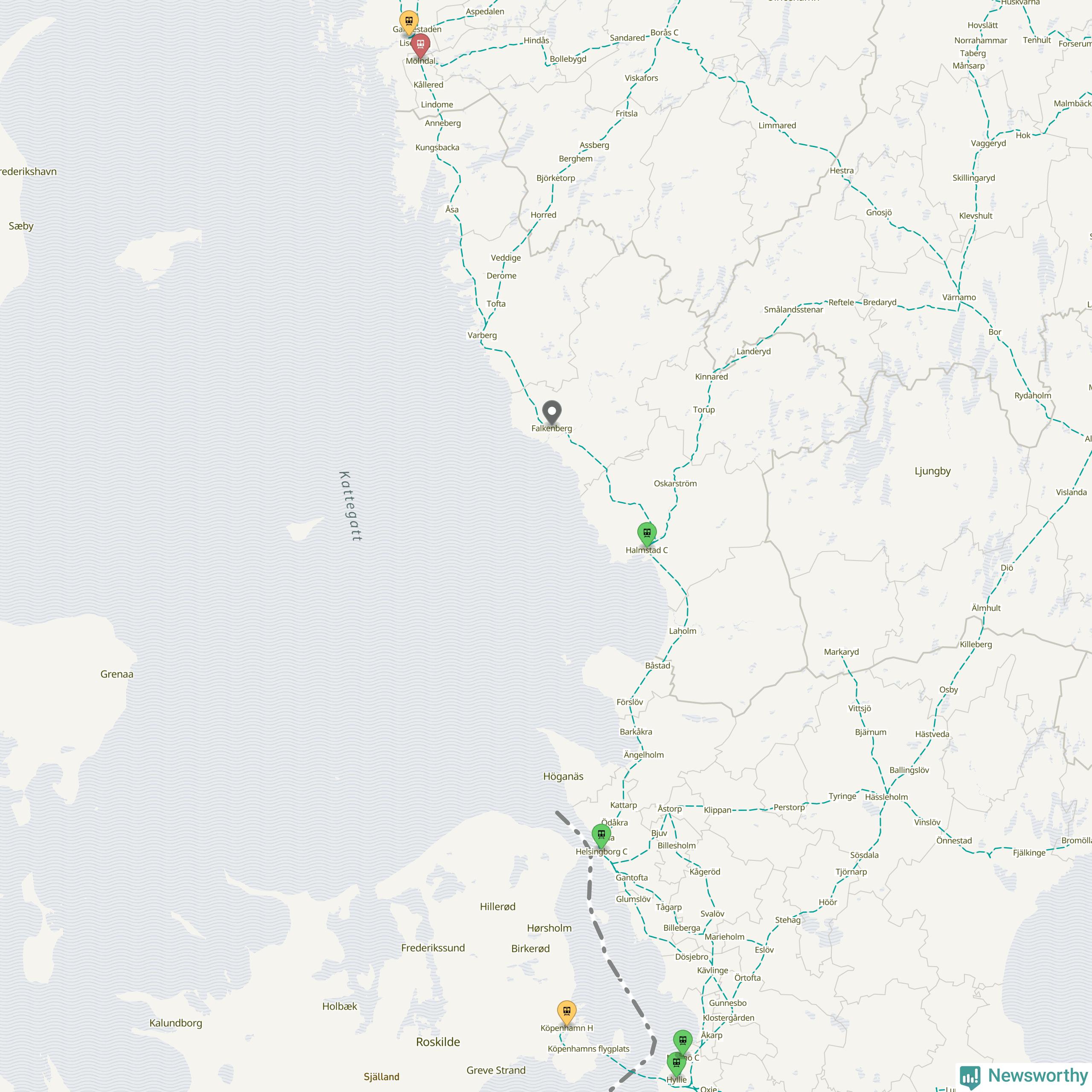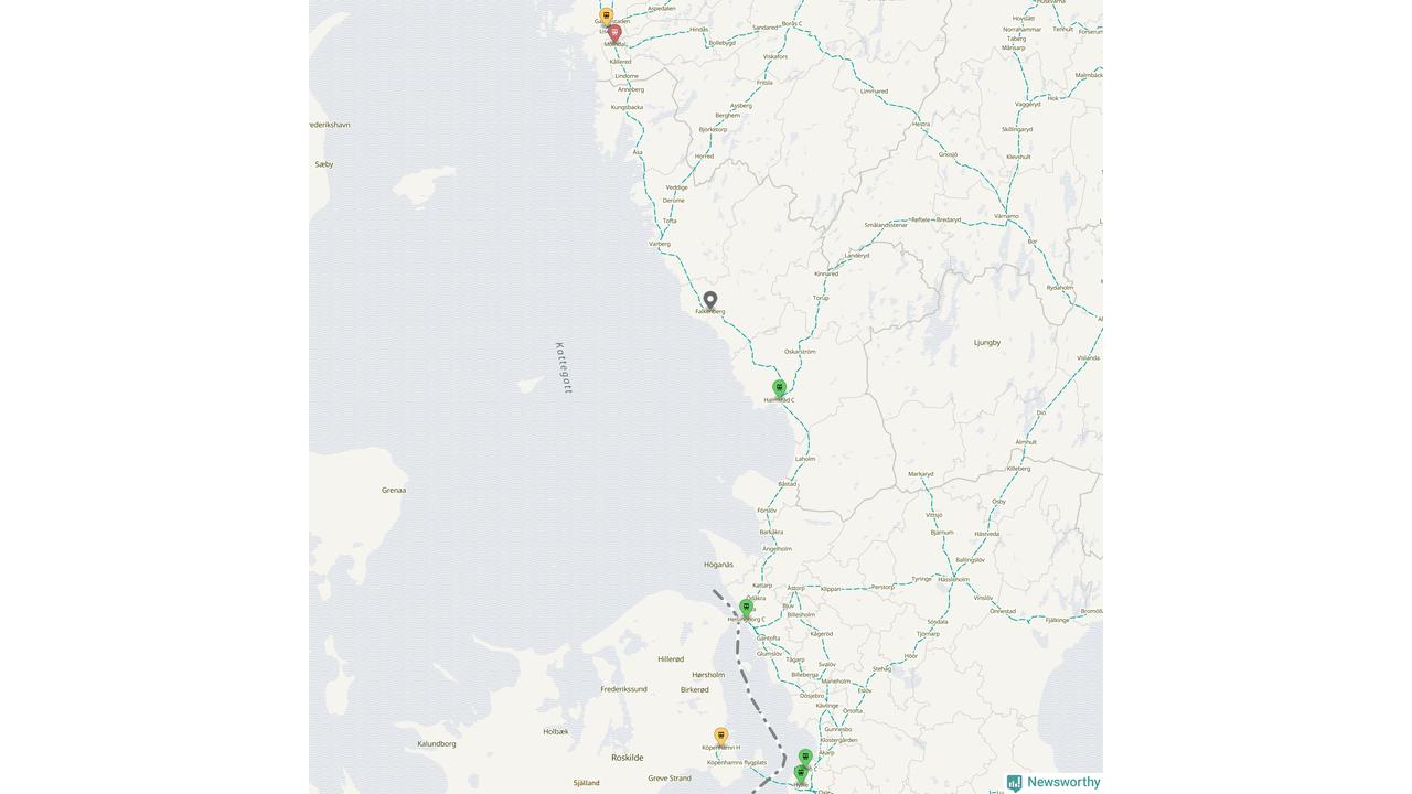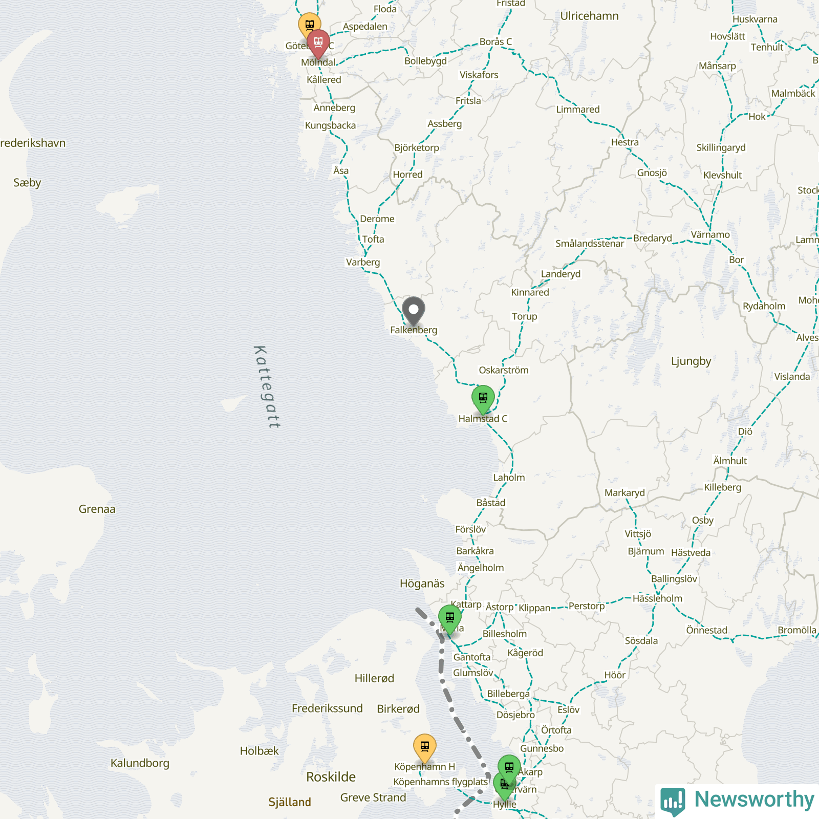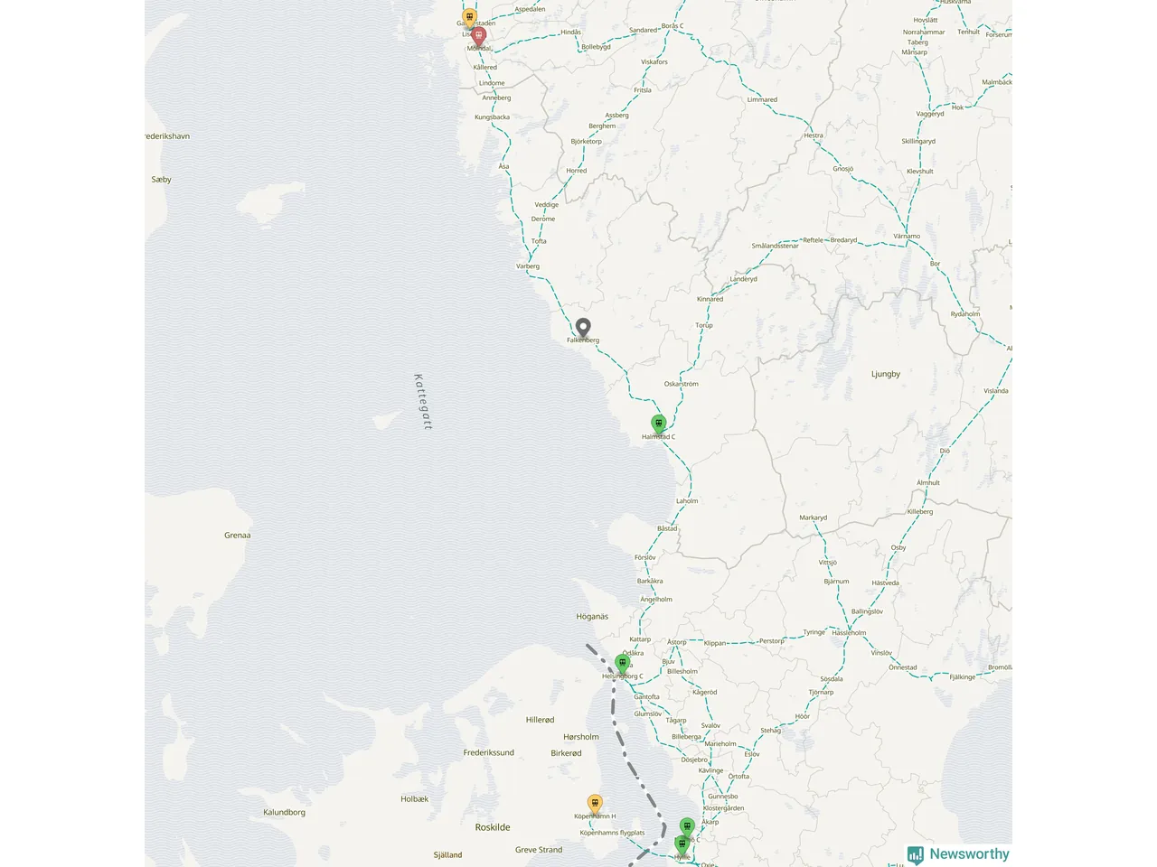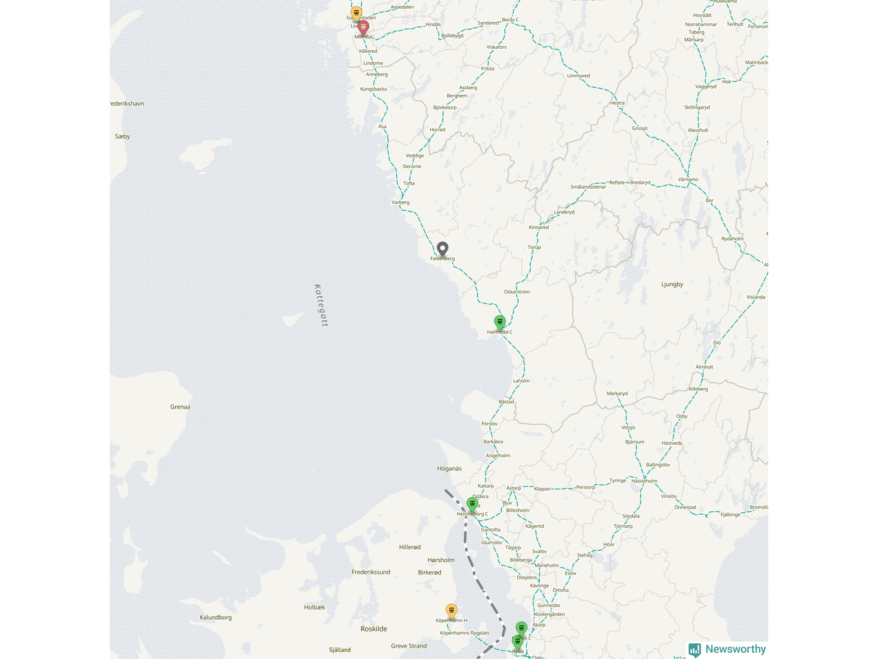 Kartdata från Mapbox, Newsworthy, OpenStreetMap och Trafikverket. Uppgifter om sträckor med passagerartrafik från jarnvag.net.