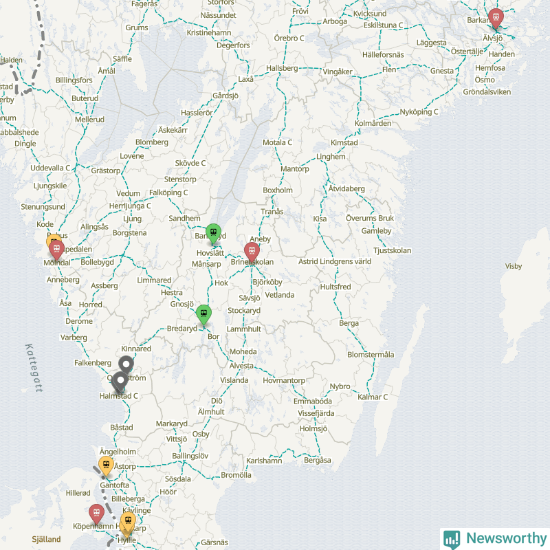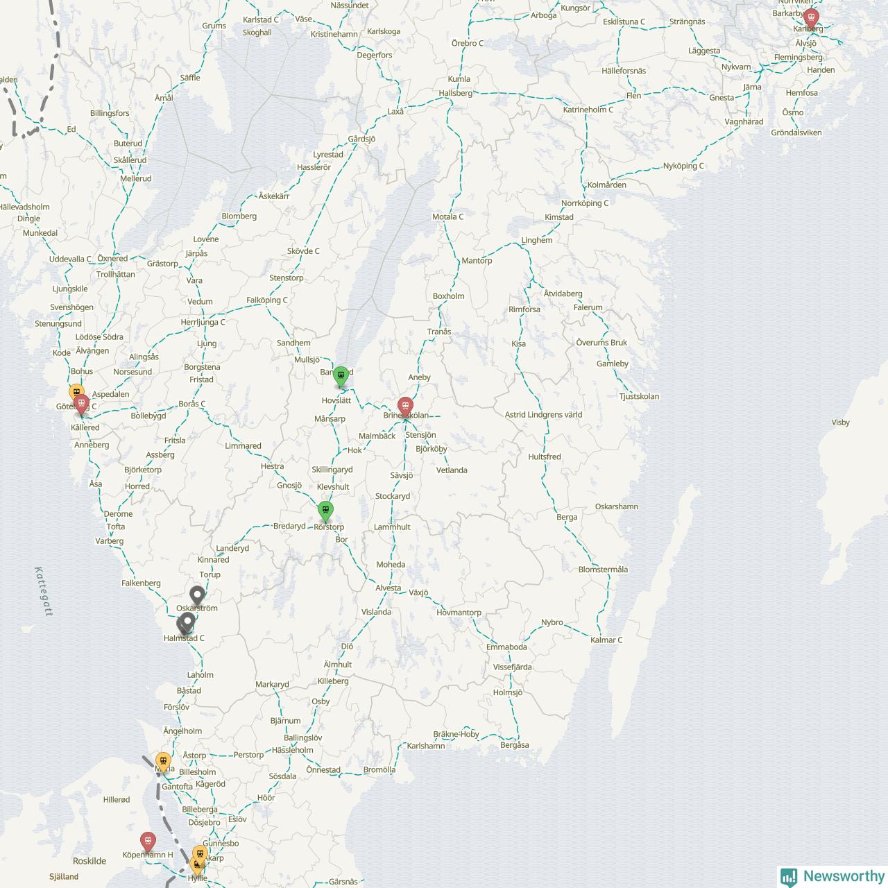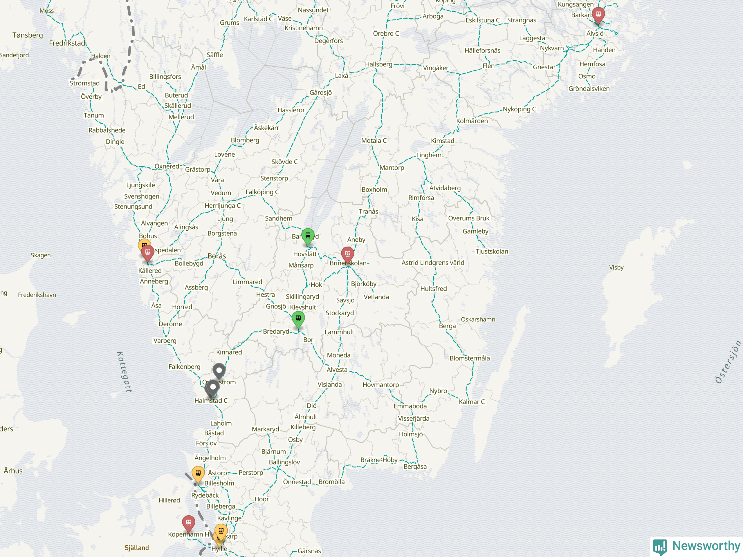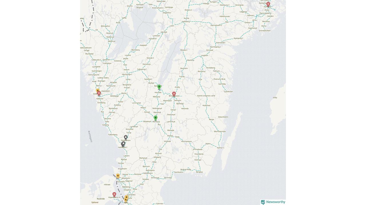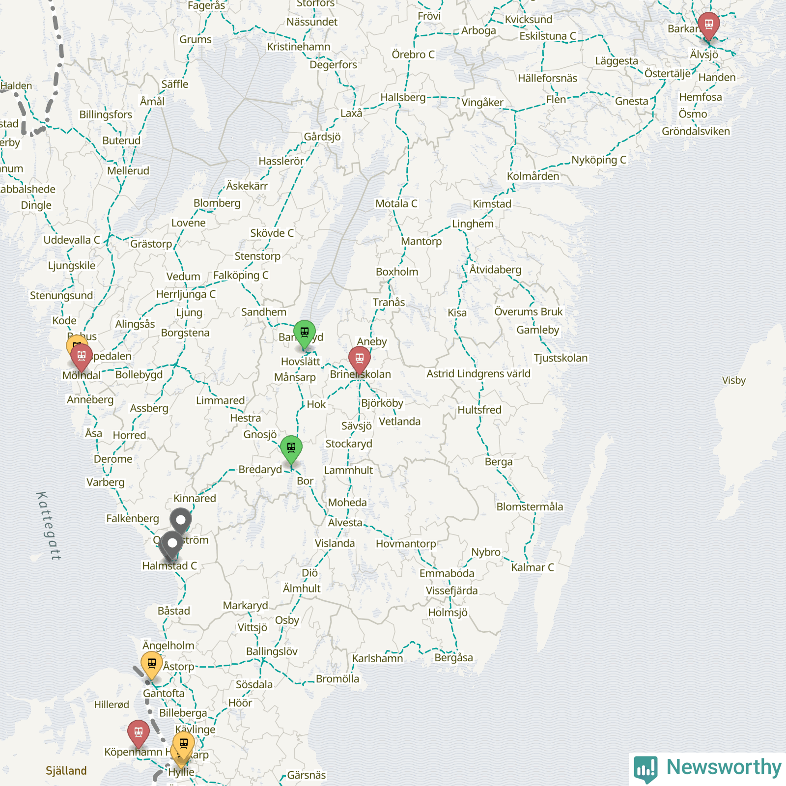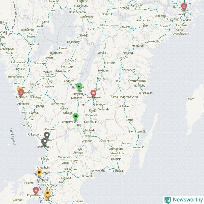 Kartdata från Mapbox, Newsworthy, OpenStreetMap och Trafikverket. Uppgifter om sträckor med passagerartrafik från jarnvag.net.