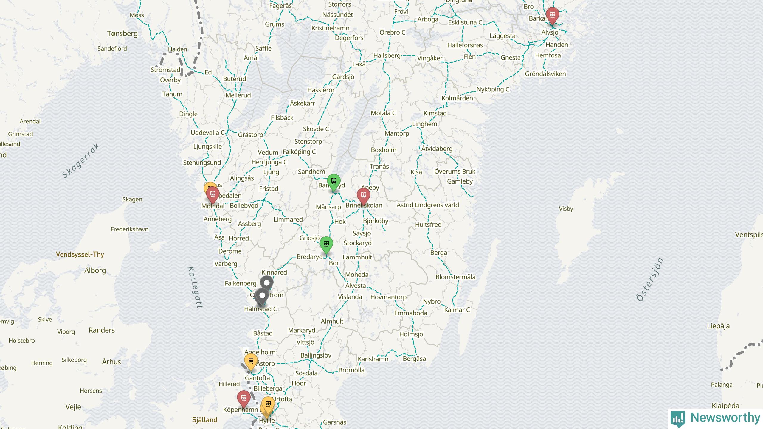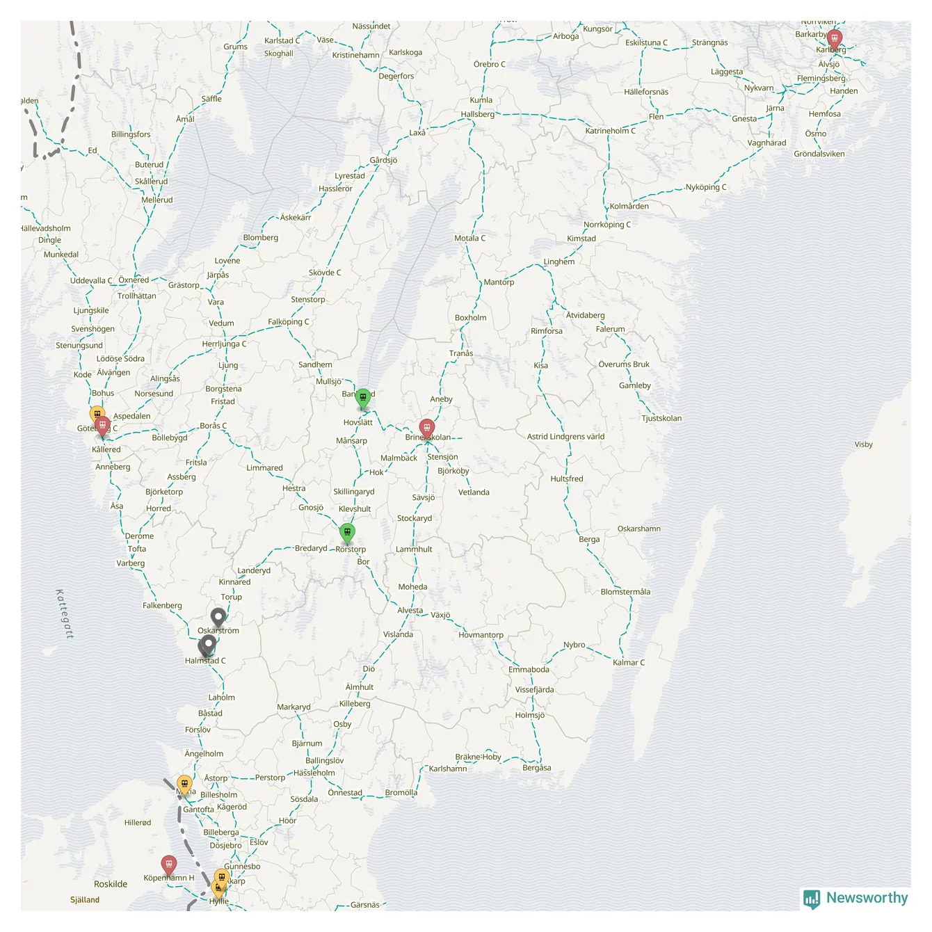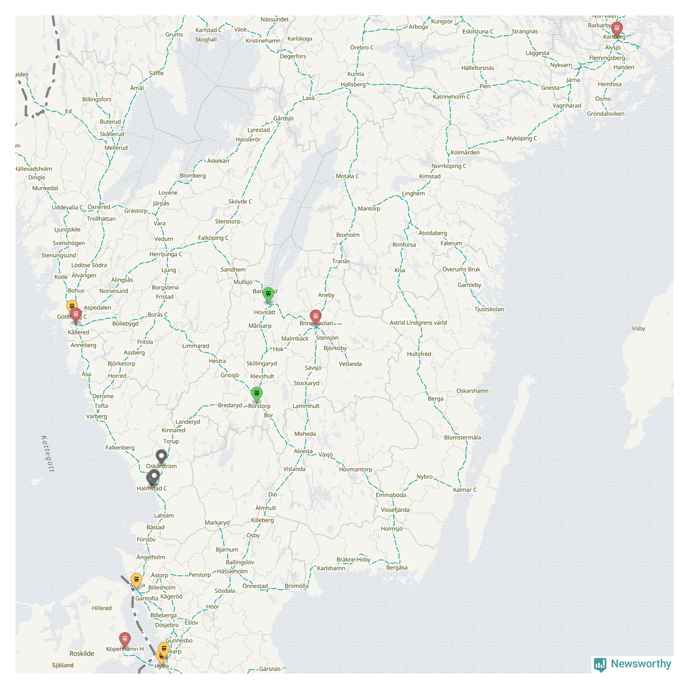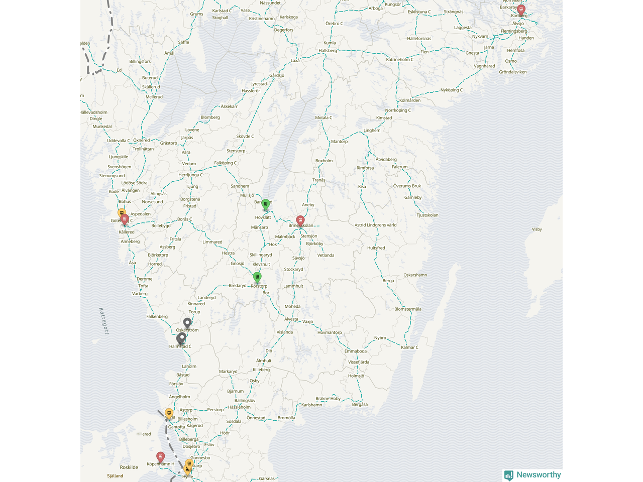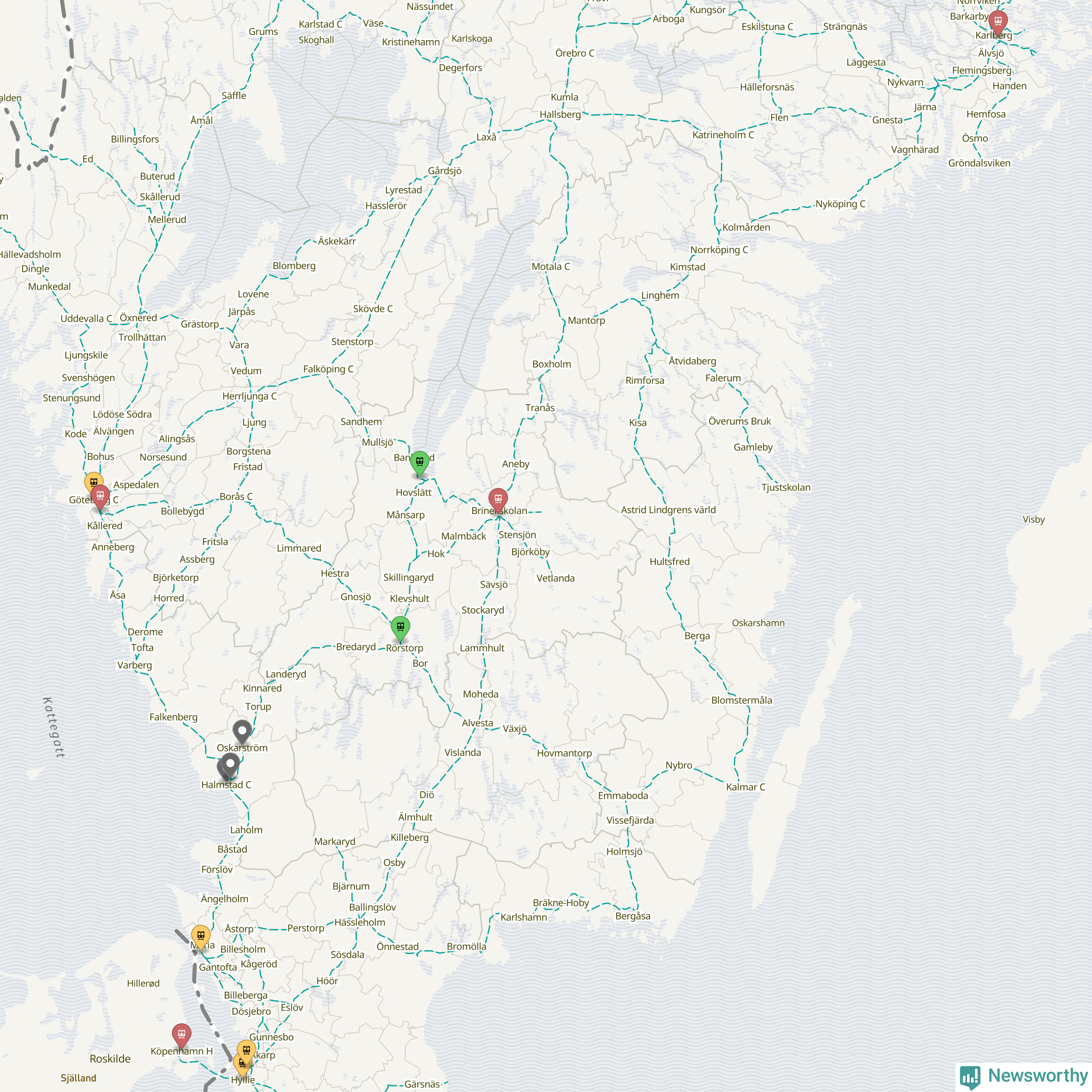Kartdata från Mapbox, Newsworthy, OpenStreetMap och Trafikverket. Uppgifter om sträckor med passagerartrafik från jarnvag.net.