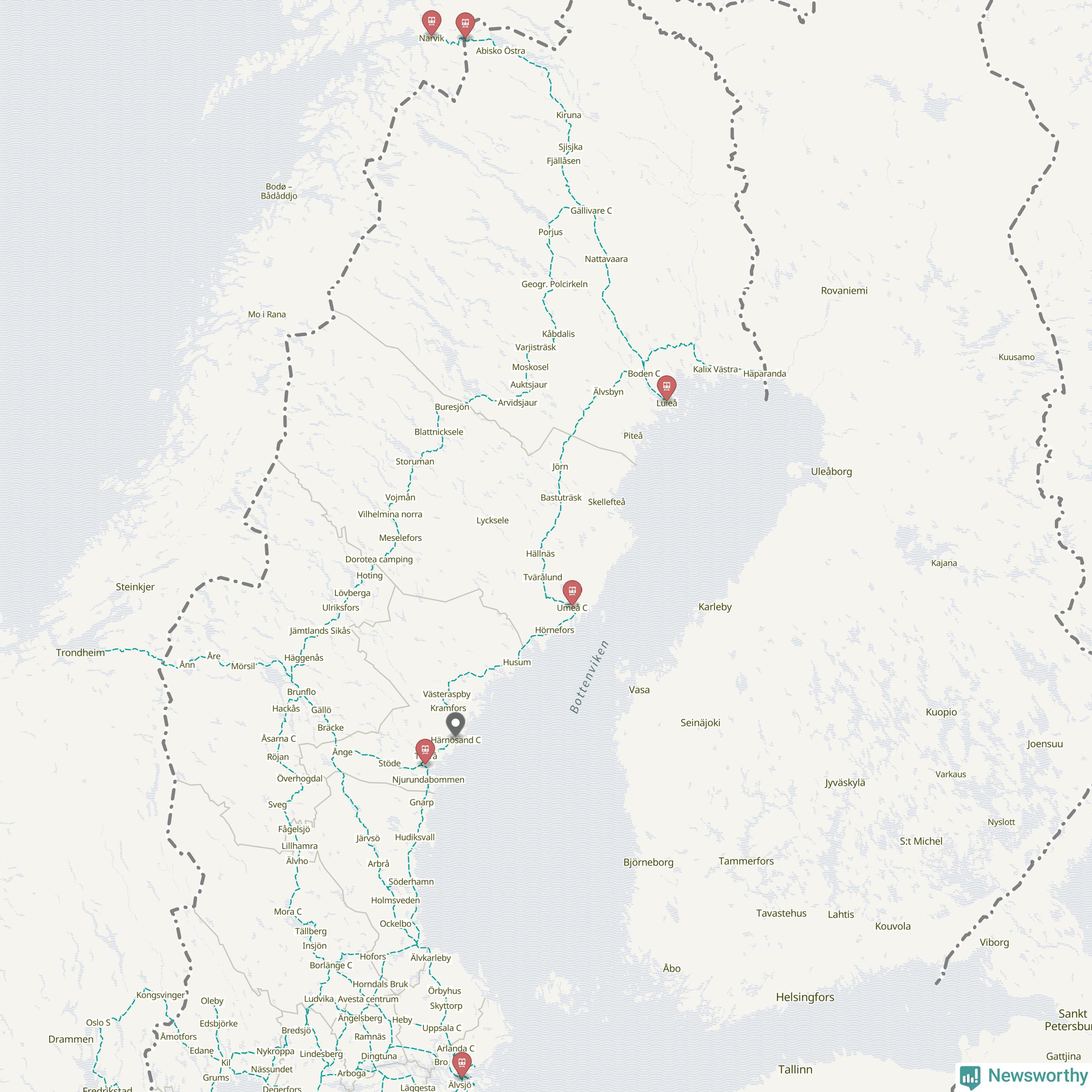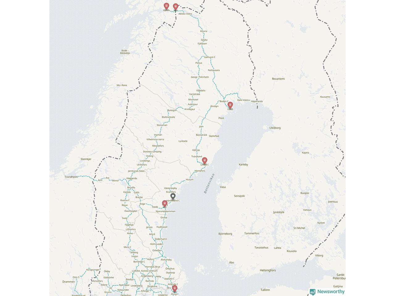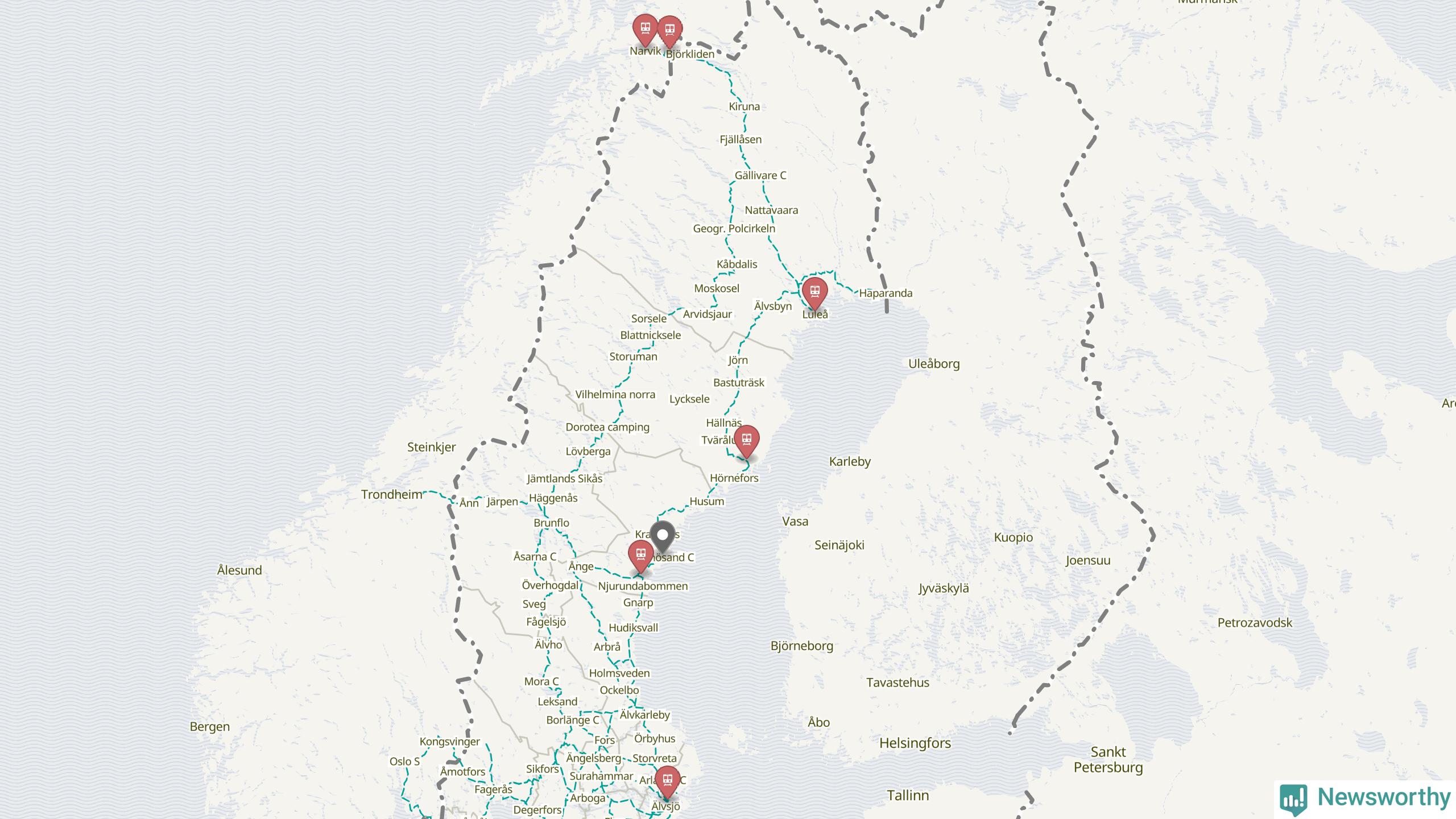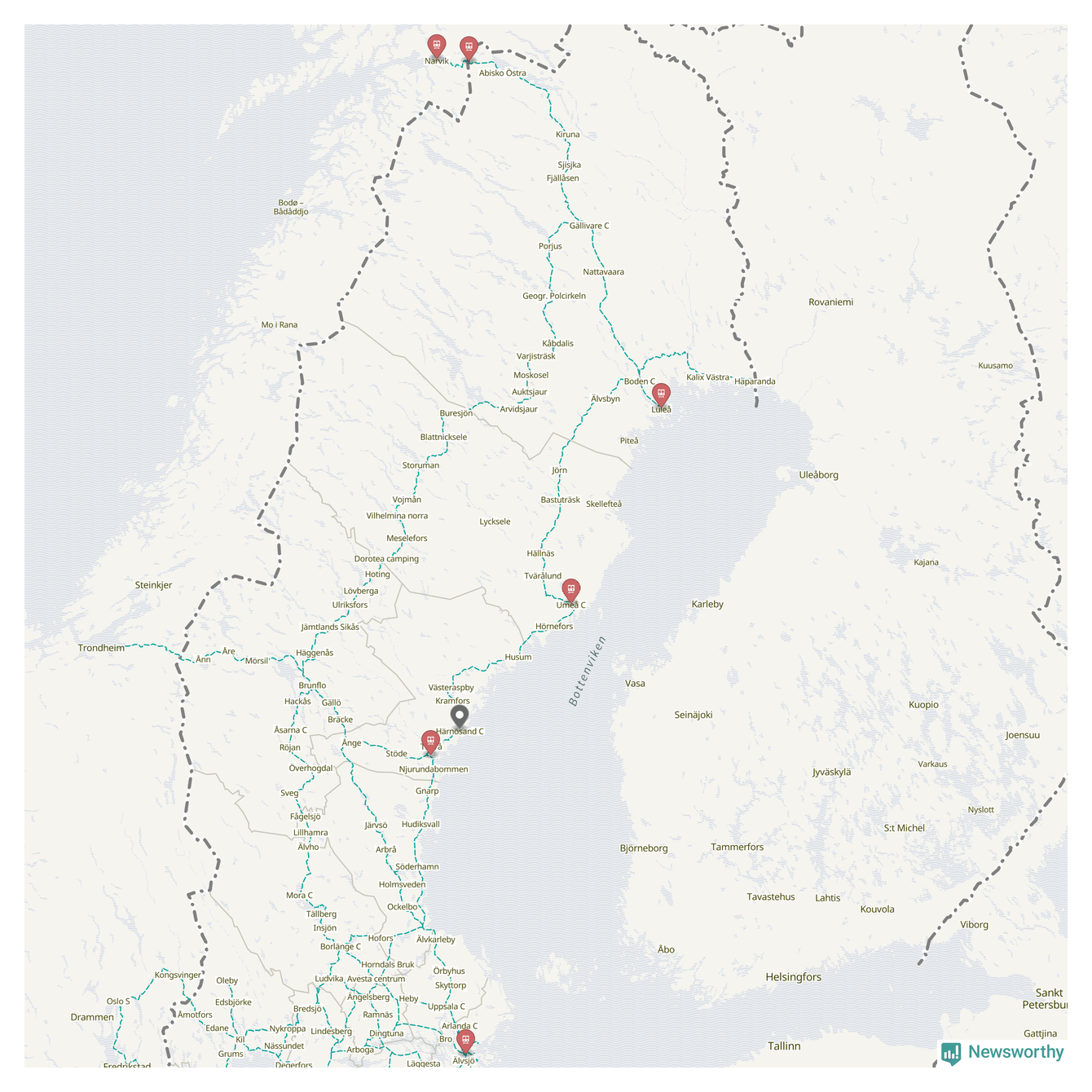 Kartdata från Mapbox, Newsworthy, OpenStreetMap och Trafikverket. Uppgifter om sträckor med passagerartrafik från jarnvag.net.