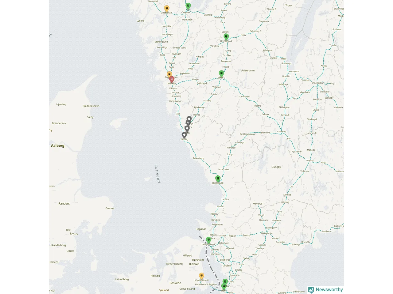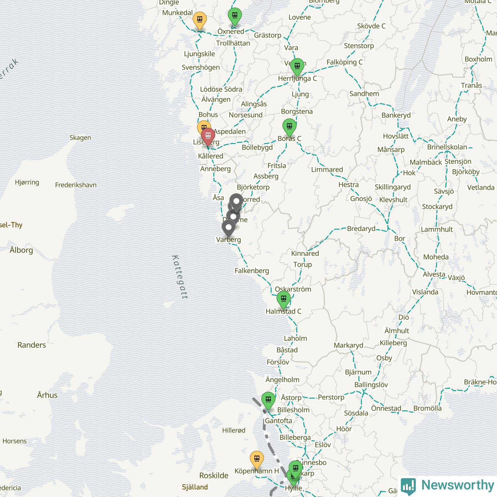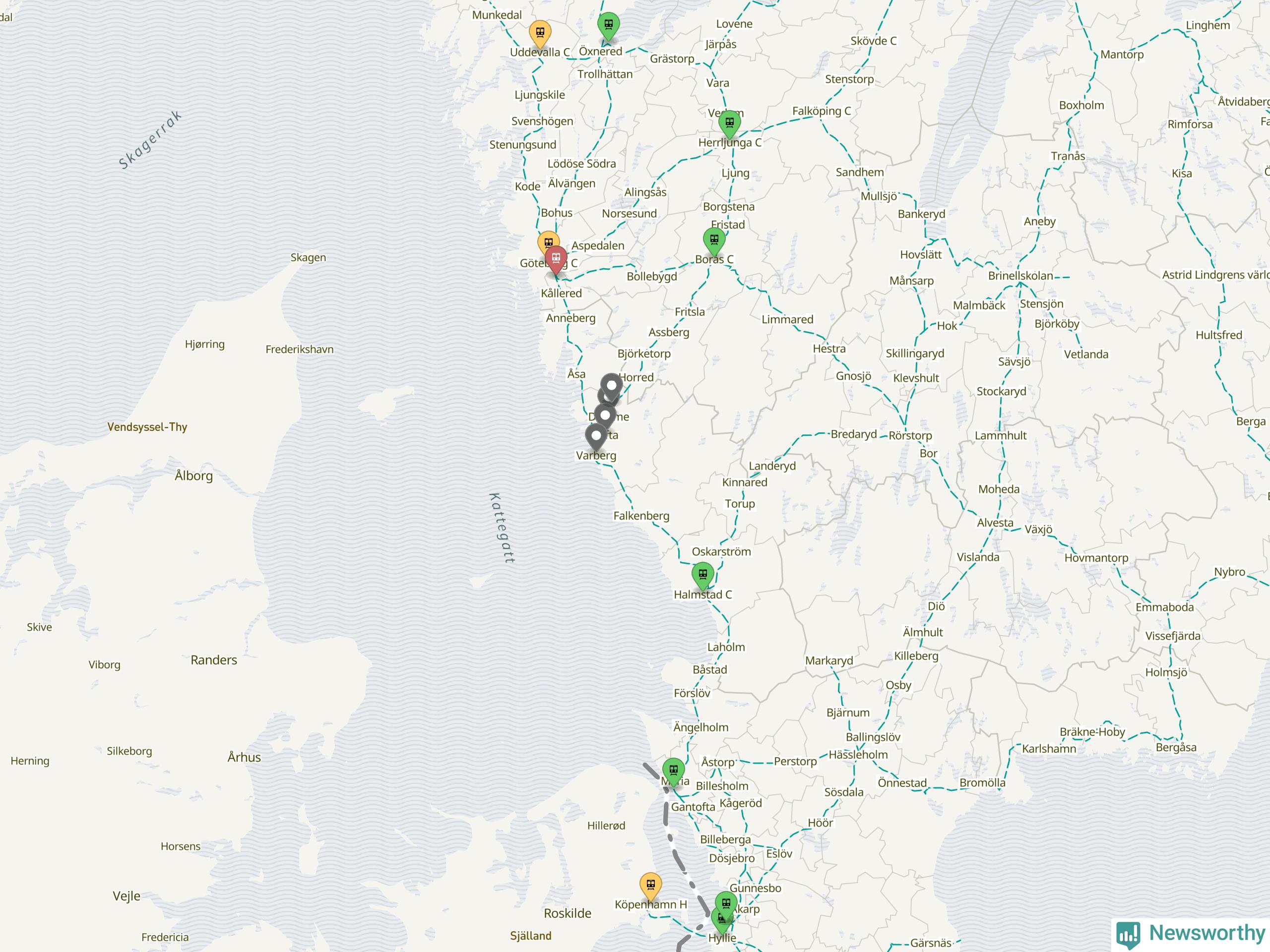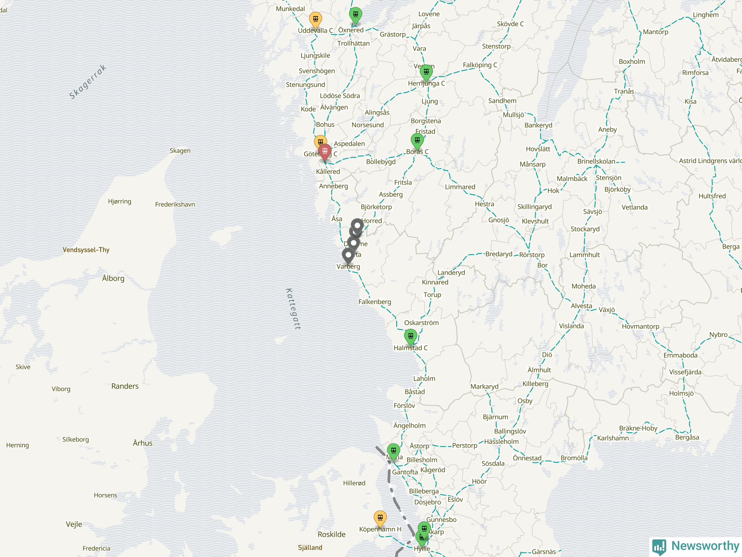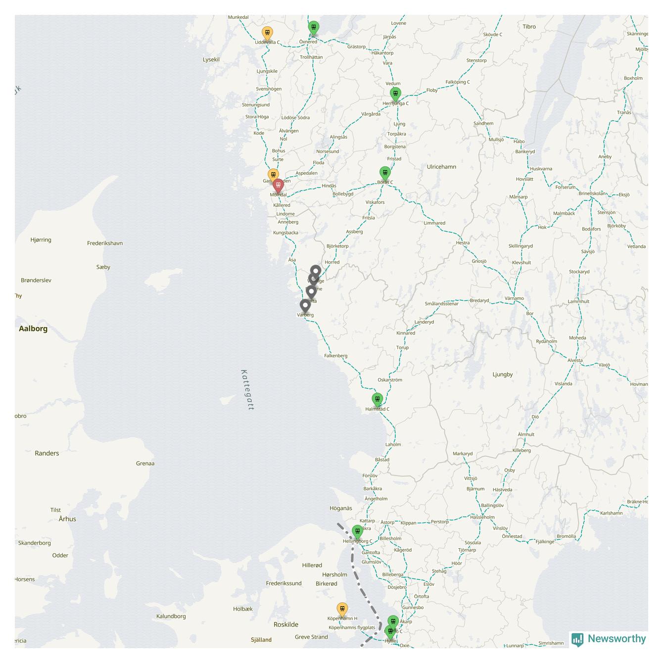 Kartdata från Mapbox, Newsworthy, OpenStreetMap och Trafikverket. Uppgifter om sträckor med passagerartrafik från jarnvag.net.
