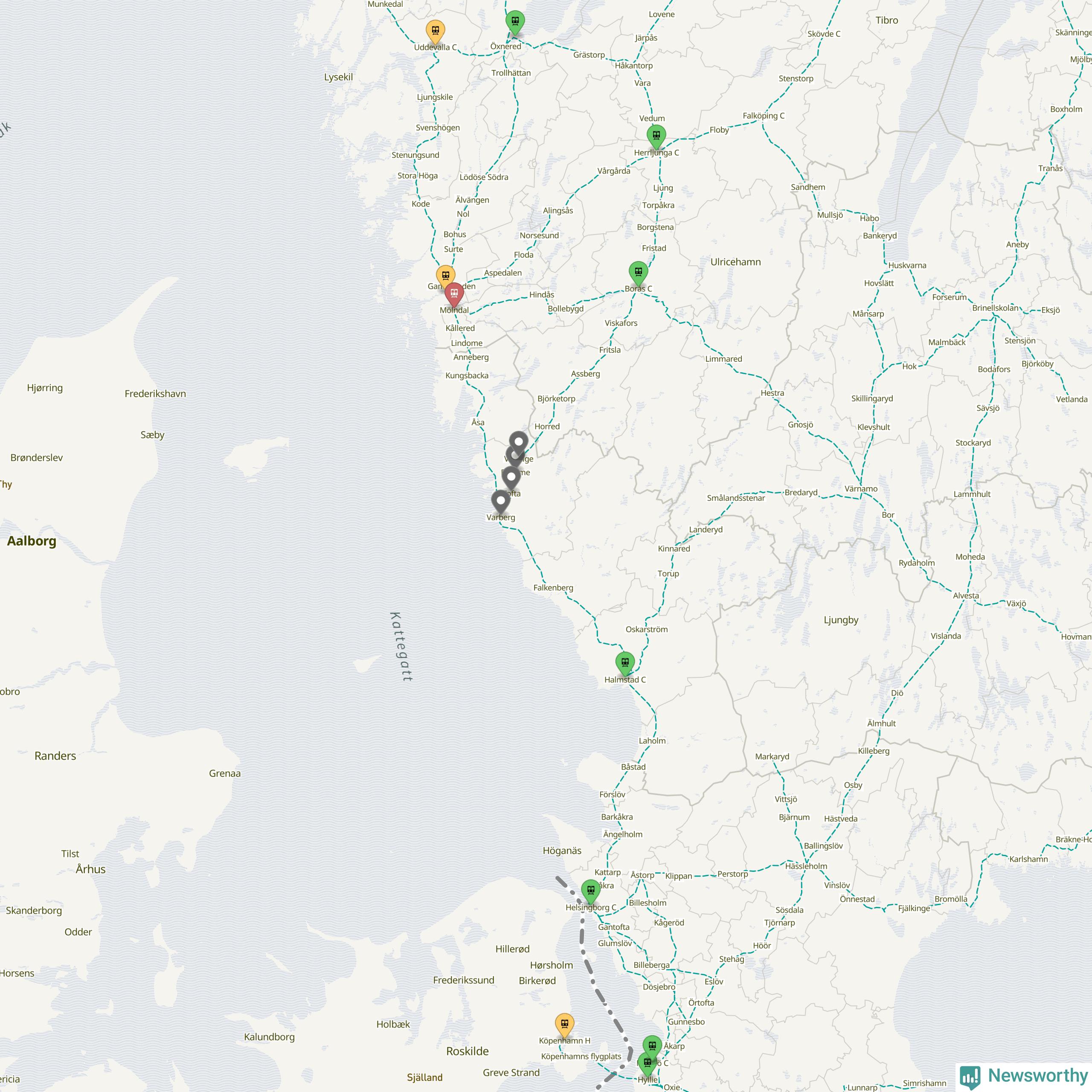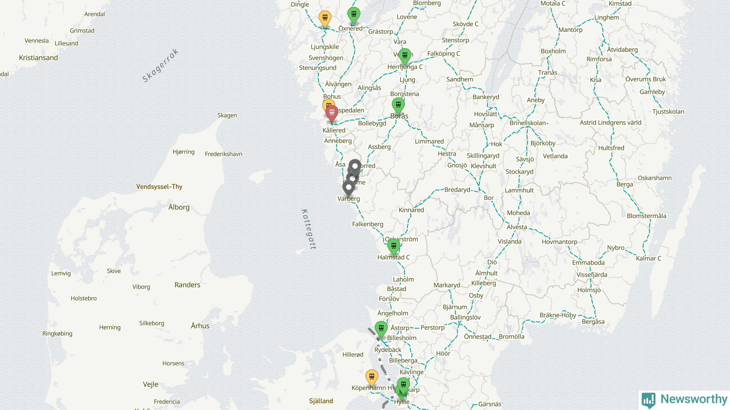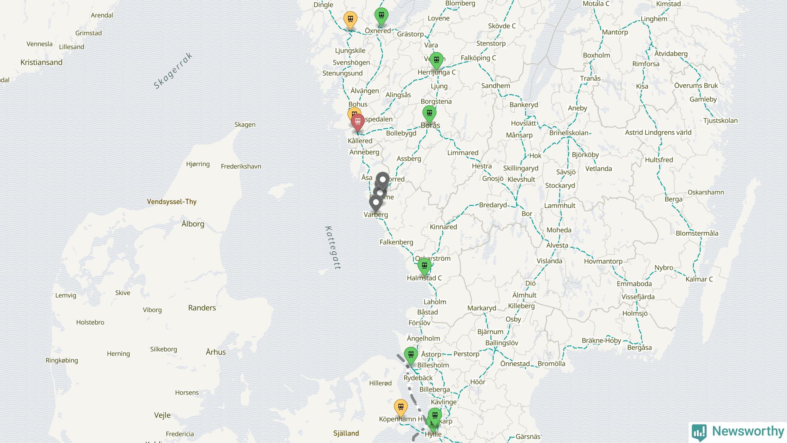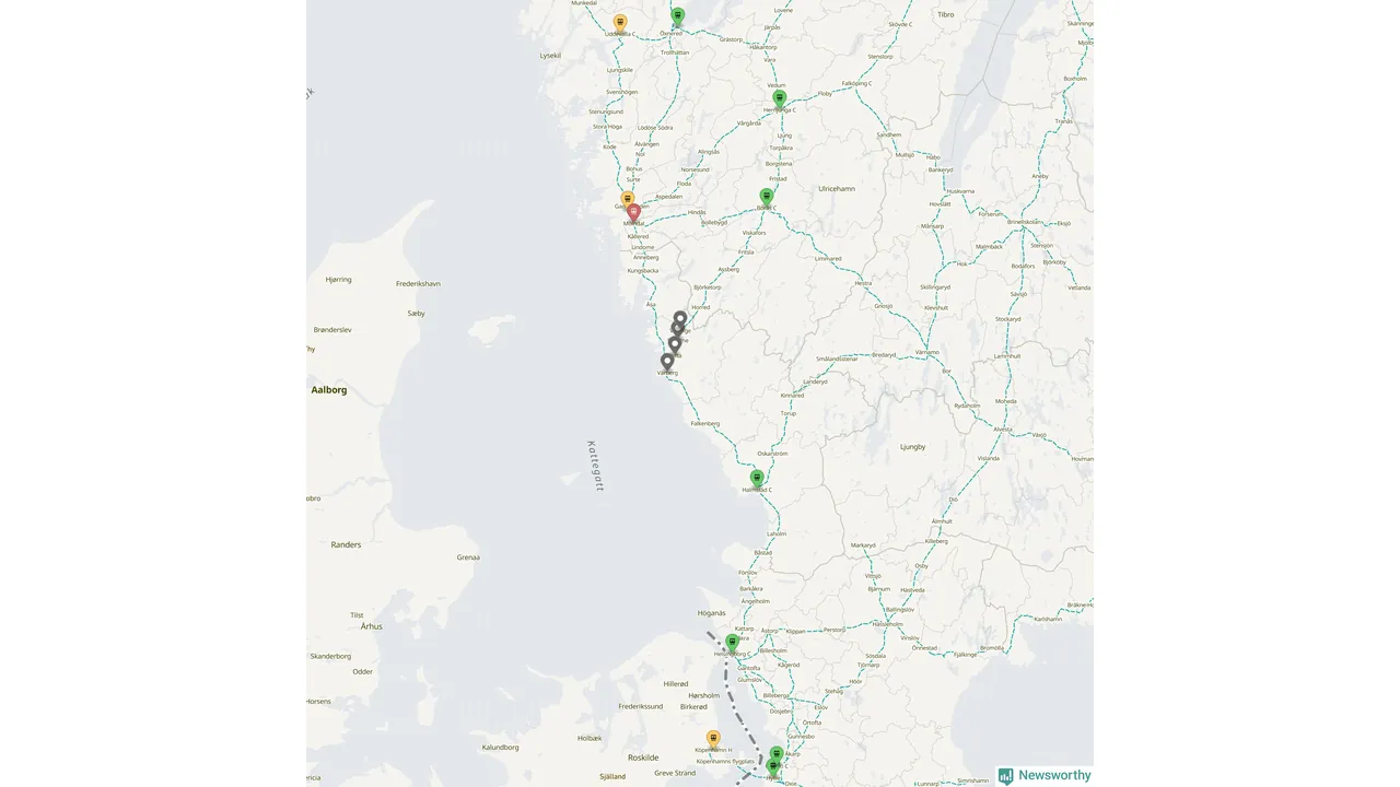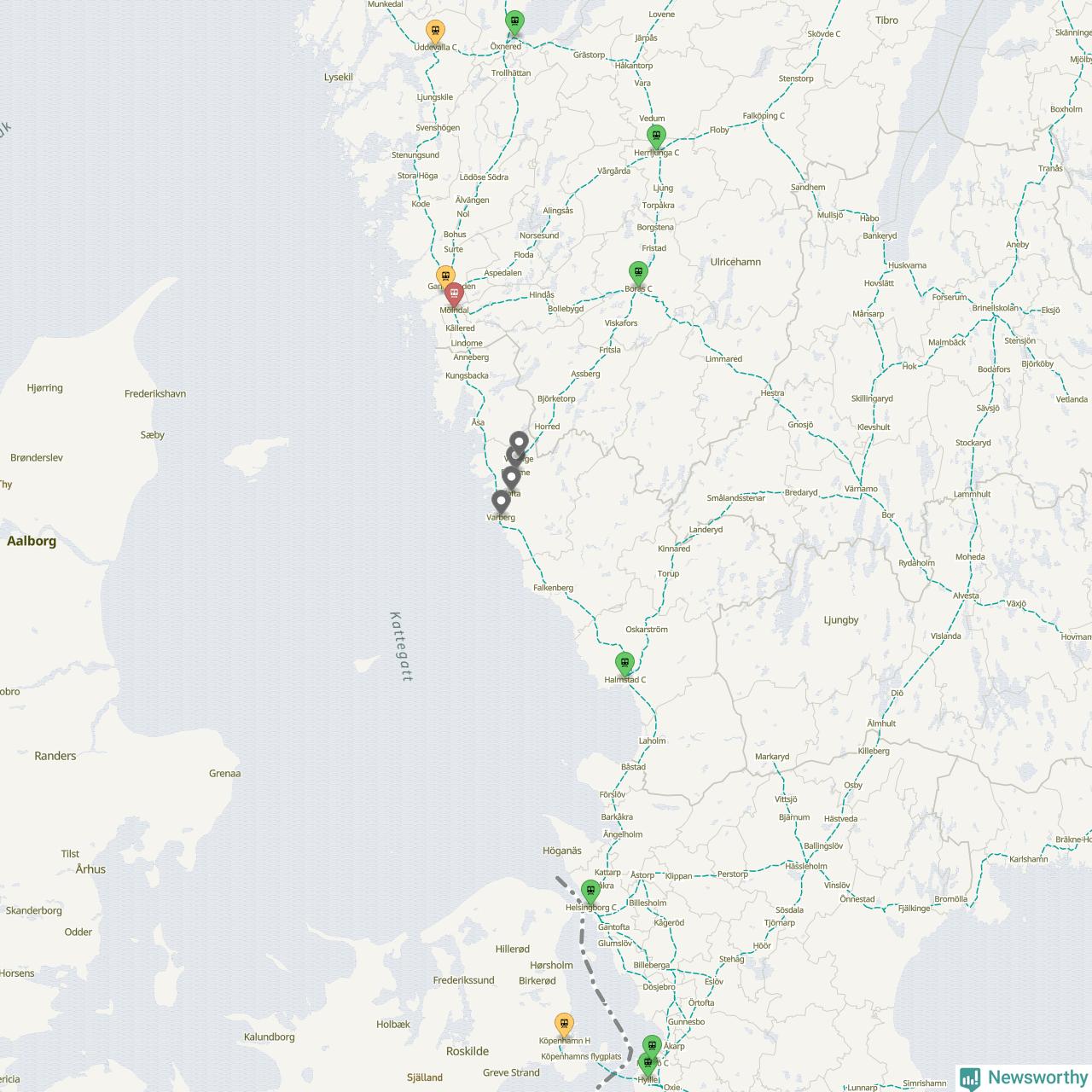 Kartdata från Mapbox, Newsworthy, OpenStreetMap och Trafikverket. Uppgifter om sträckor med passagerartrafik från jarnvag.net.