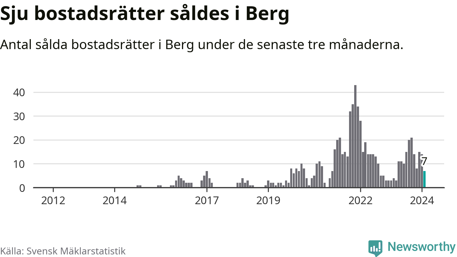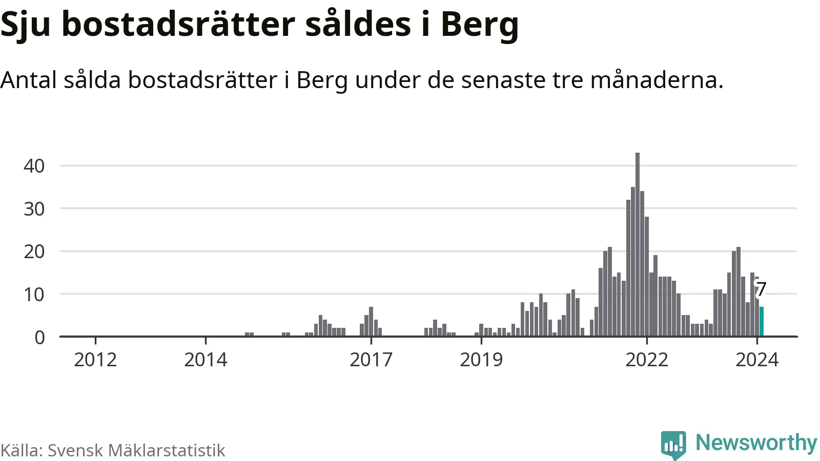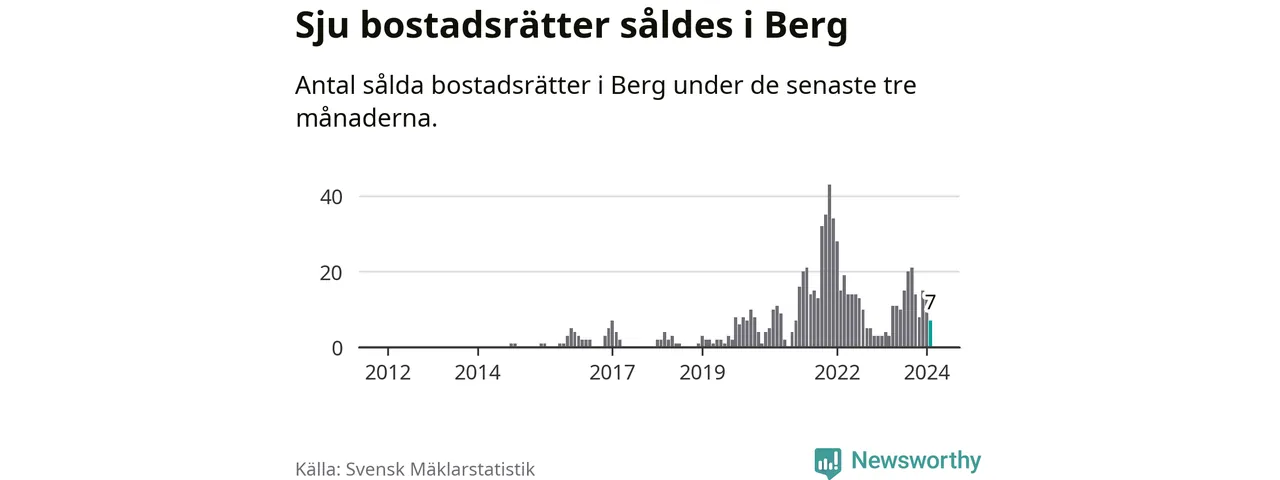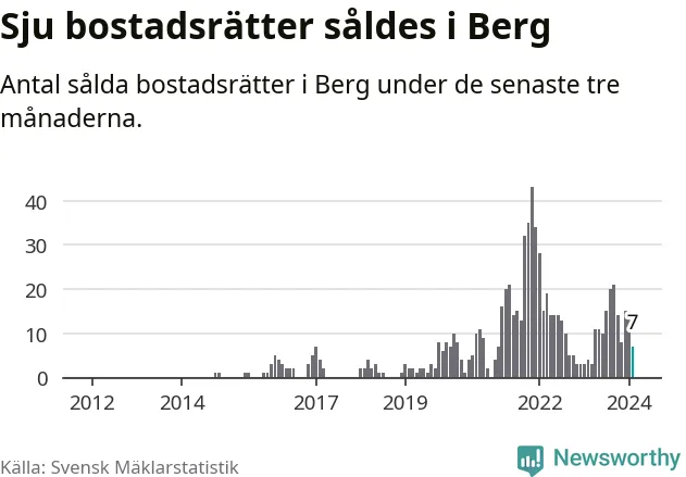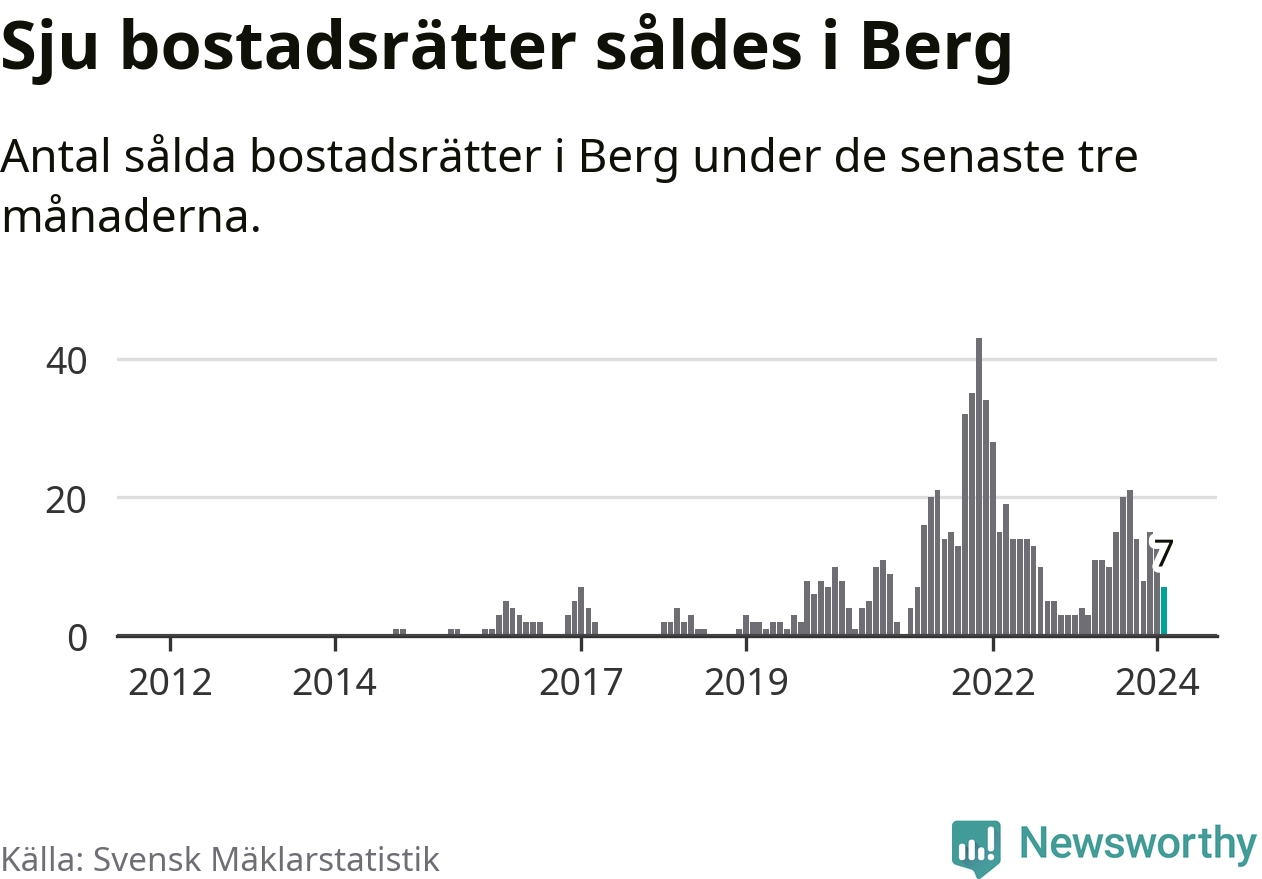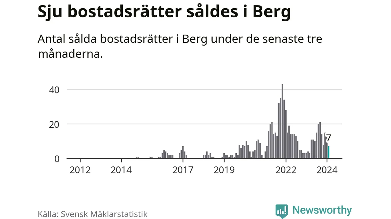 Mellan december och februari gjordes sammanlagt sju affärer med bostadsrätter i Bergs kommun. Det kan jämföras med fyra vid motsvarande tid i fjol.