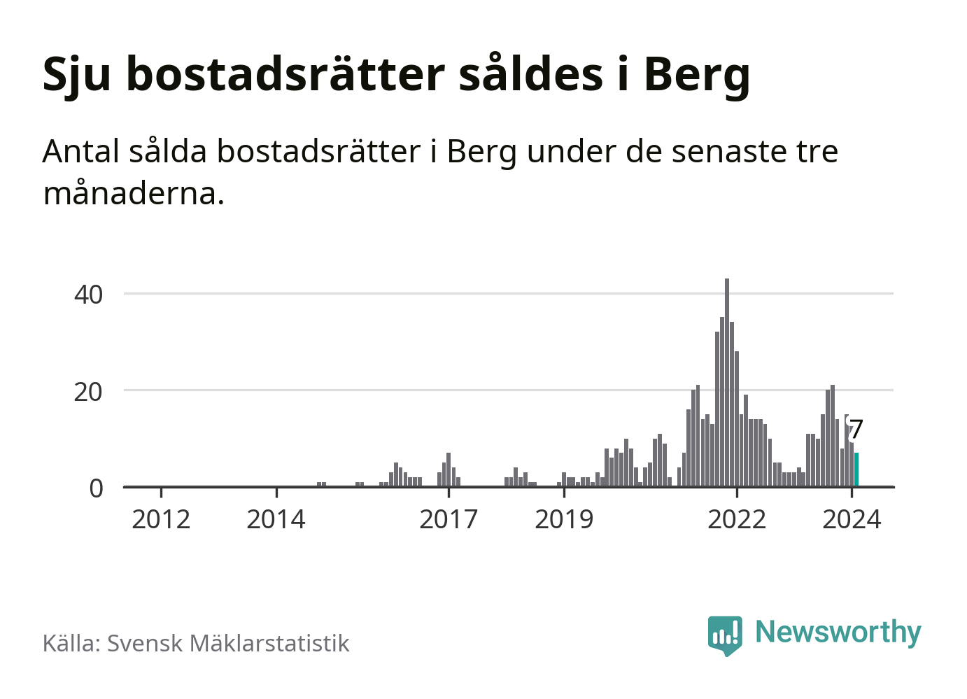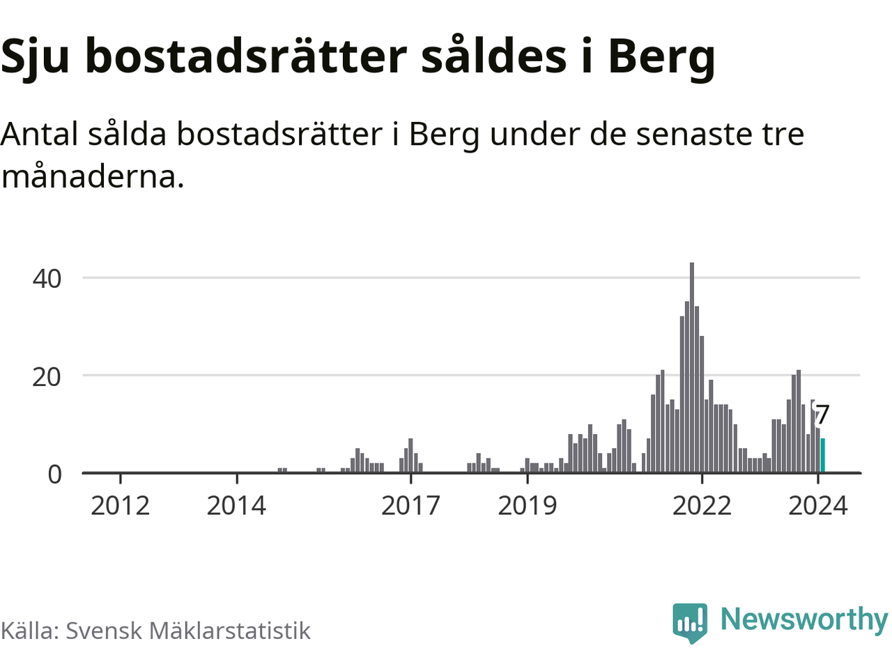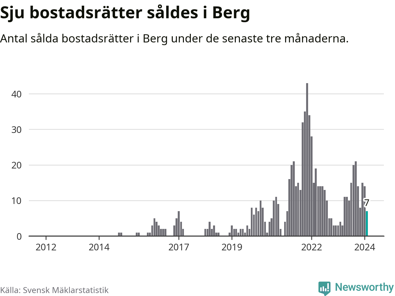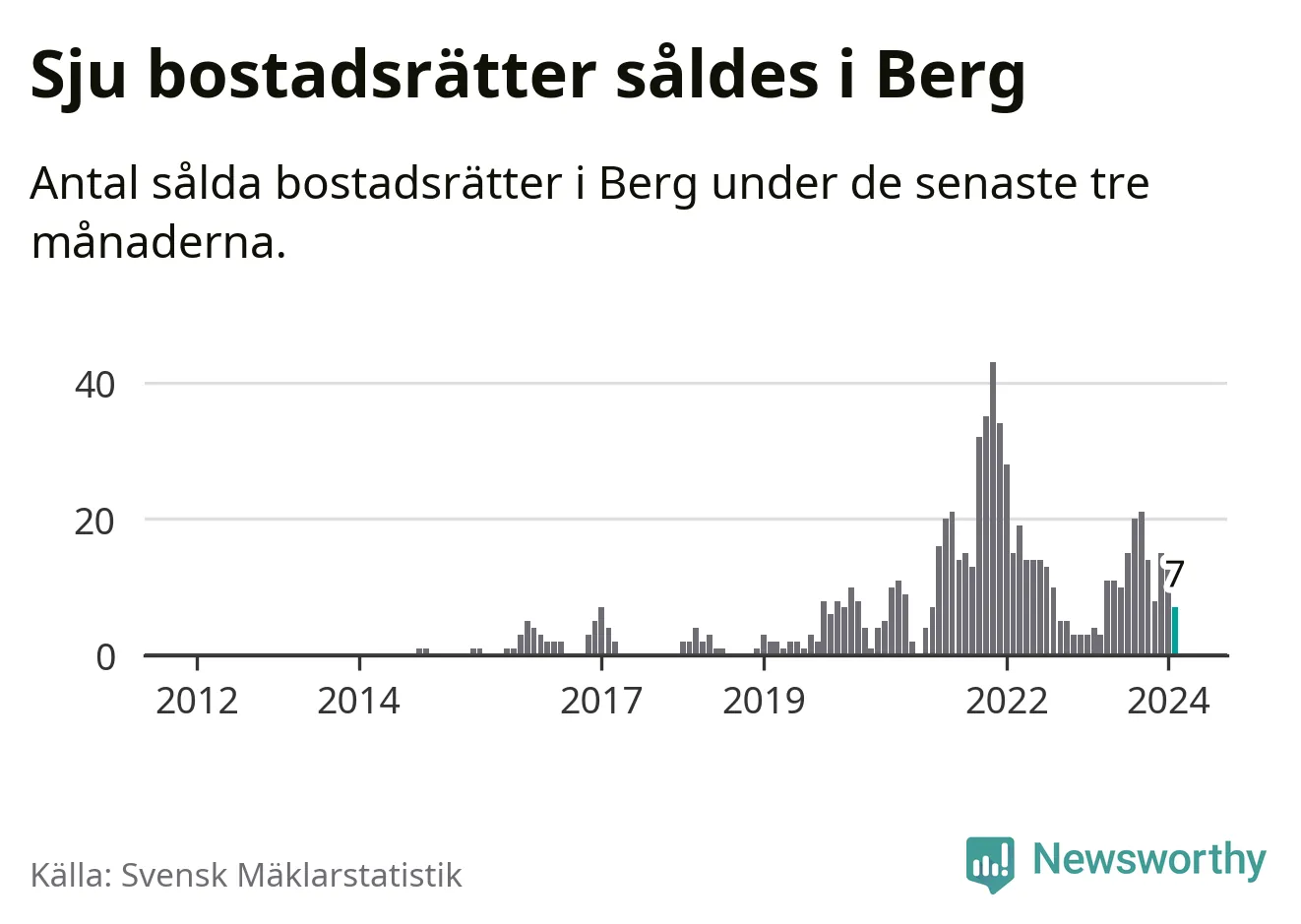 Mellan december och februari gjordes sammanlagt sju affärer med bostadsrätter i Bergs kommun. Det kan jämföras med fyra vid motsvarande tid i fjol.