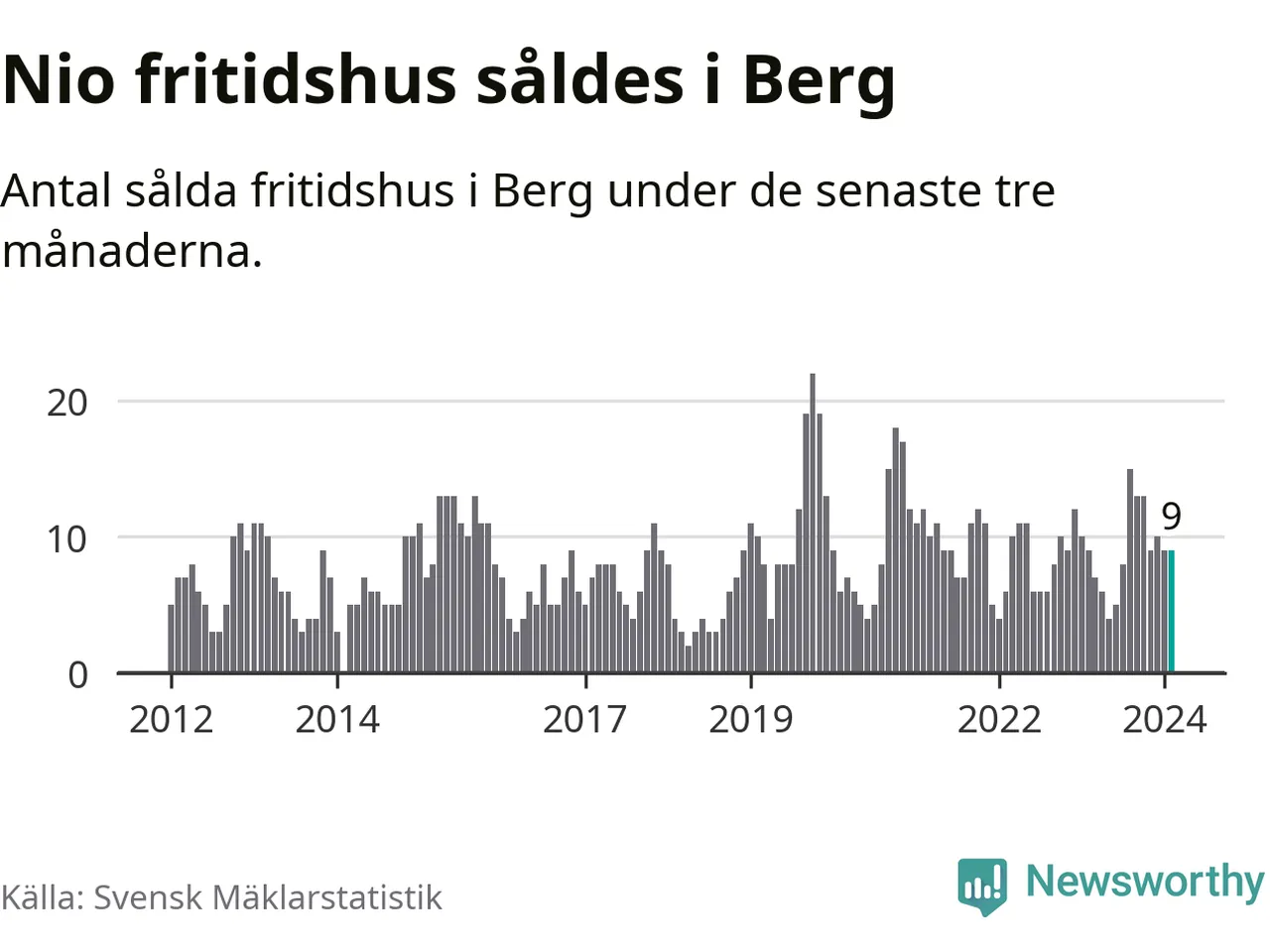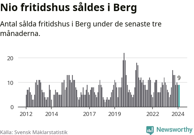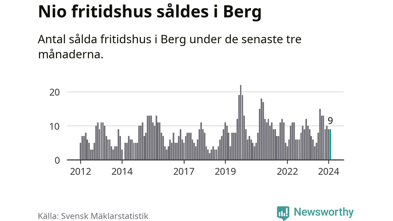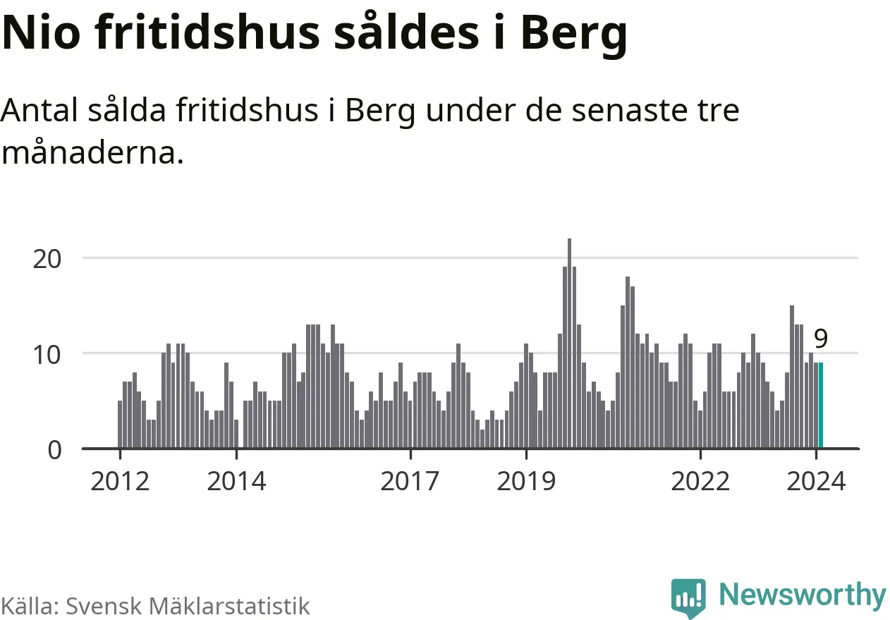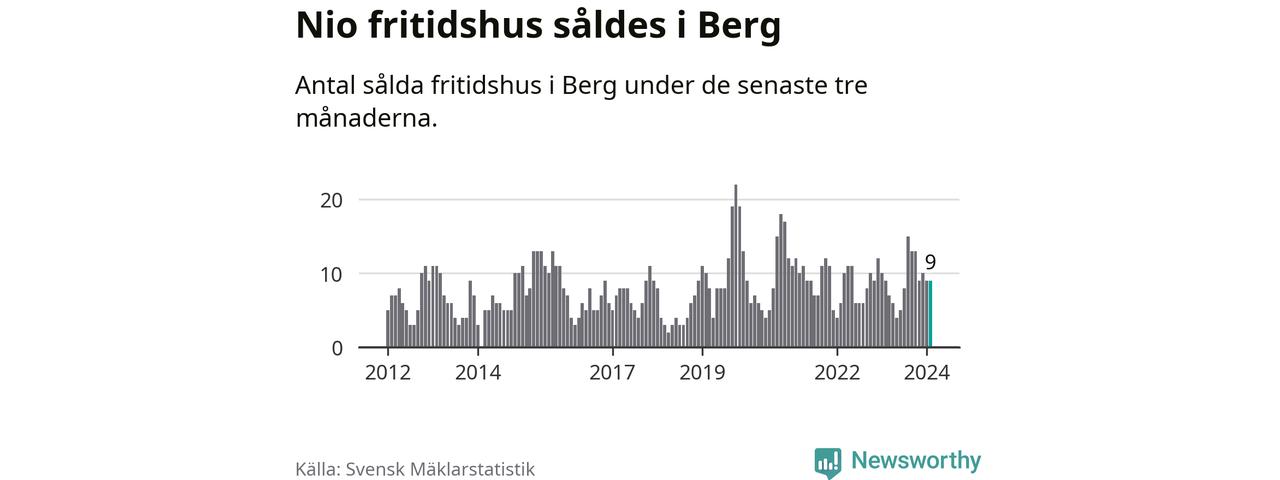 Sammanlagt såldes nio fritidshus i Bergs kommun mellan december 2023 och februari till ett genomsnittligt pris på 2,5 miljoner kronor. I fjol gjordes nio affärer vid den här tiden på året.