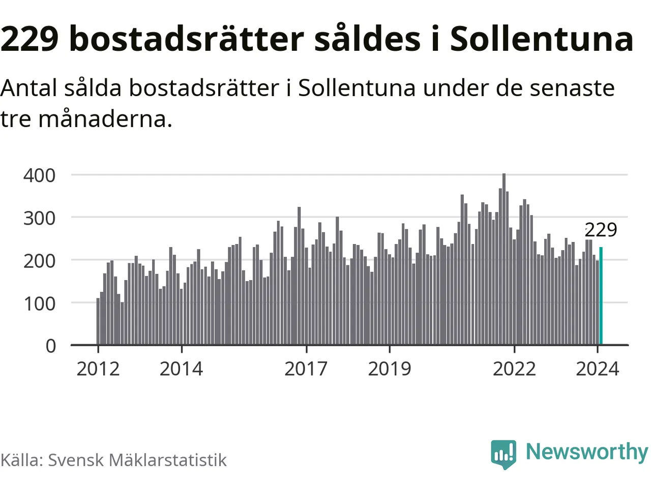 Sollentuna | −1 % ▼ | 229 | 3,0 miljoner |