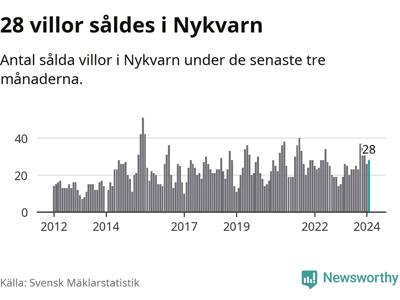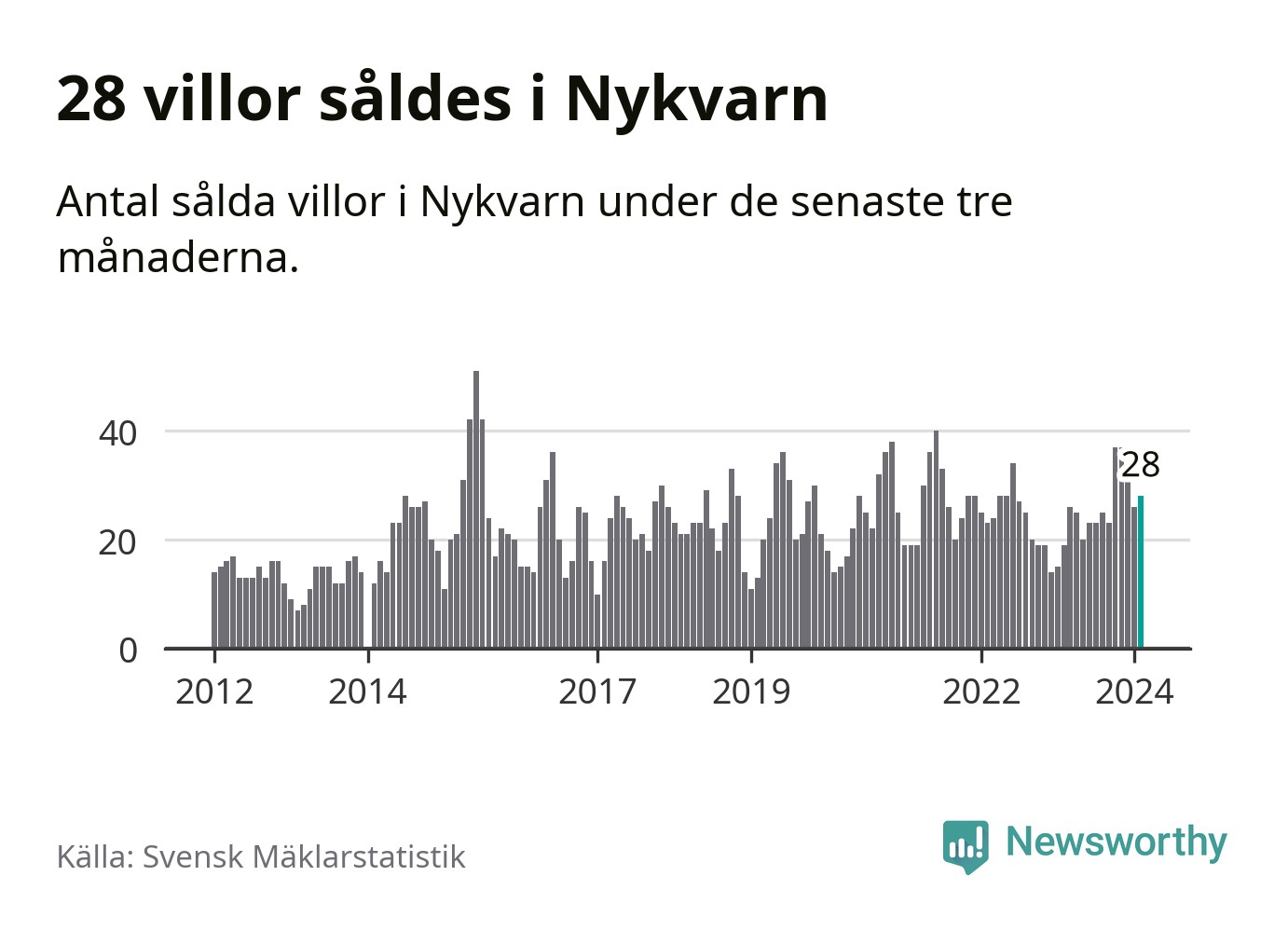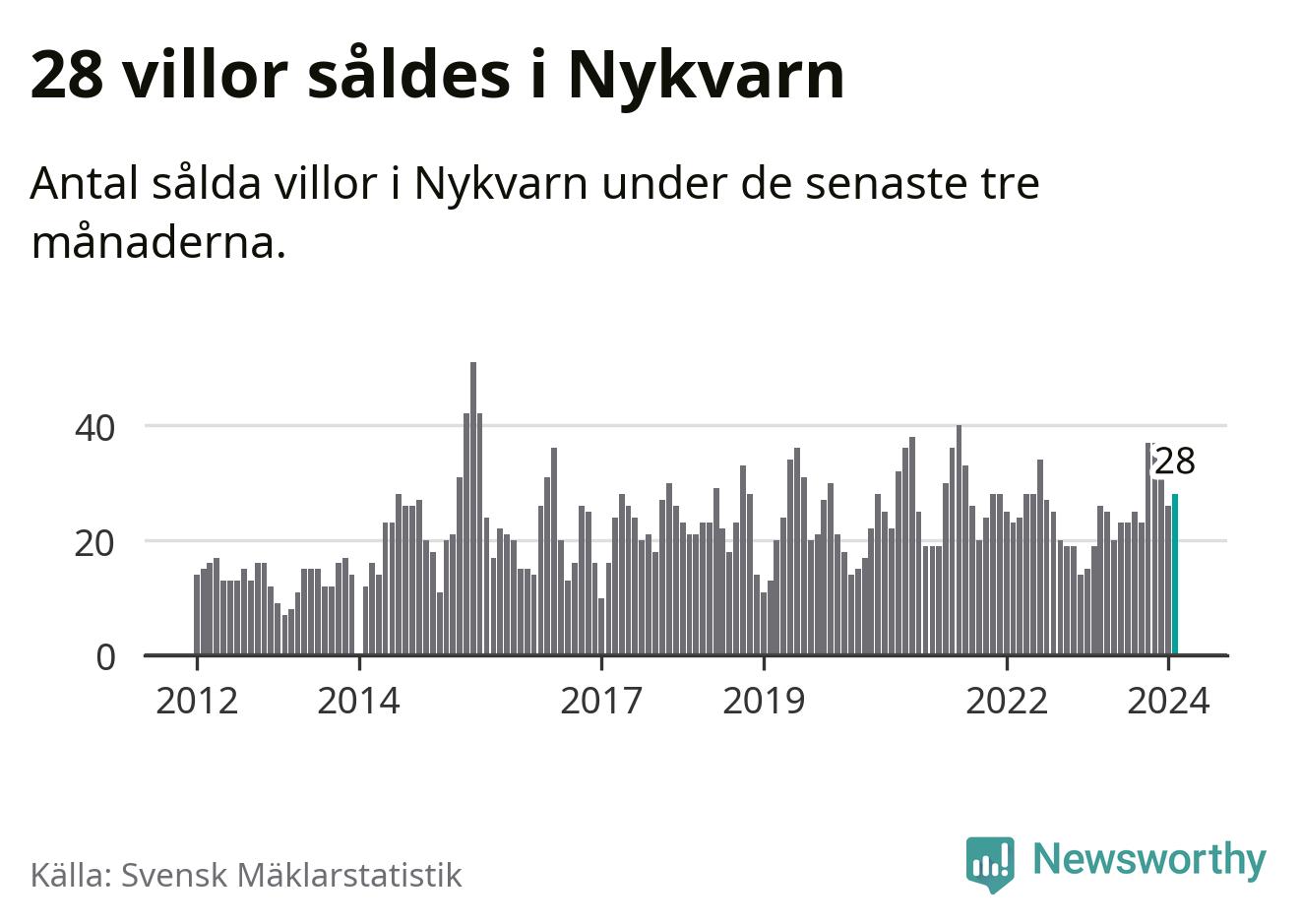 Mellan december och februari gjordes sammanlagt 28 affärer med villor i Nykvarns kommun. Det kan jämföras med 19 vid motsvarande tid i fjol.