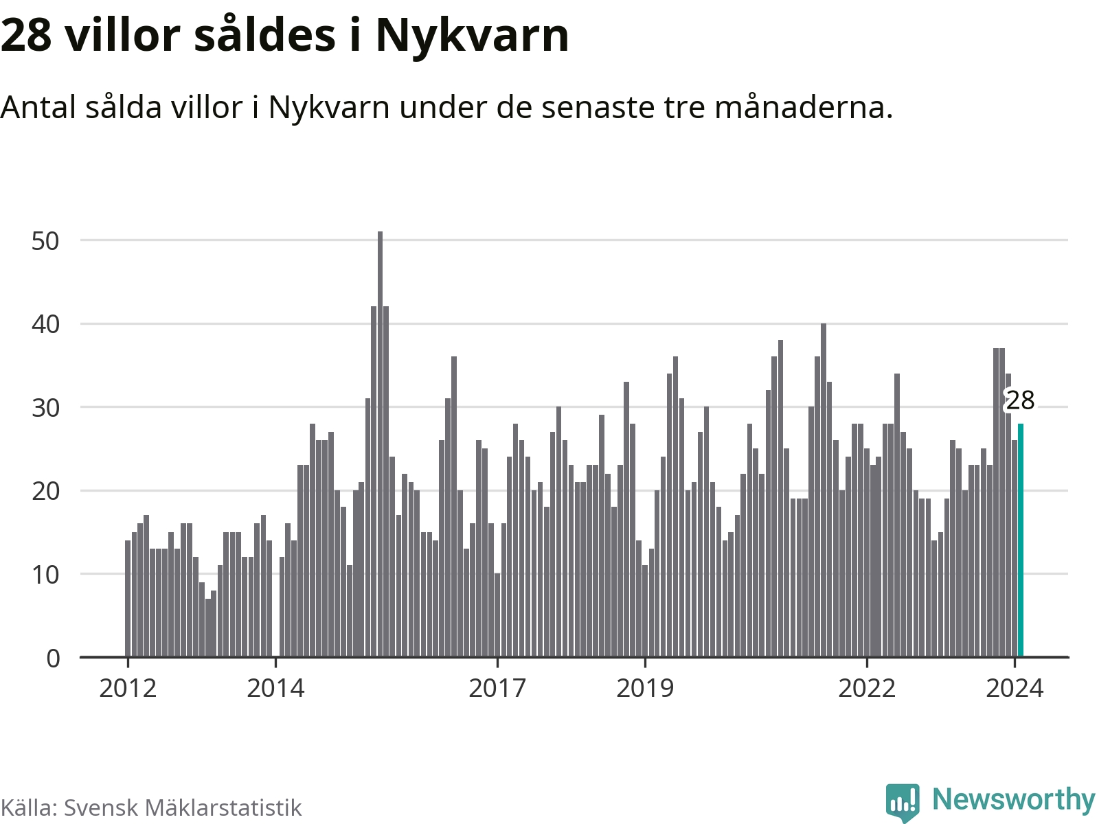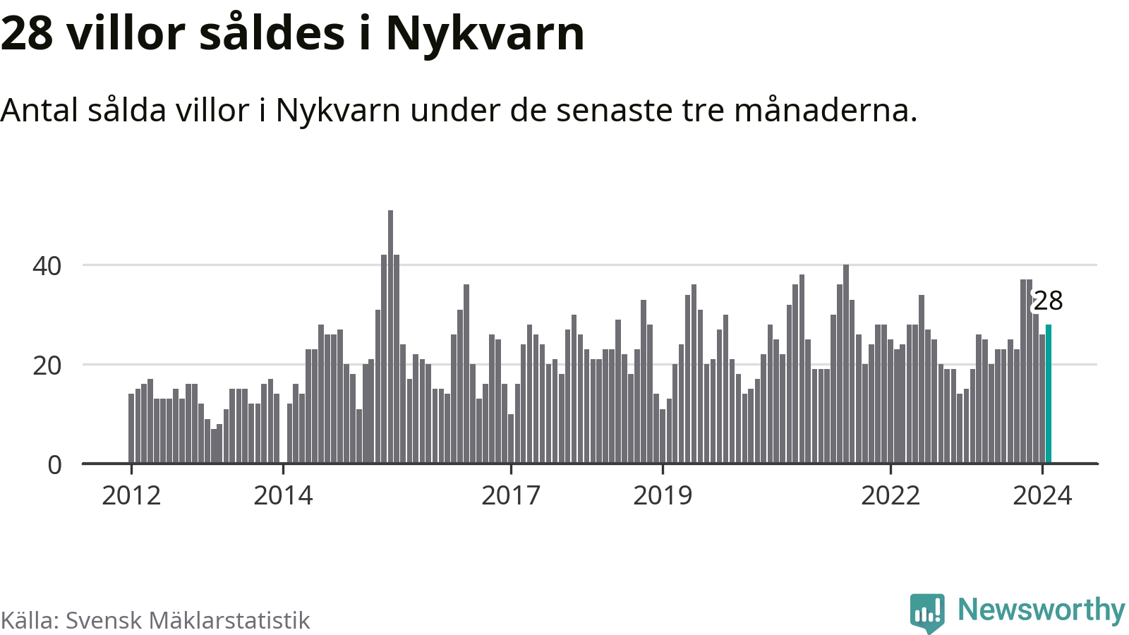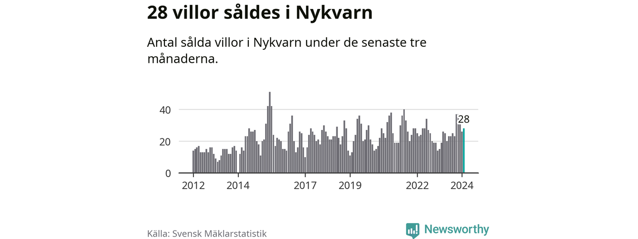 Mellan december och februari gjordes sammanlagt 28 affärer med villor i Nykvarns kommun. Det kan jämföras med 19 vid motsvarande tid i fjol.
