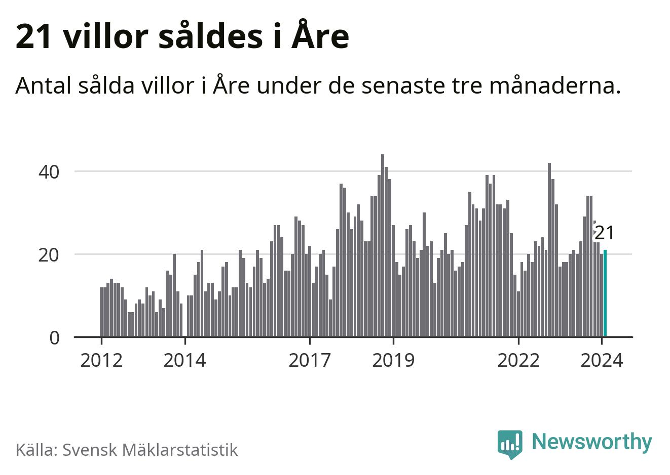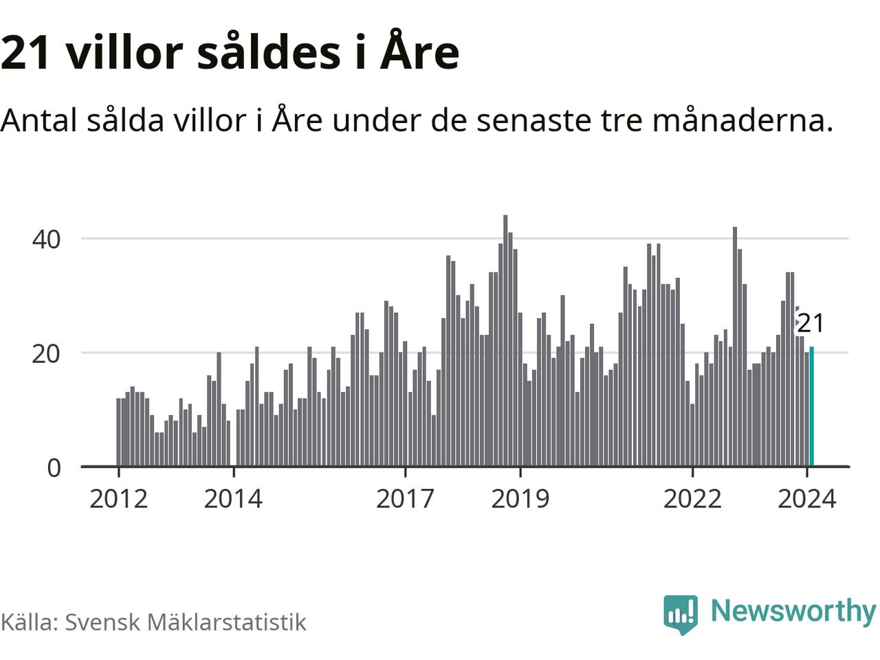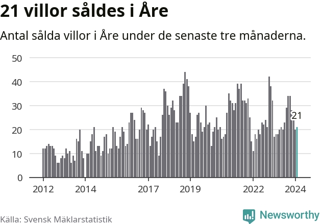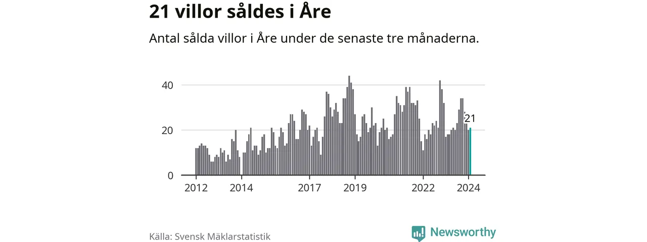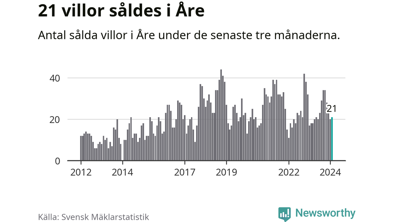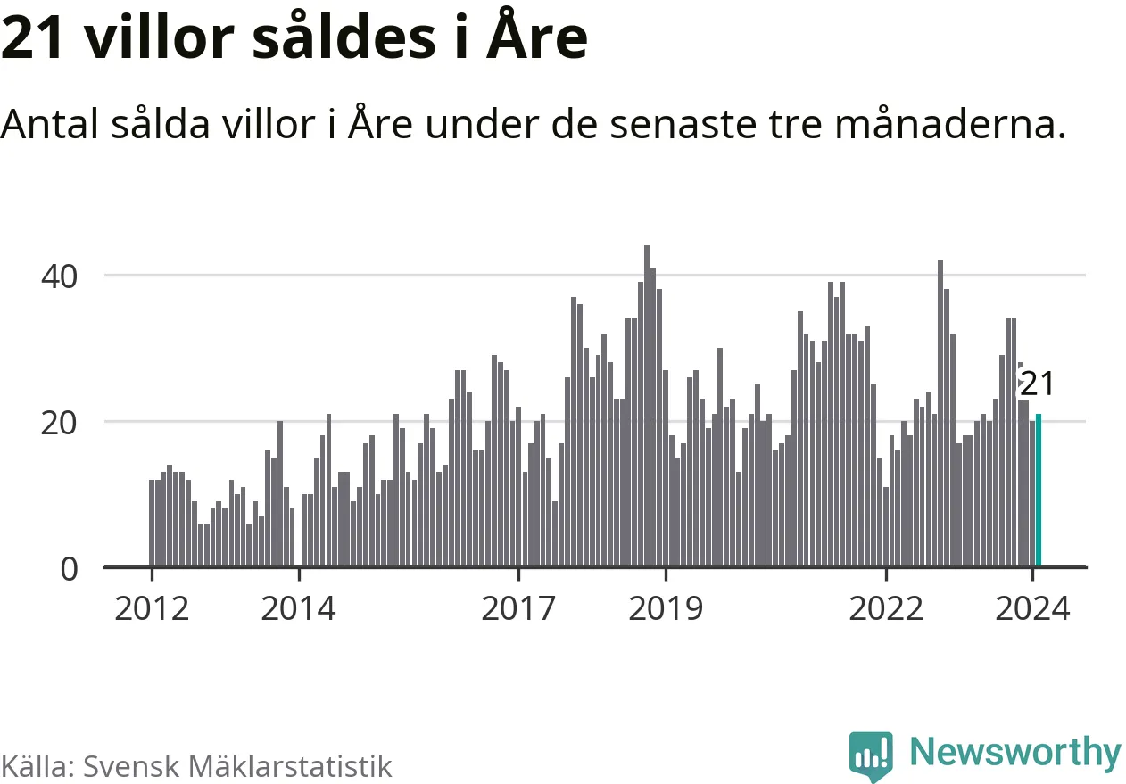 Mellan december och februari gjordes sammanlagt 21 affärer med villor i Åre kommun. Det kan jämföras med 18 vid motsvarande tid i fjol.