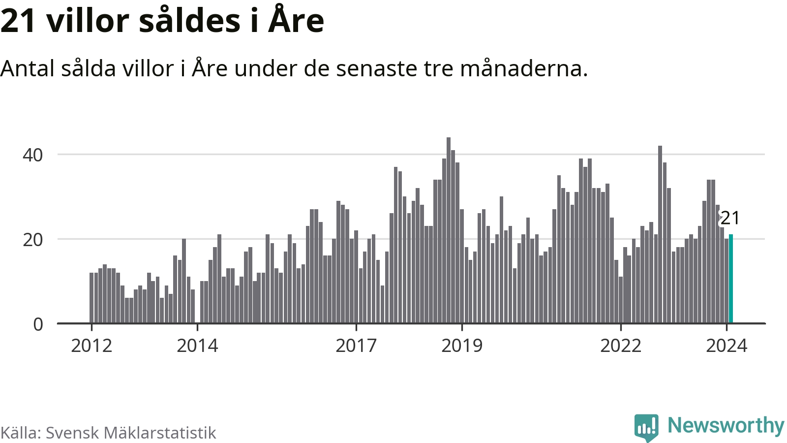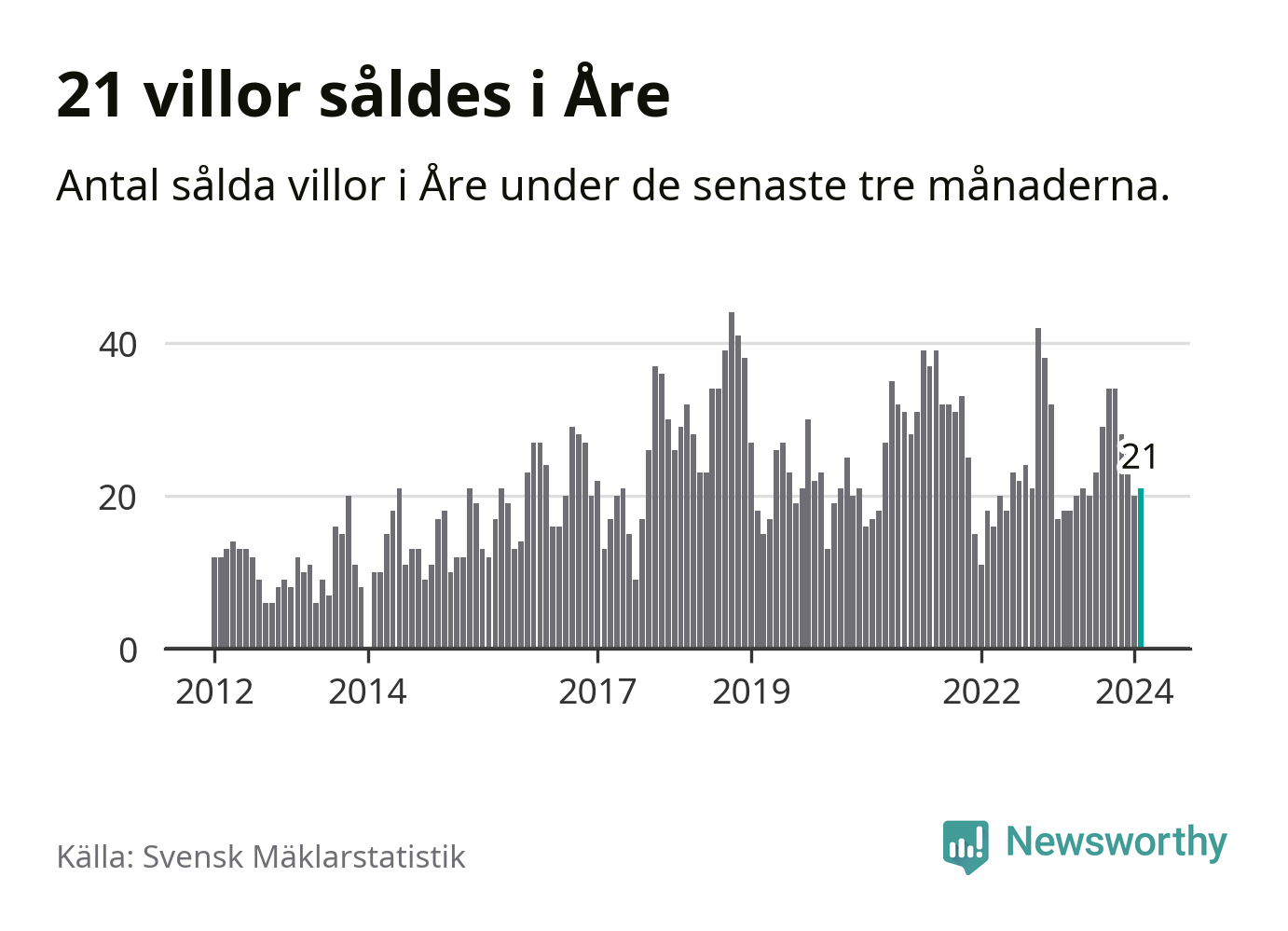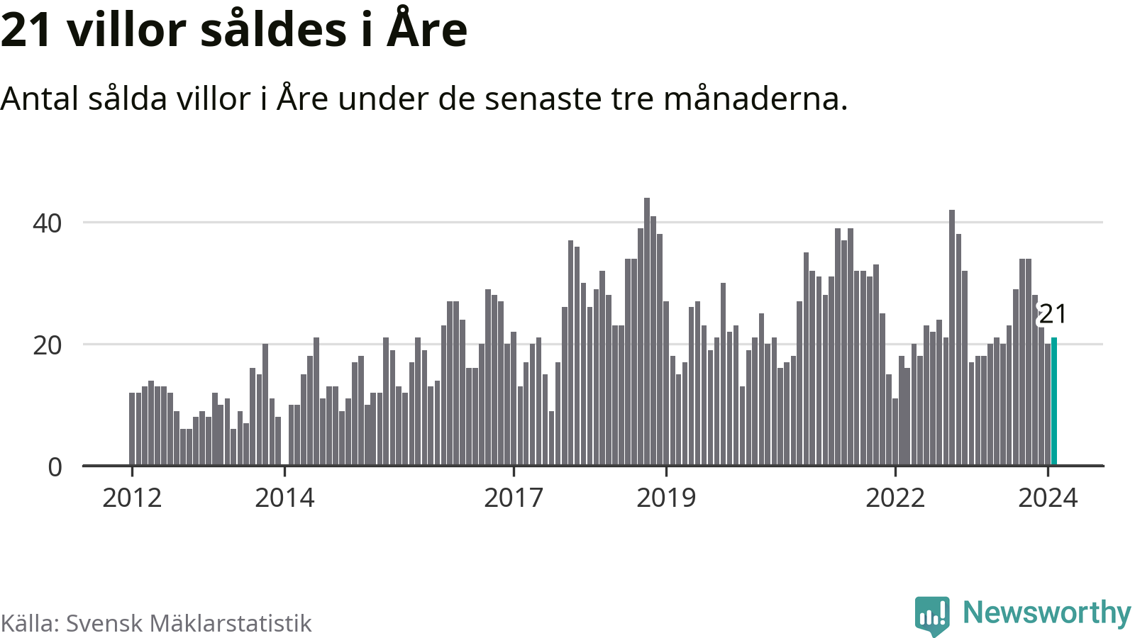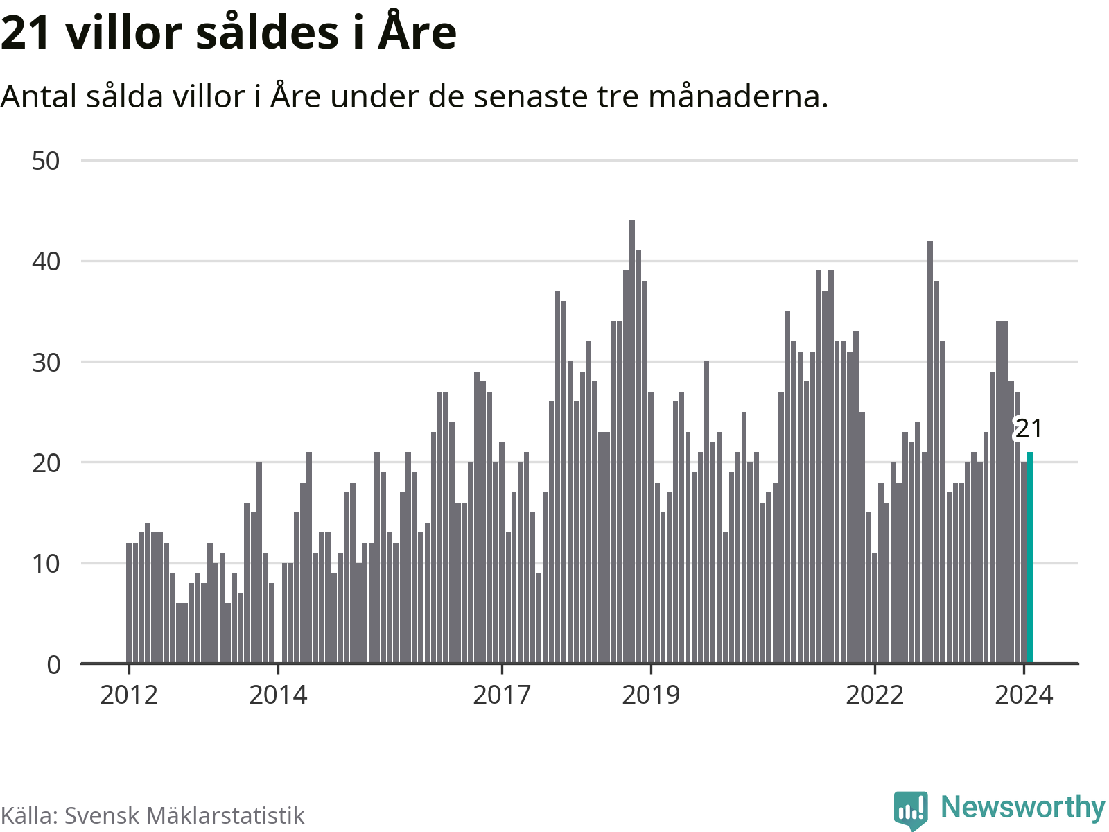 Mellan december och februari gjordes sammanlagt 21 affärer med villor i Åre kommun. Det kan jämföras med 18 vid motsvarande tid i fjol.
