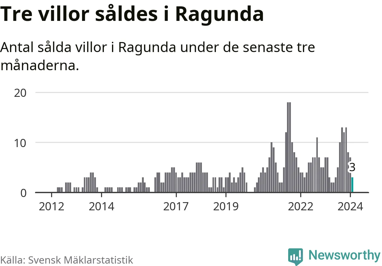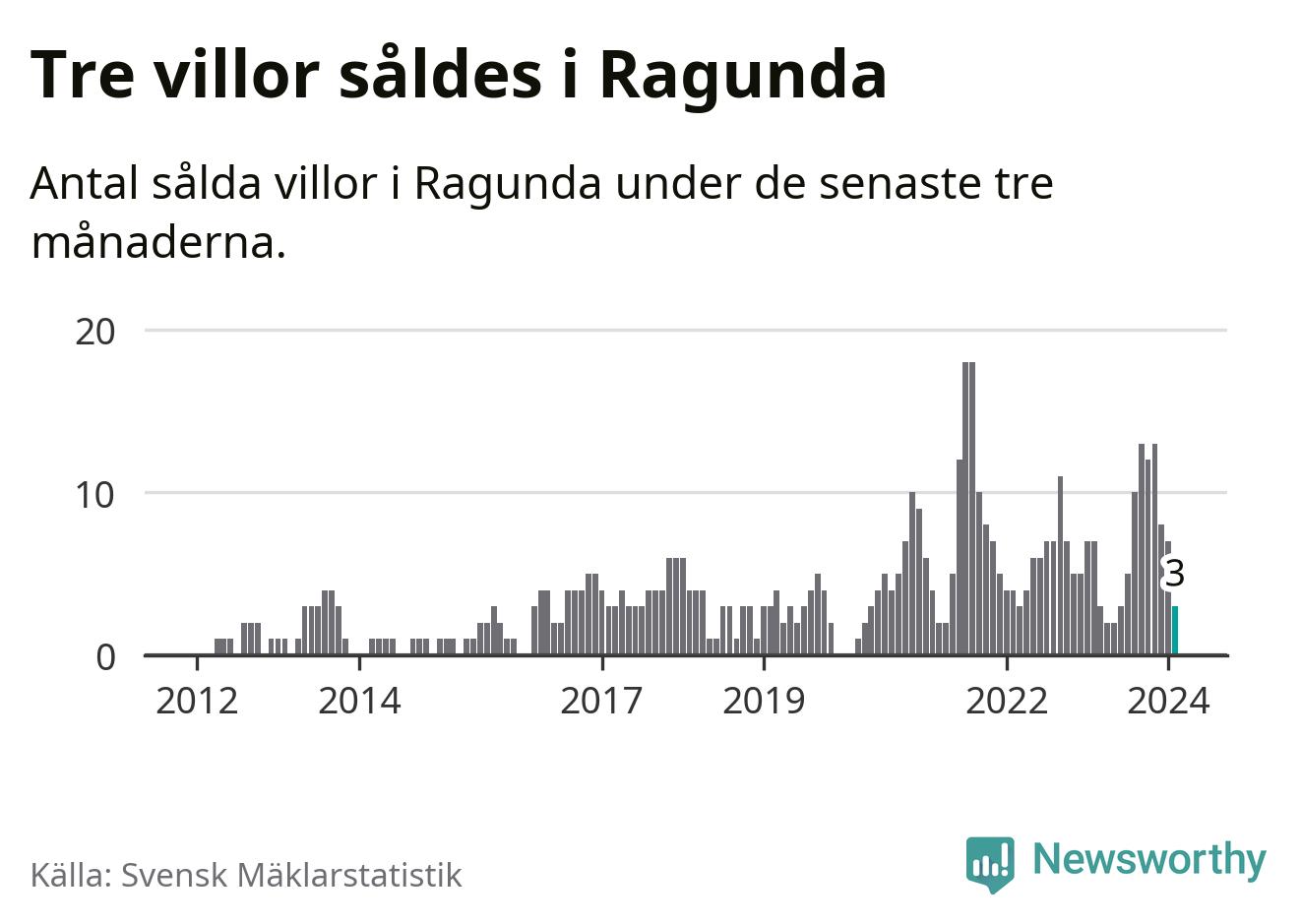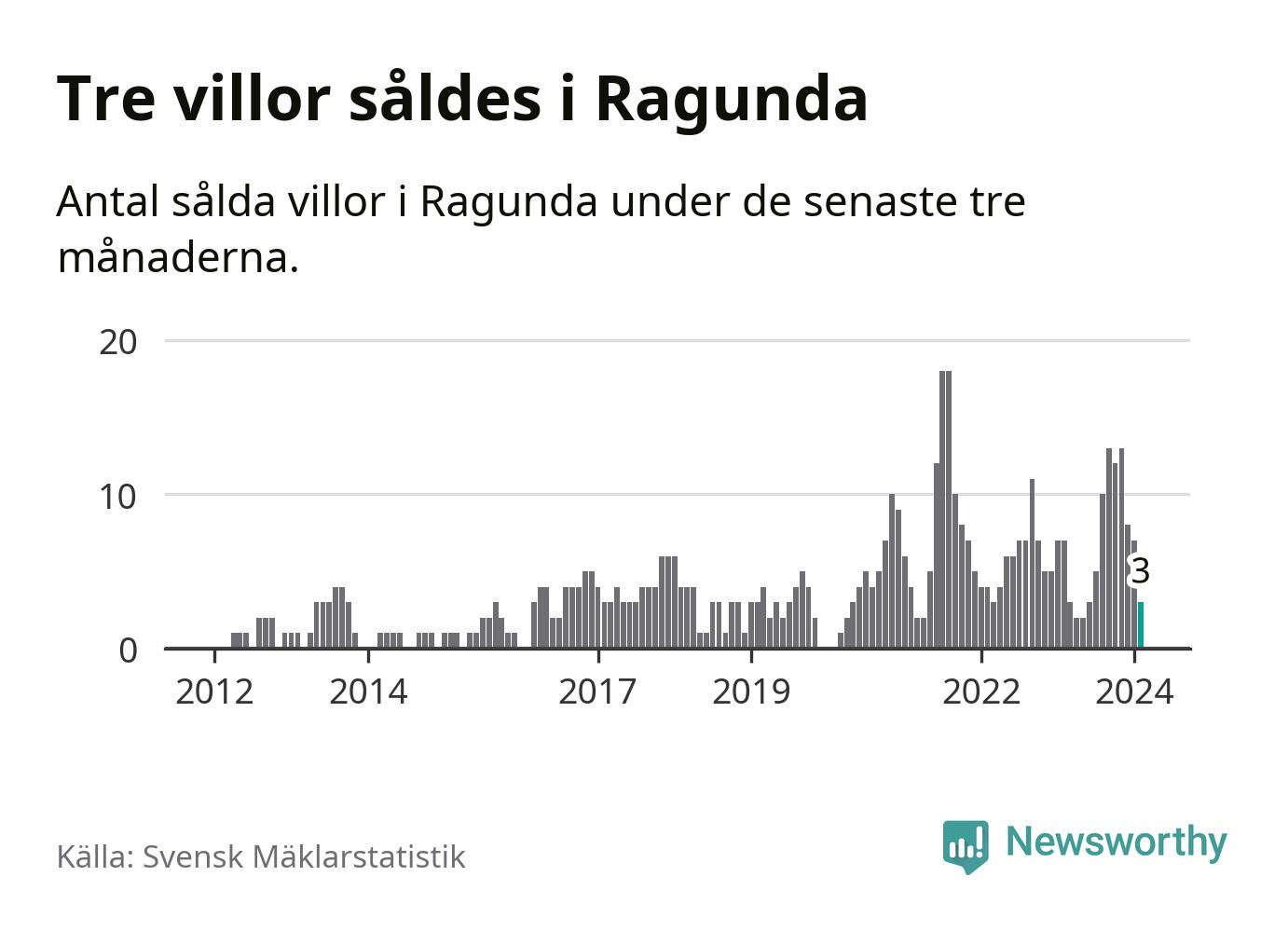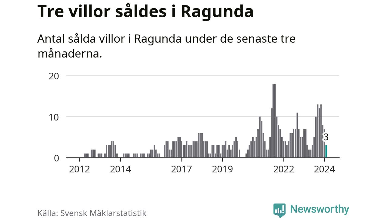 Mellan december och februari gjordes sammanlagt tre affärer med villor i Ragunda kommun. Det kan jämföras med sju vid motsvarande tid i fjol.