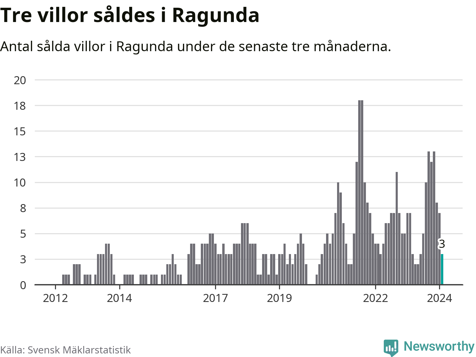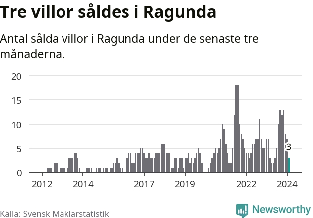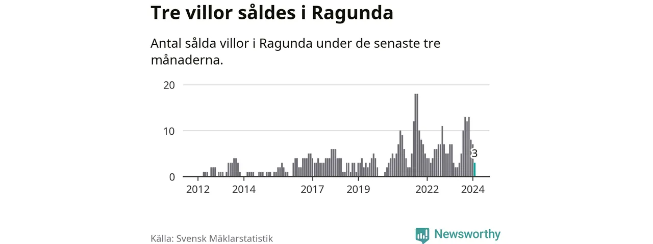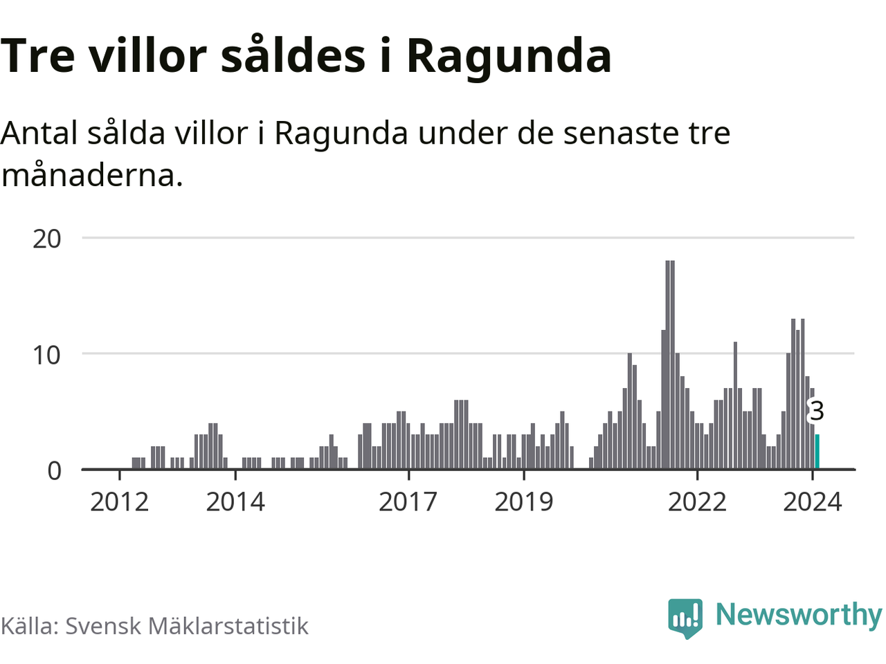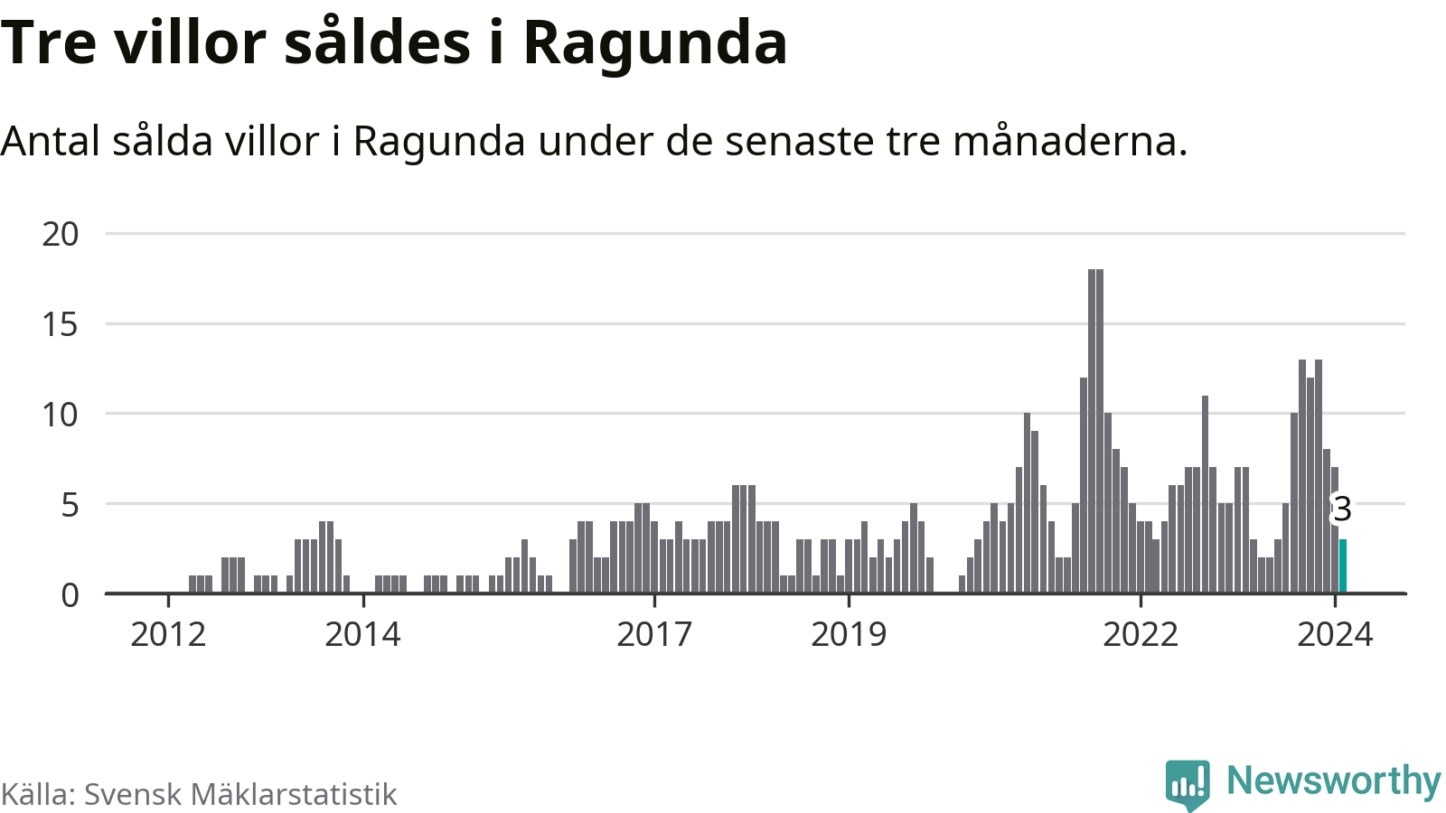 Mellan december och februari gjordes sammanlagt tre affärer med villor i Ragunda kommun. Det kan jämföras med sju vid motsvarande tid i fjol.