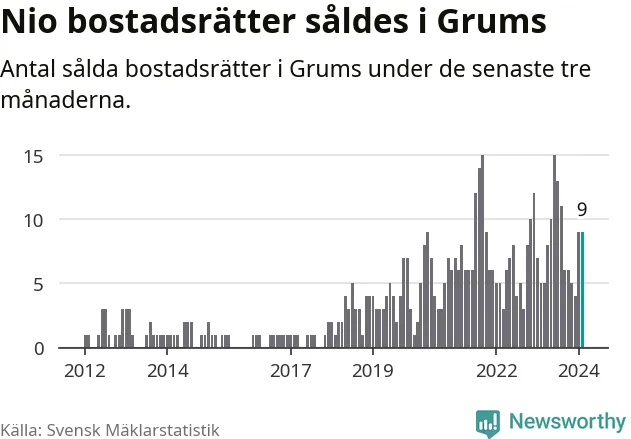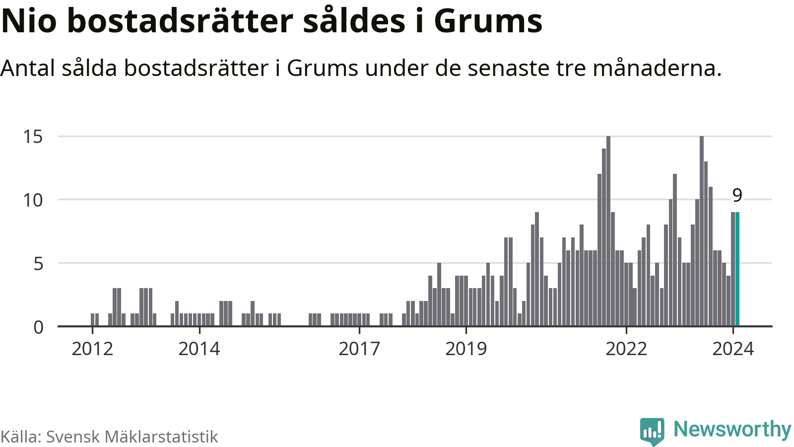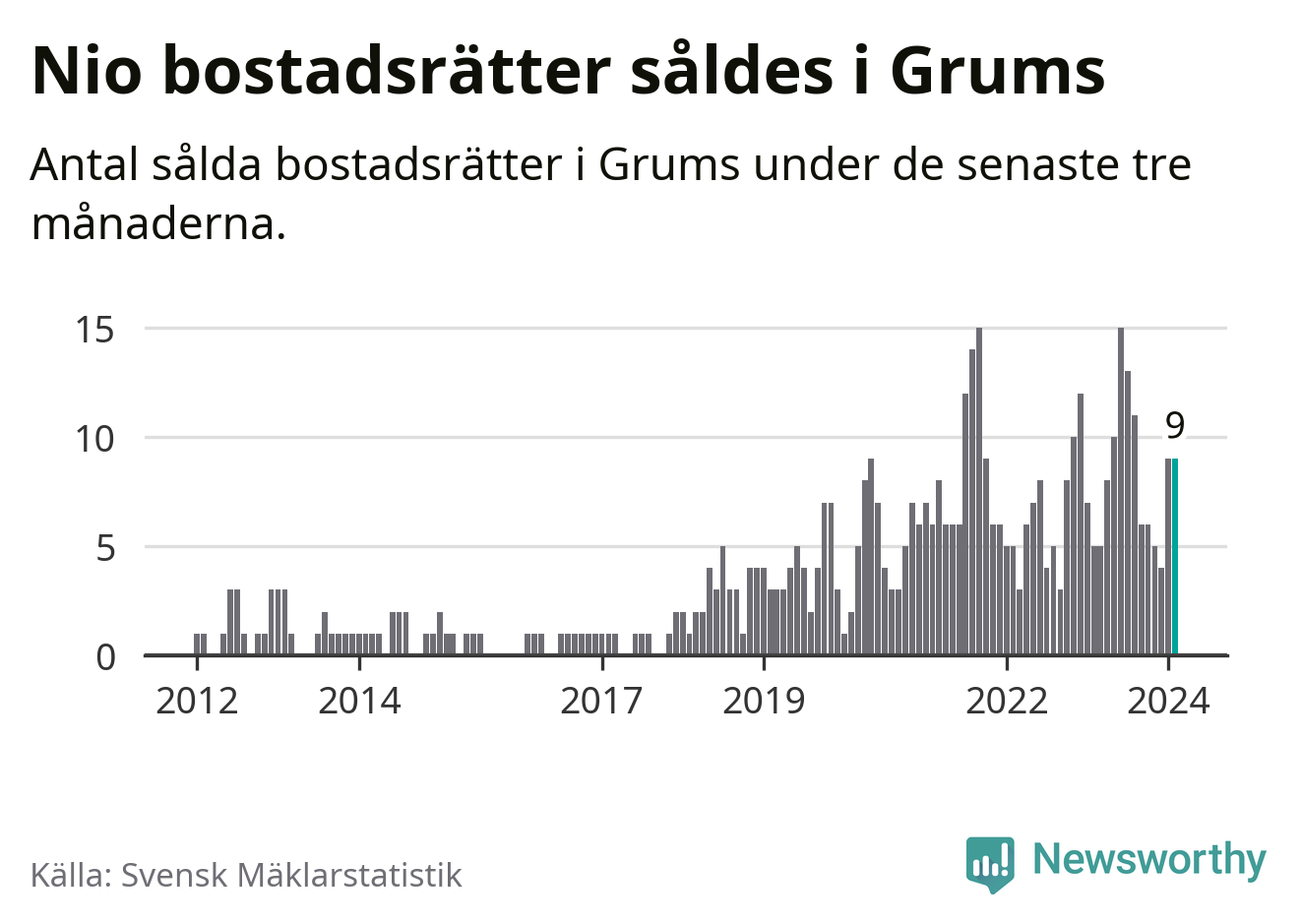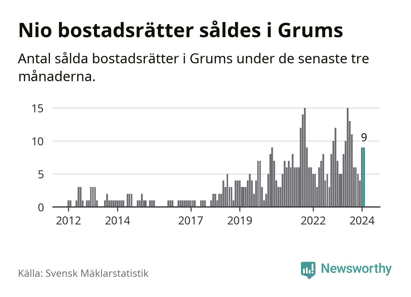 Mellan december och februari gjordes sammanlagt nio affärer med bostadsrätter i Grums kommun. Det kan jämföras med fem vid motsvarande tid i fjol.