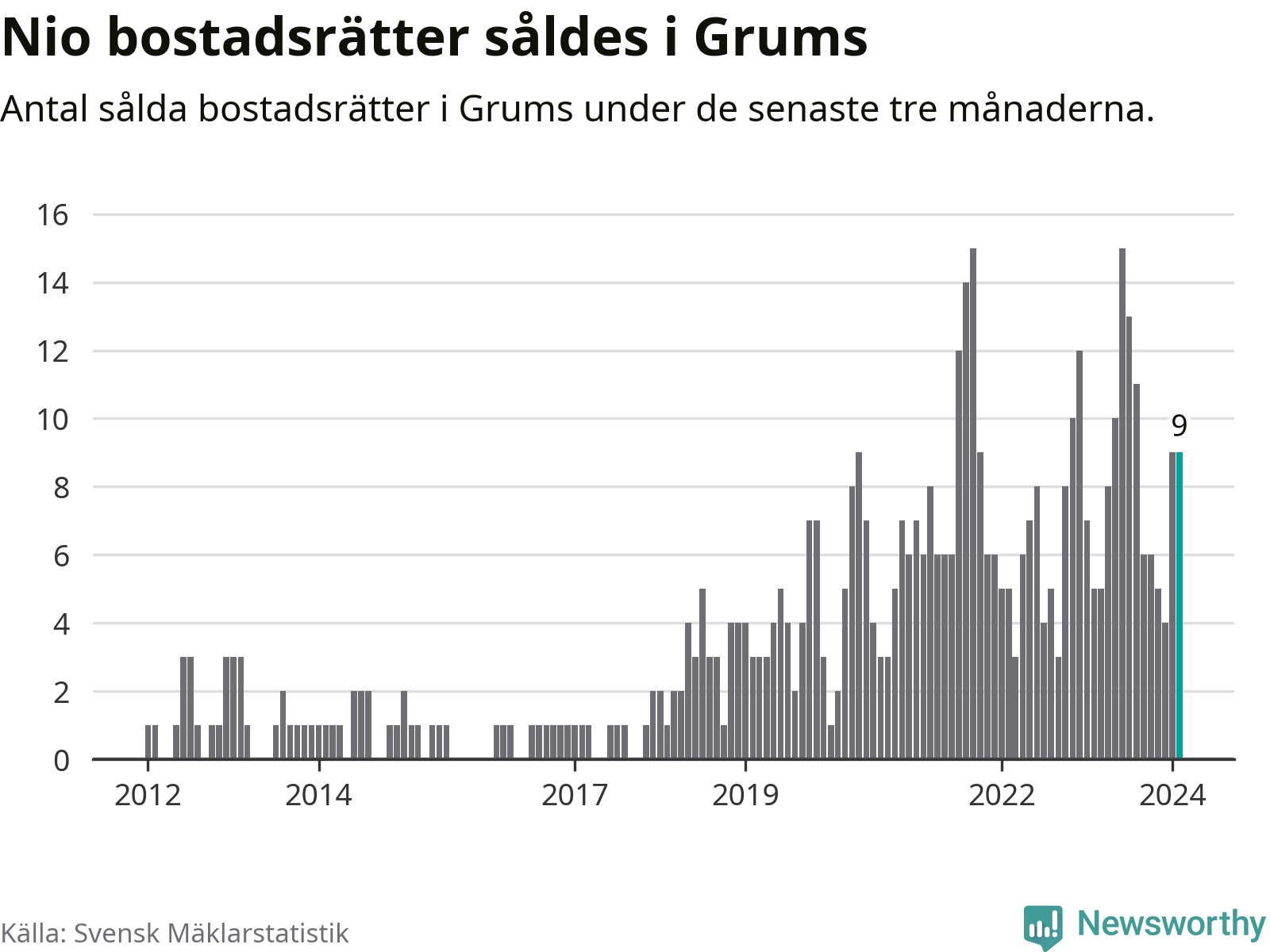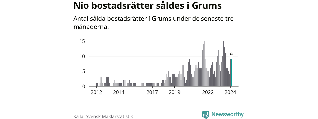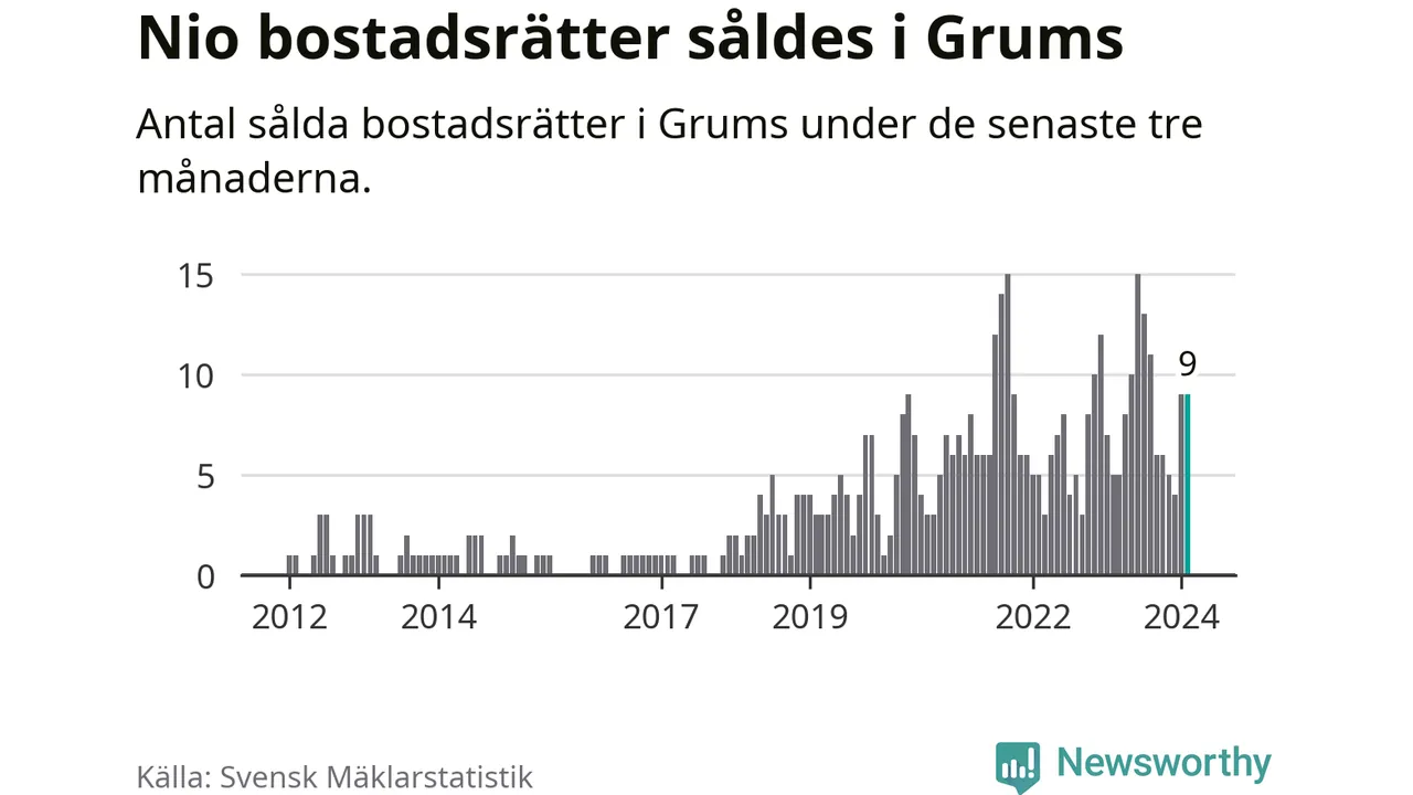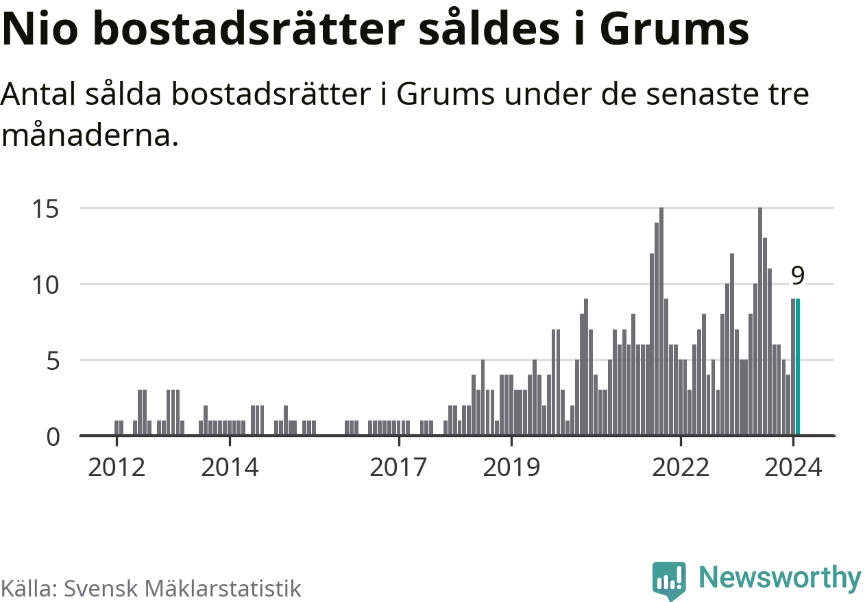 Mellan december och februari gjordes sammanlagt nio affärer med bostadsrätter i Grums kommun. Det kan jämföras med fem vid motsvarande tid i fjol.