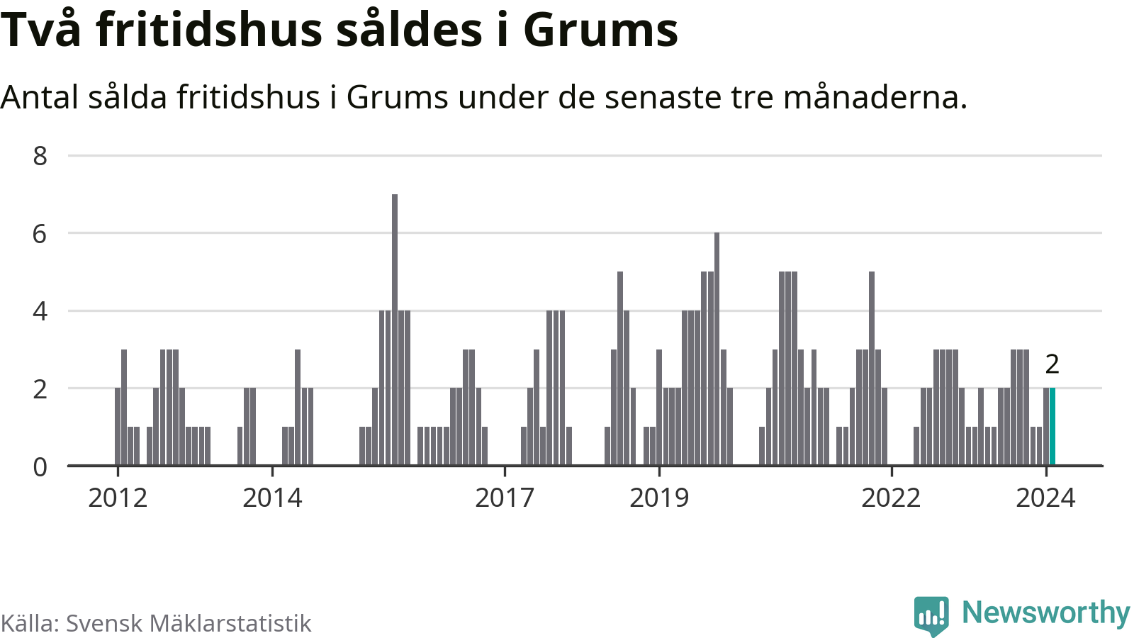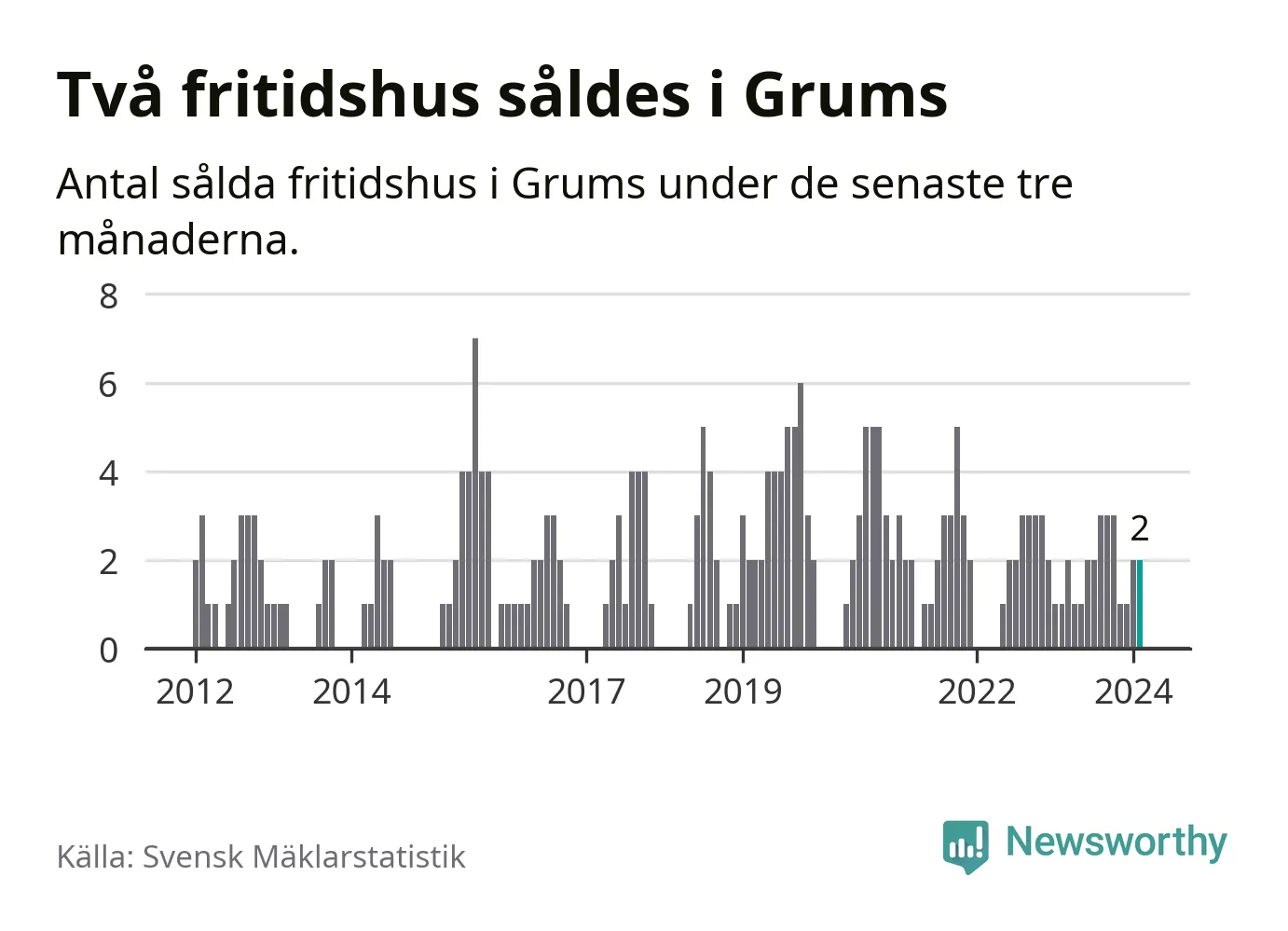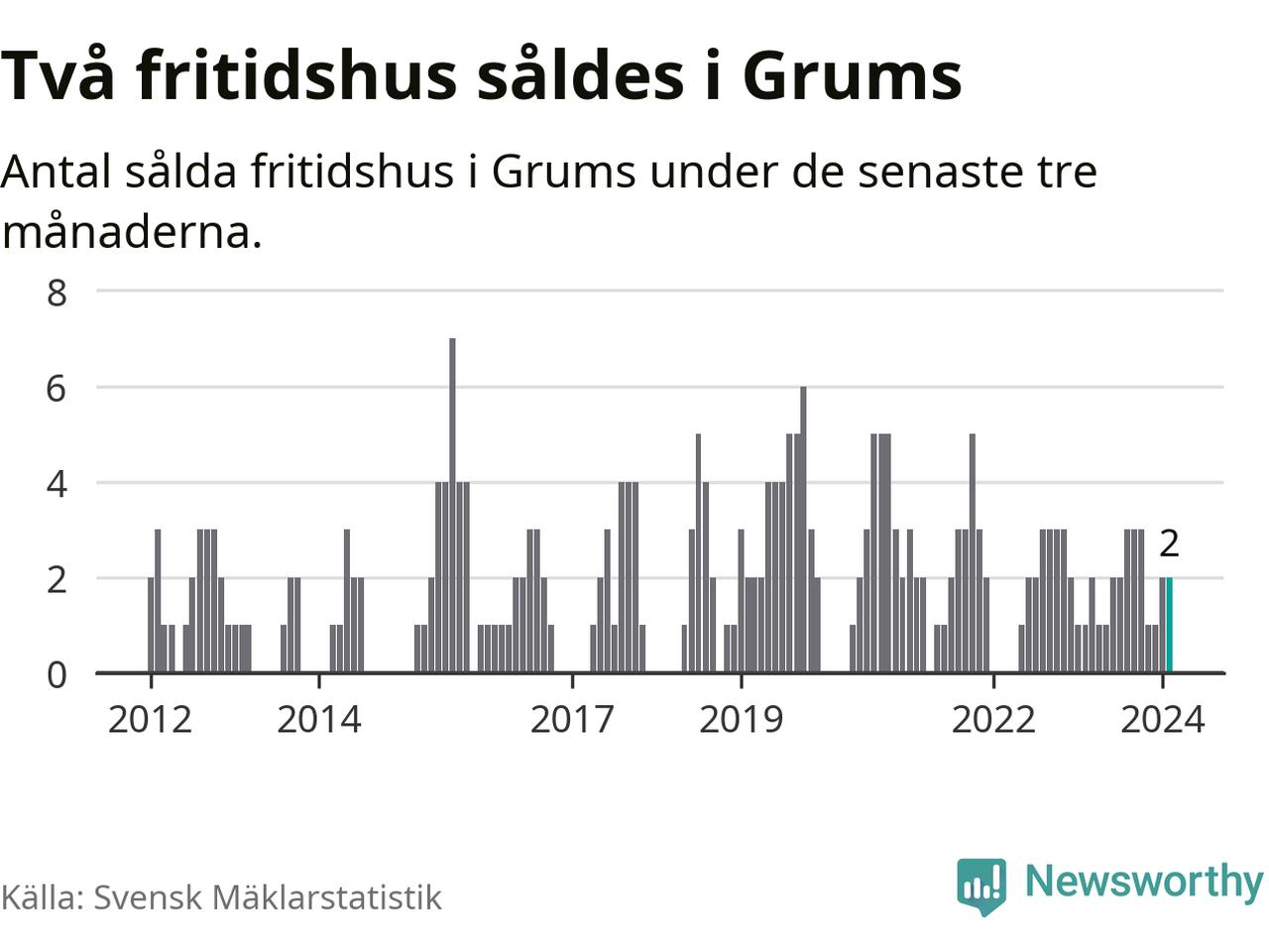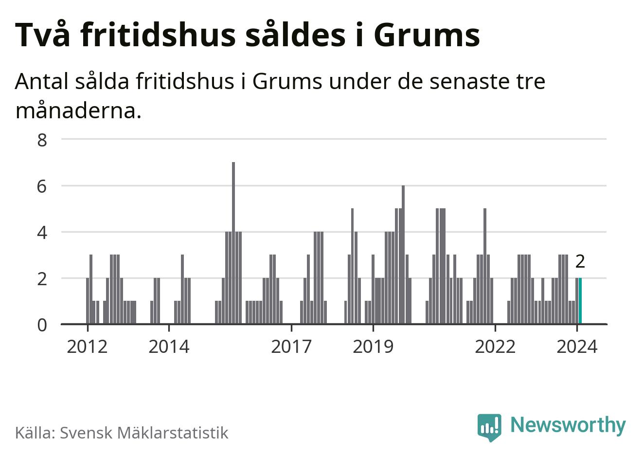 Mellan december och februari gjordes sammanlagt två affärer med fritidshus i Grums kommun. Det kan jämföras med ett vid motsvarande tid i fjol.
