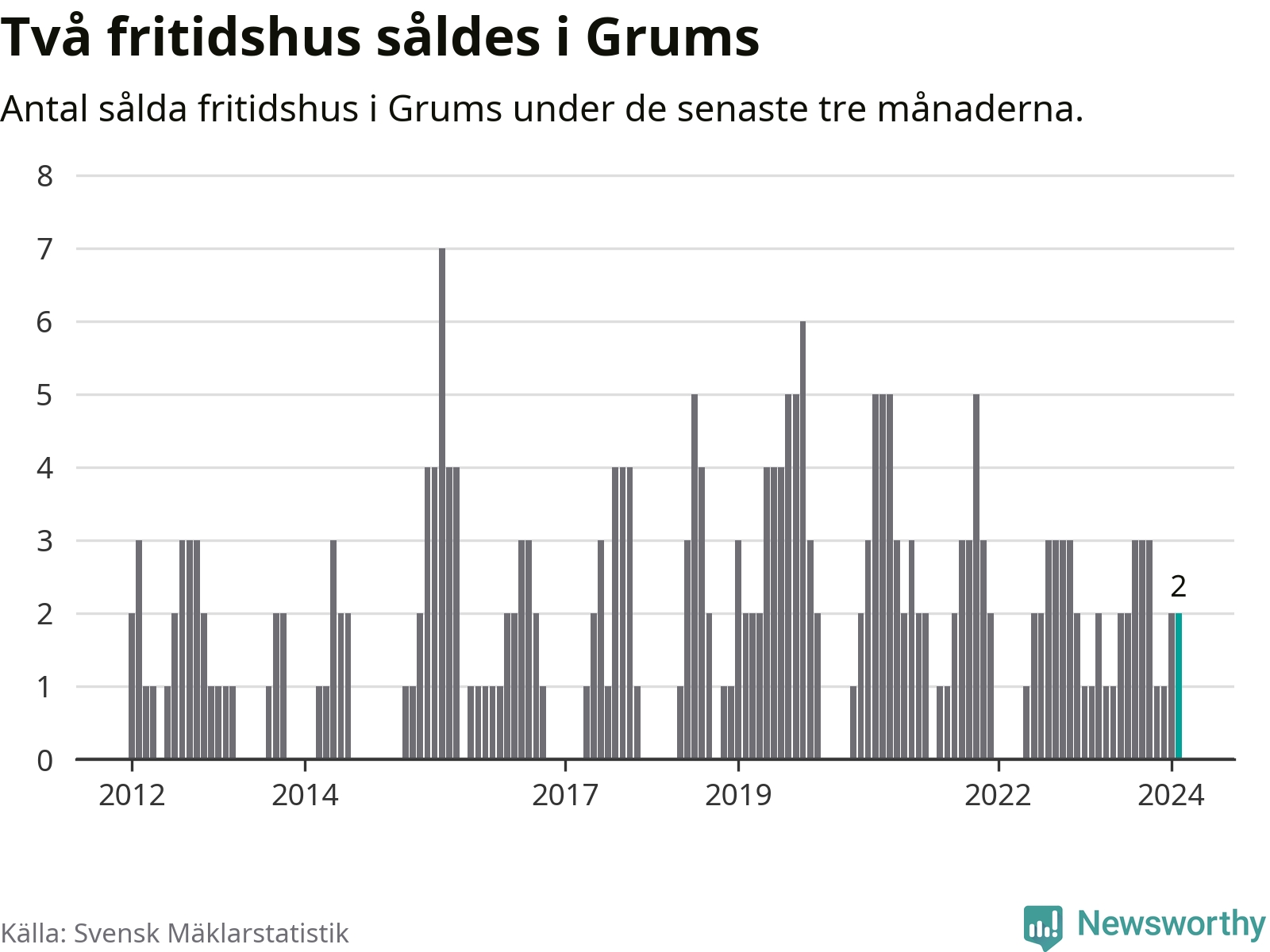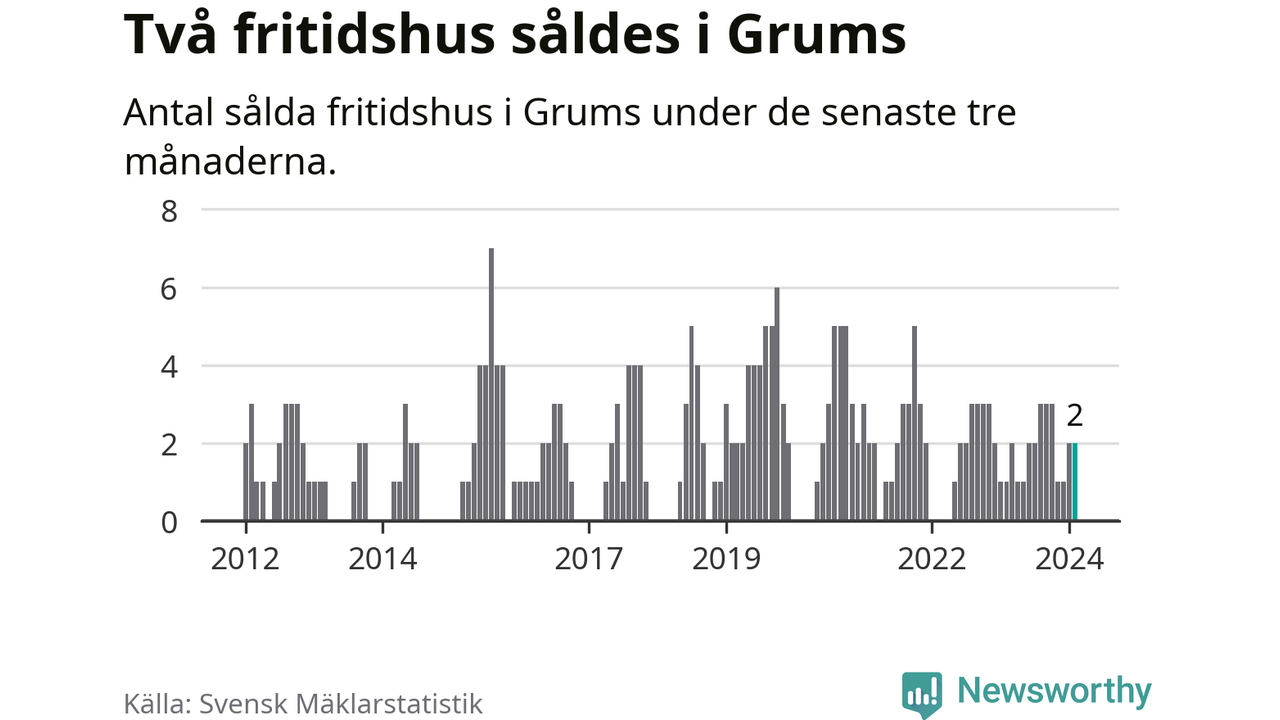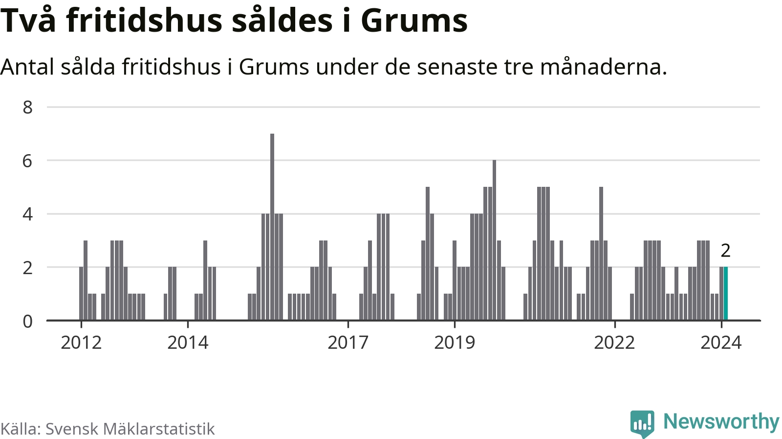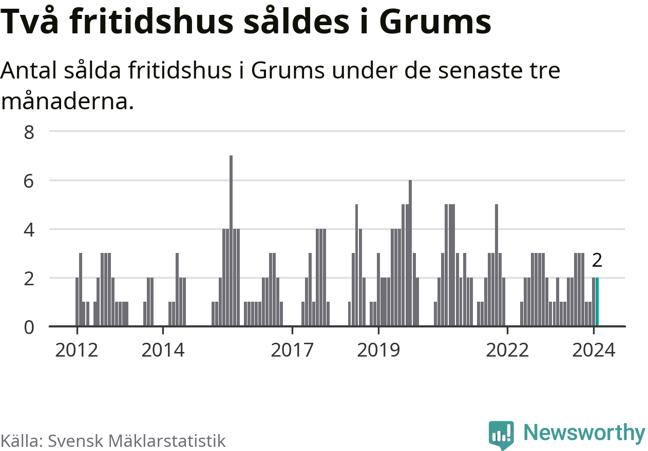 Mellan december och februari gjordes sammanlagt två affärer med fritidshus i Grums kommun. Det kan jämföras med ett vid motsvarande tid i fjol.