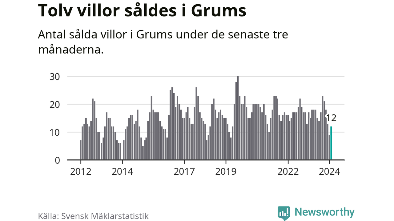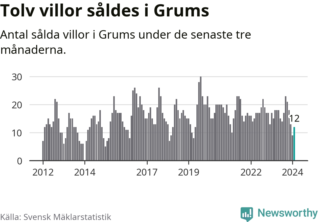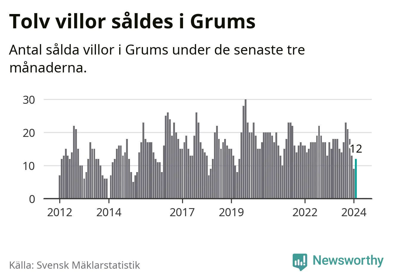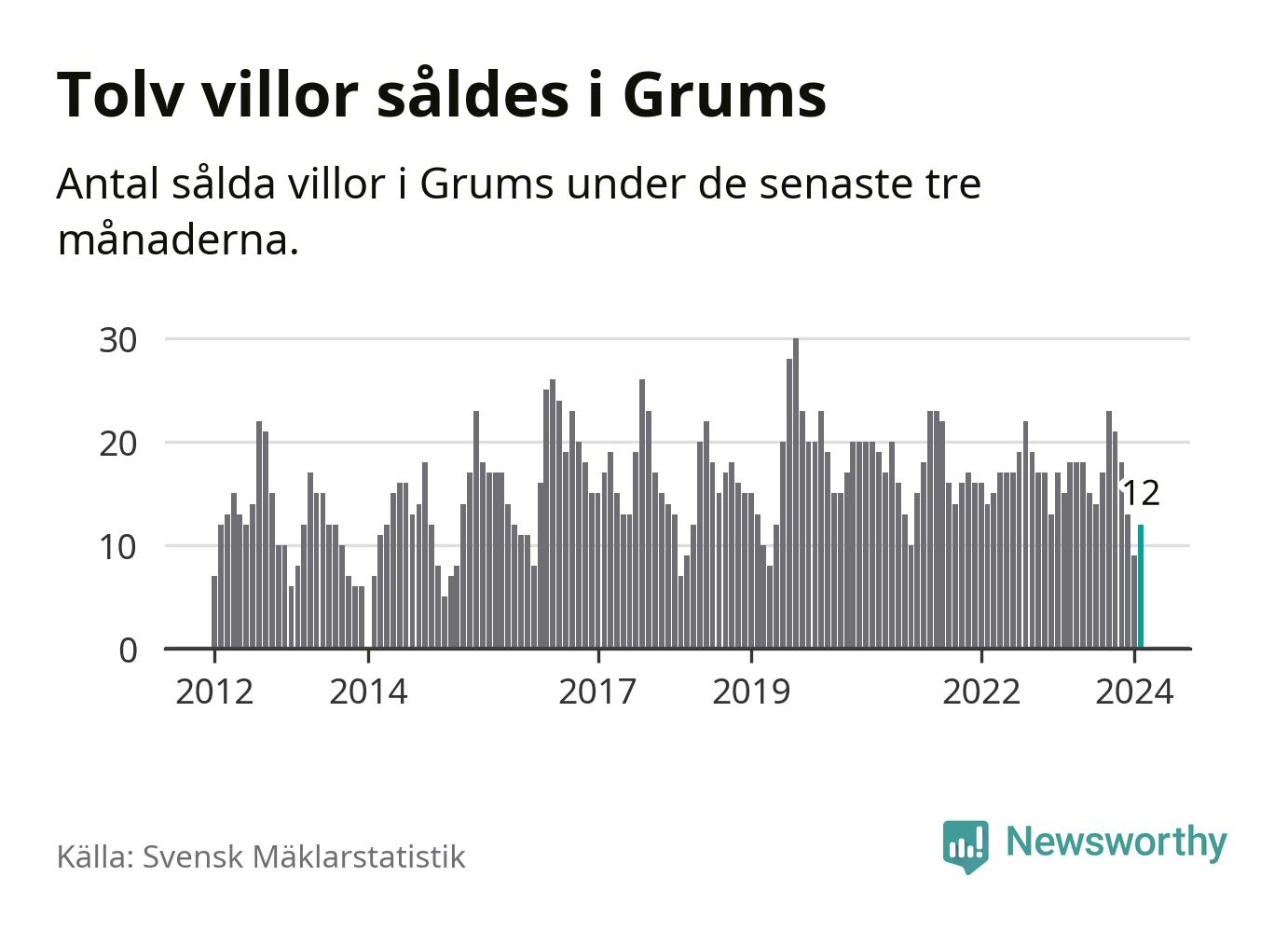 Mellan december och februari gjordes sammanlagt tolv affärer med villor i Grums kommun. Det kan jämföras med 15 vid motsvarande tid i fjol.