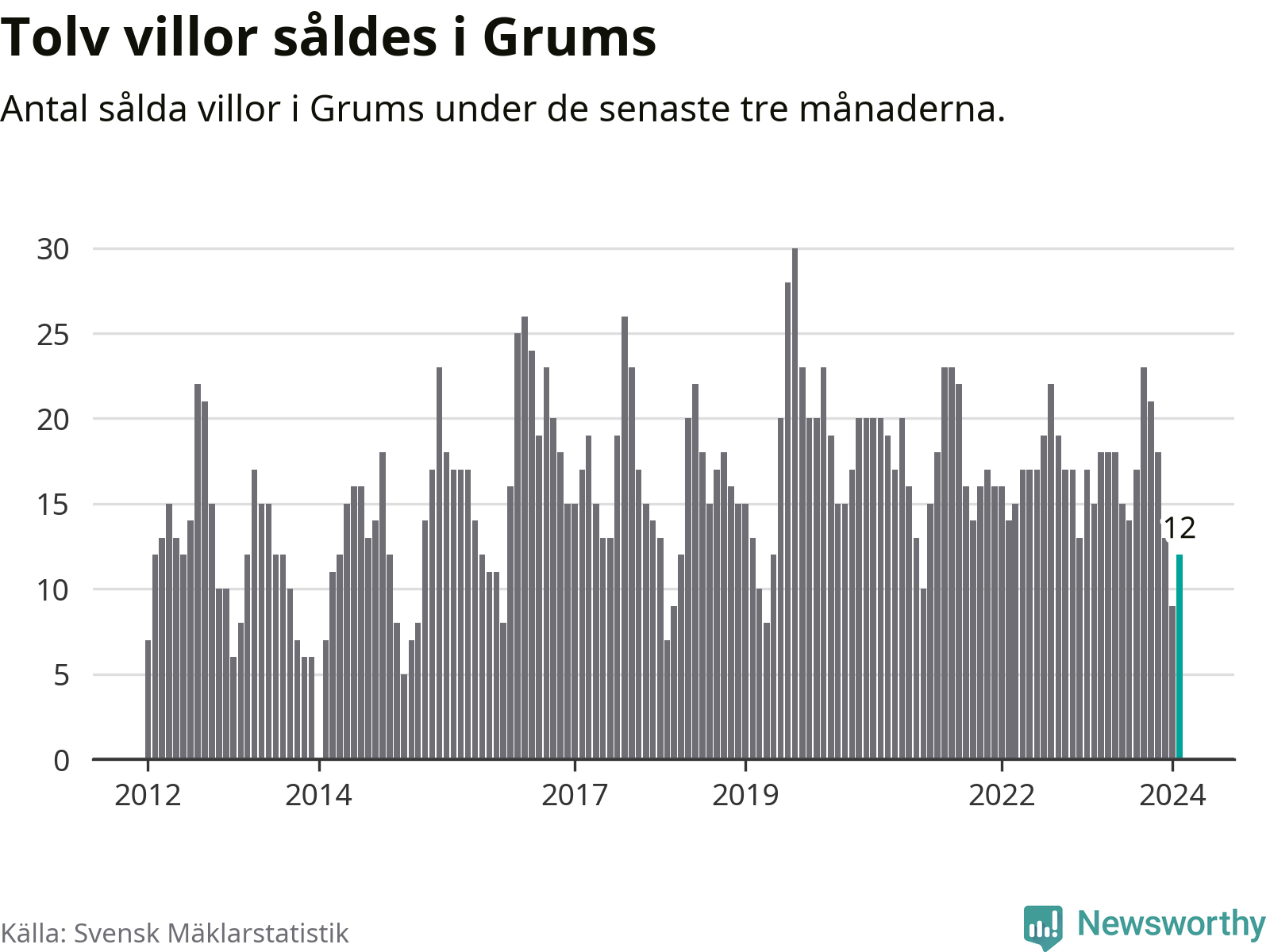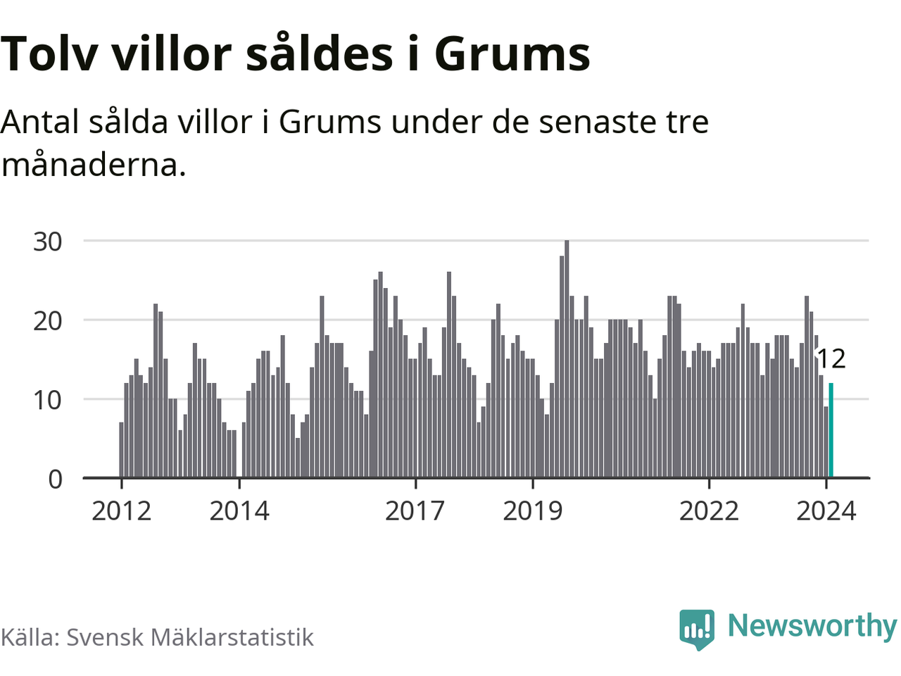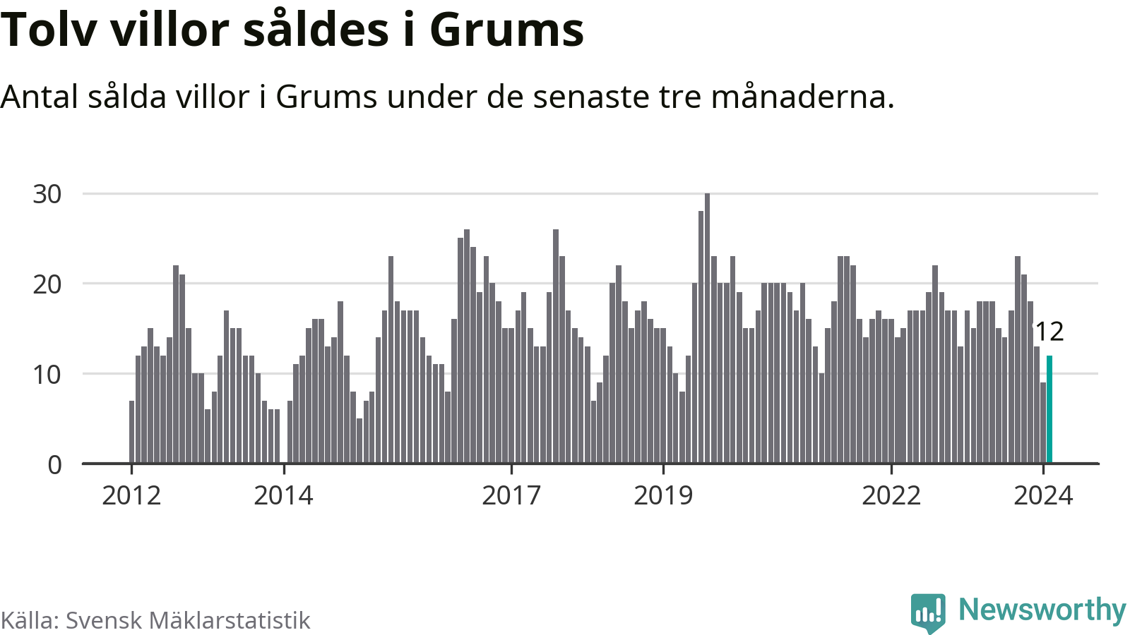 Mellan december och februari gjordes sammanlagt tolv affärer med villor i Grums kommun. Det kan jämföras med 15 vid motsvarande tid i fjol.