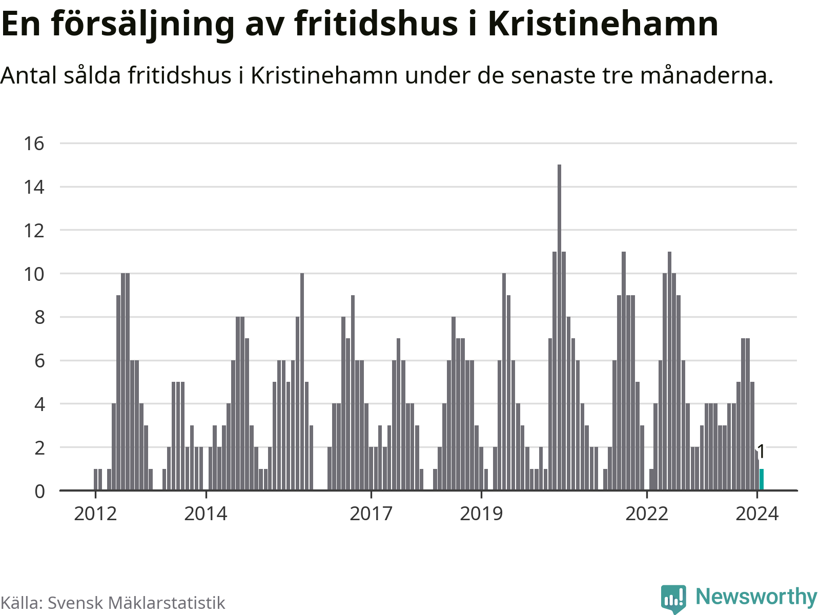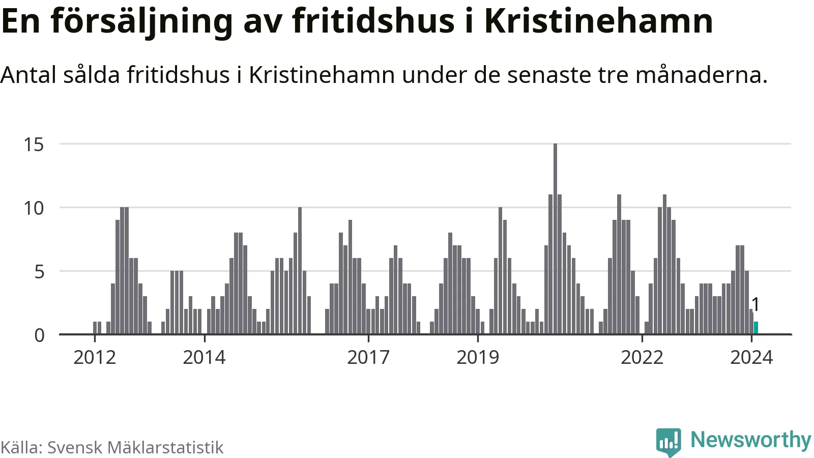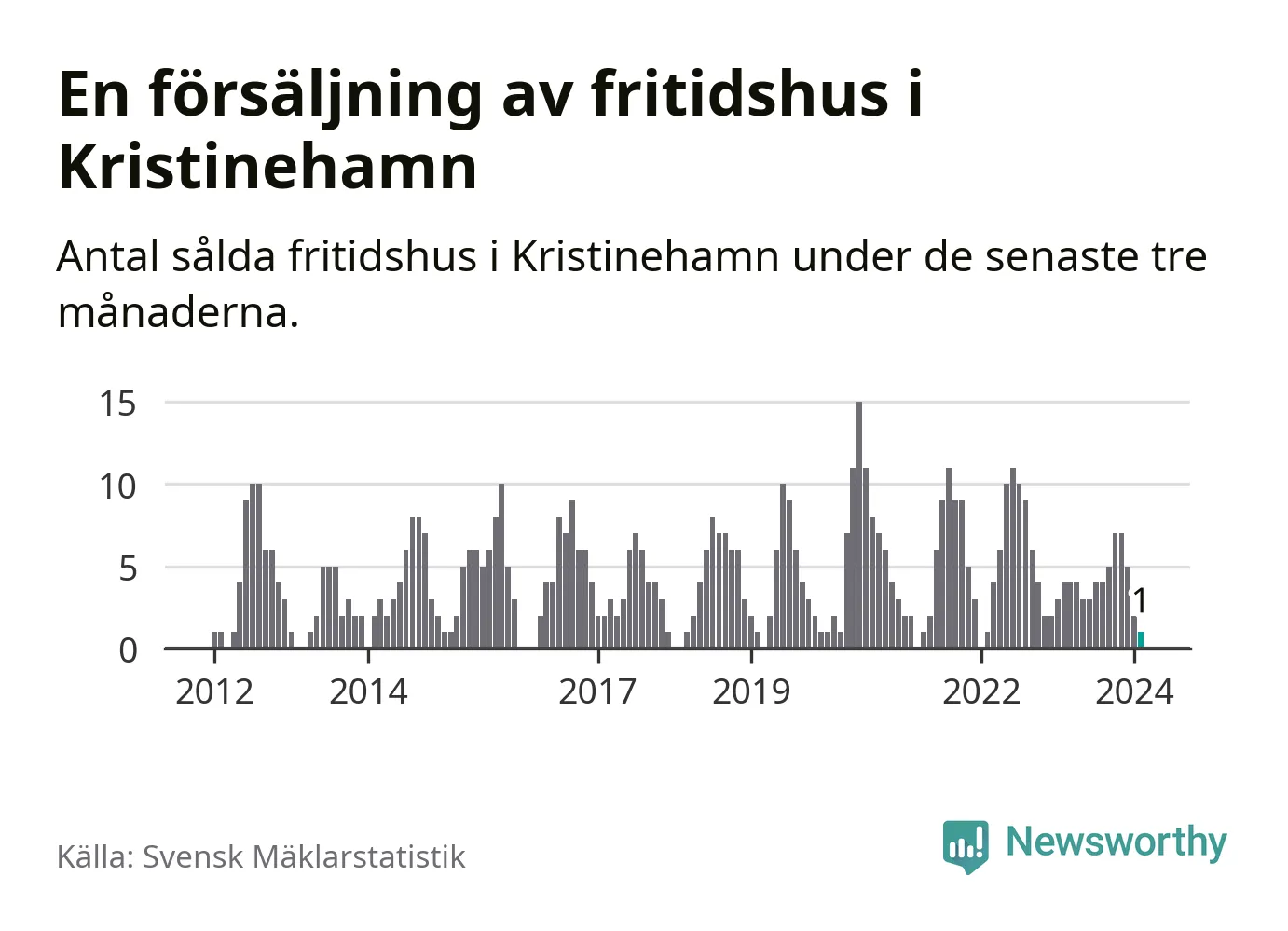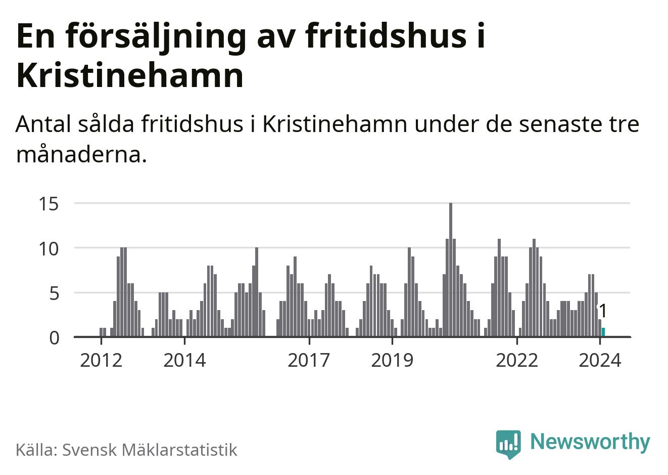 Mellan december och februari gjordes sammanlagt en affär med fritidshus i Kristinehamns kommun. Det kan jämföras med fyra vid motsvarande tid i fjol.