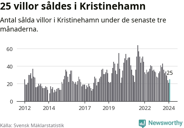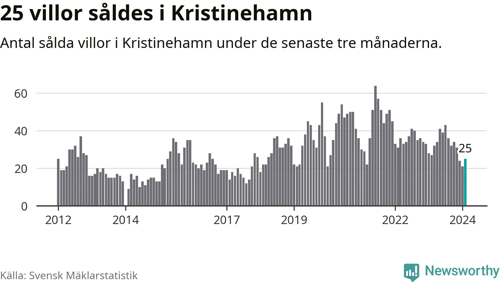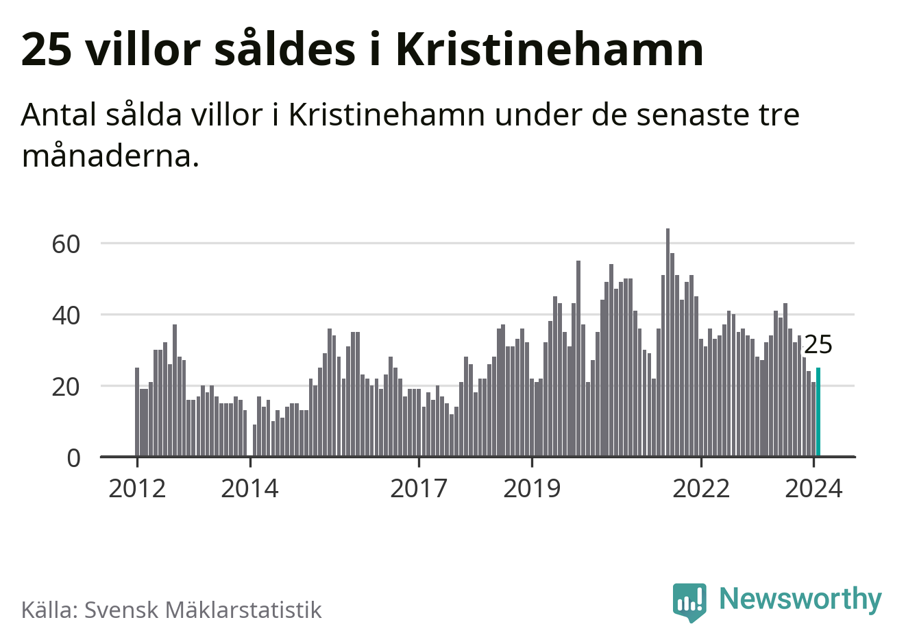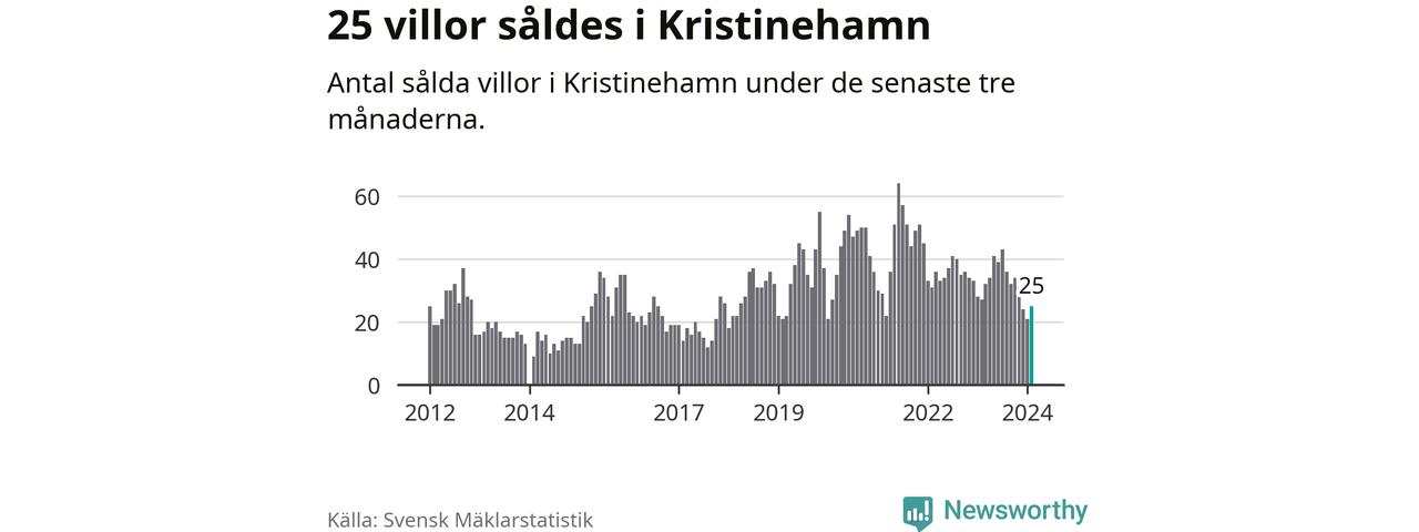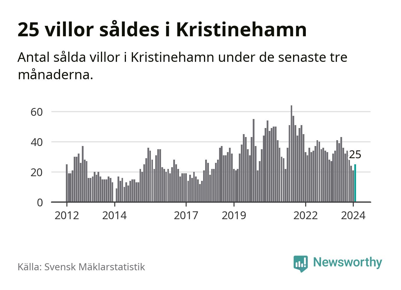 Mellan december och februari gjordes sammanlagt 25 affärer med villor i Kristinehamns kommun. Det kan jämföras med 27 vid motsvarande tid i fjol.