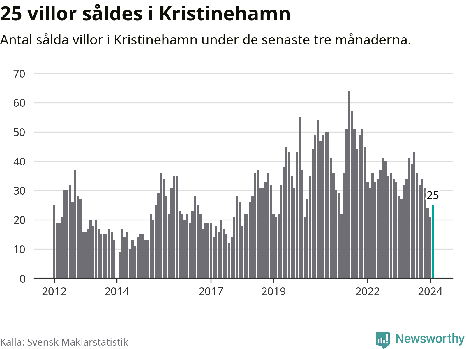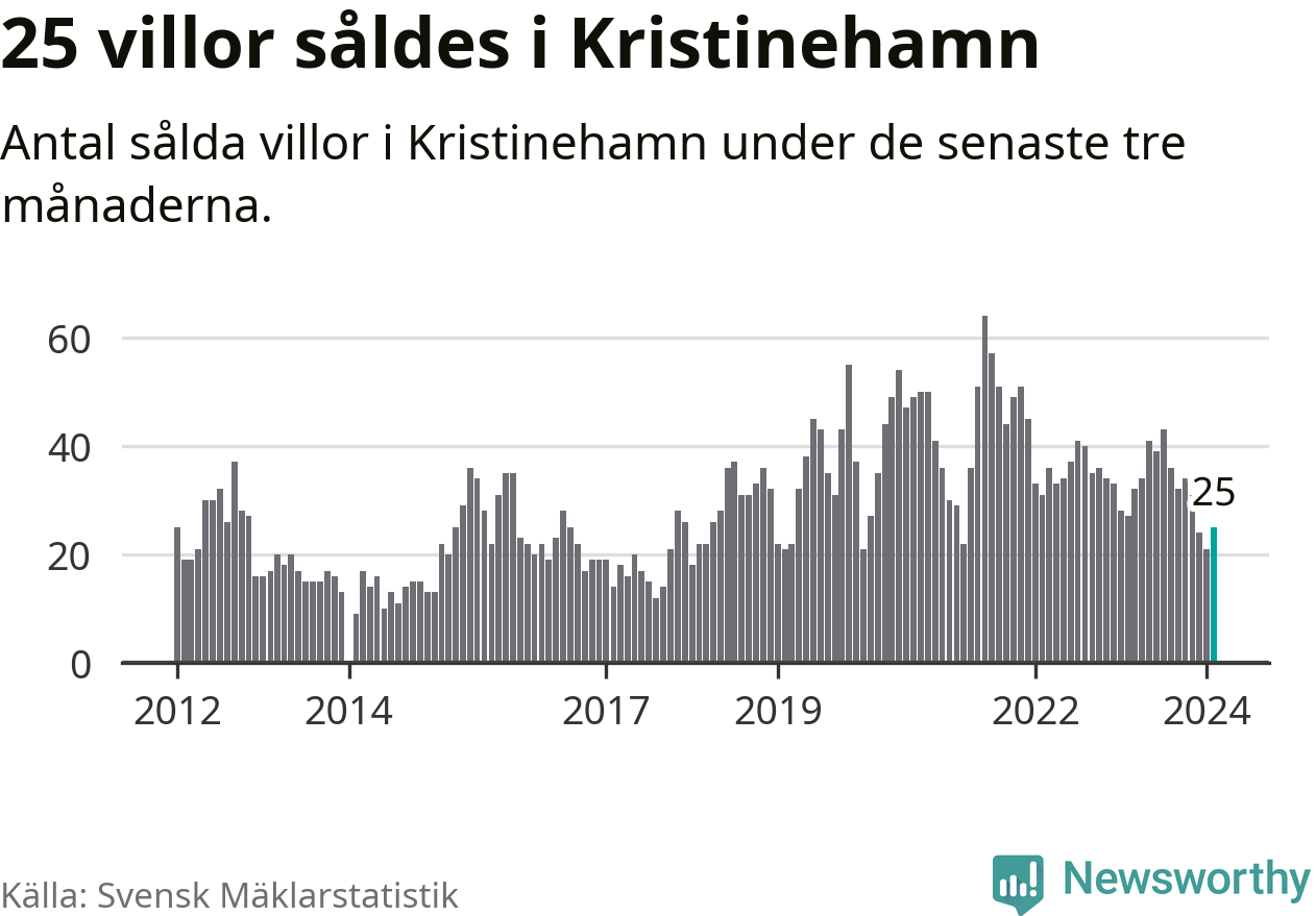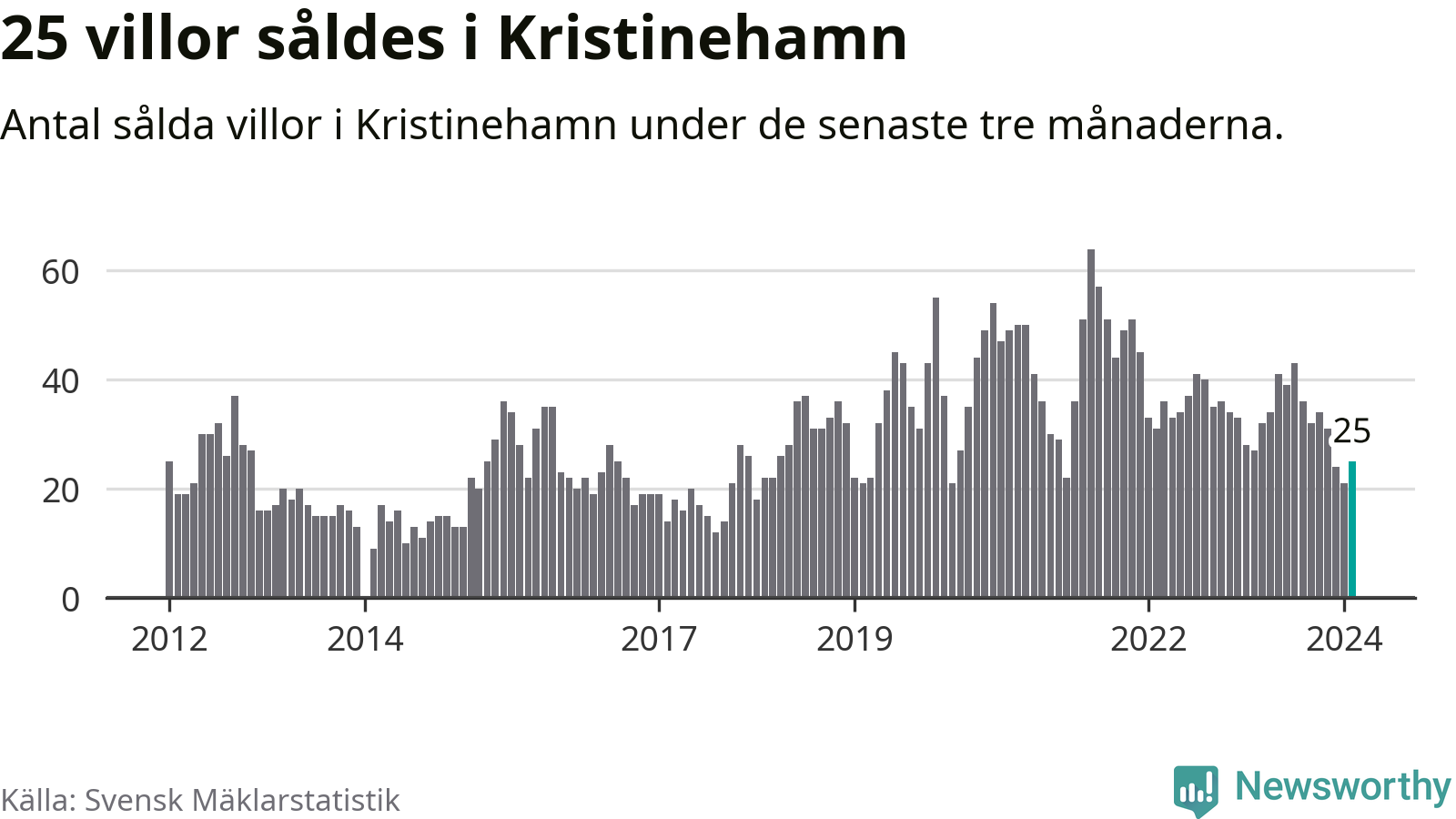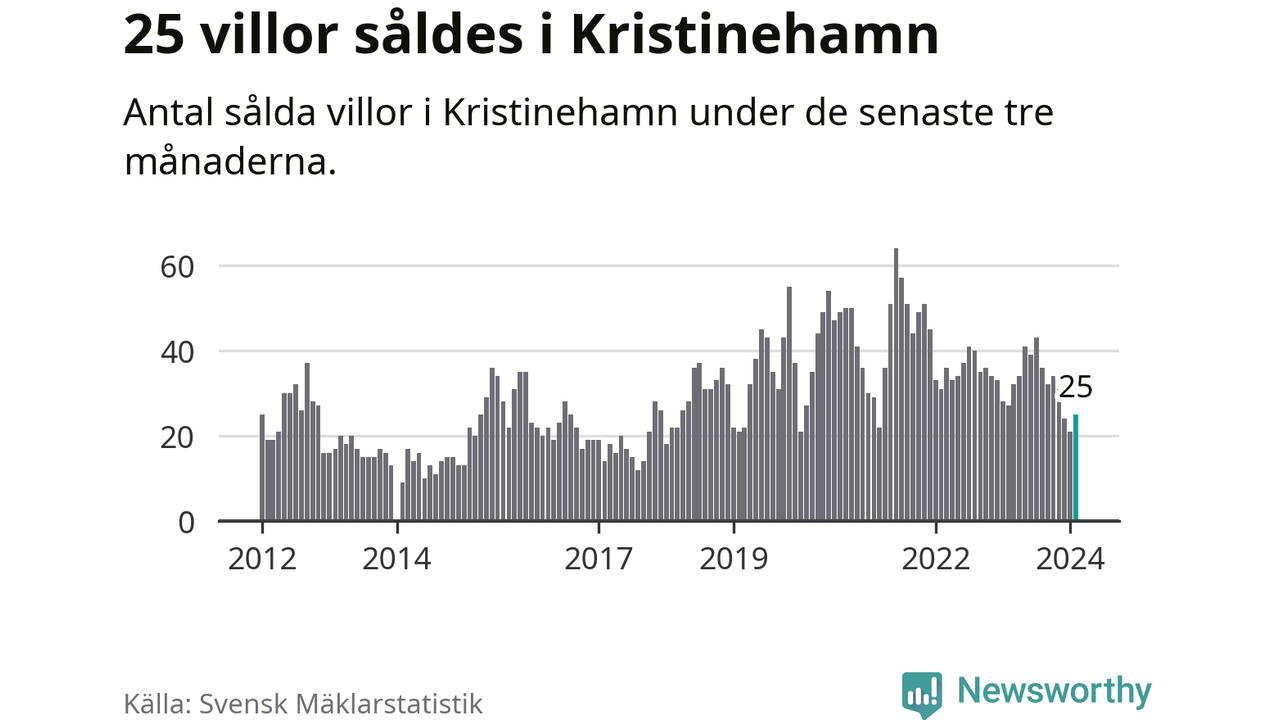 Mellan december och februari gjordes sammanlagt 25 affärer med villor i Kristinehamns kommun. Det kan jämföras med 27 vid motsvarande tid i fjol.