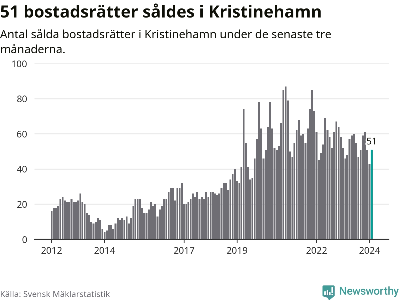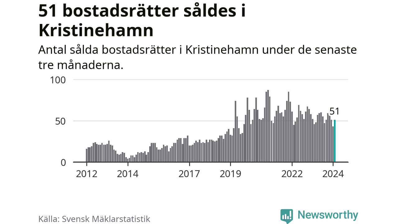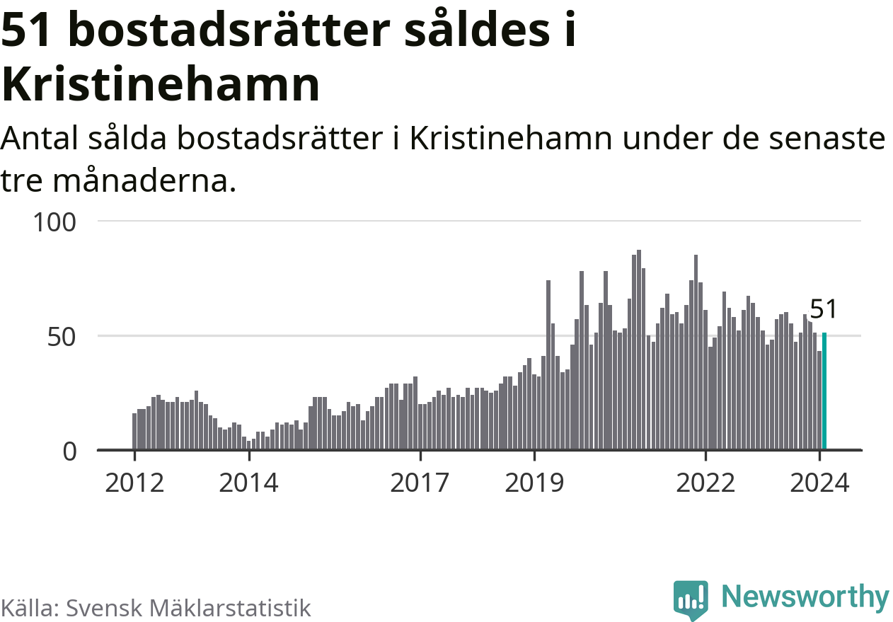 Sammanlagt såldes 51 bostadsrätter i Kristinehamns kommun mellan december och februari till ett genomsnittligt pris på 0,3 miljoner kronor. I fjol gjordes 46 affärer vid den här tiden på året.