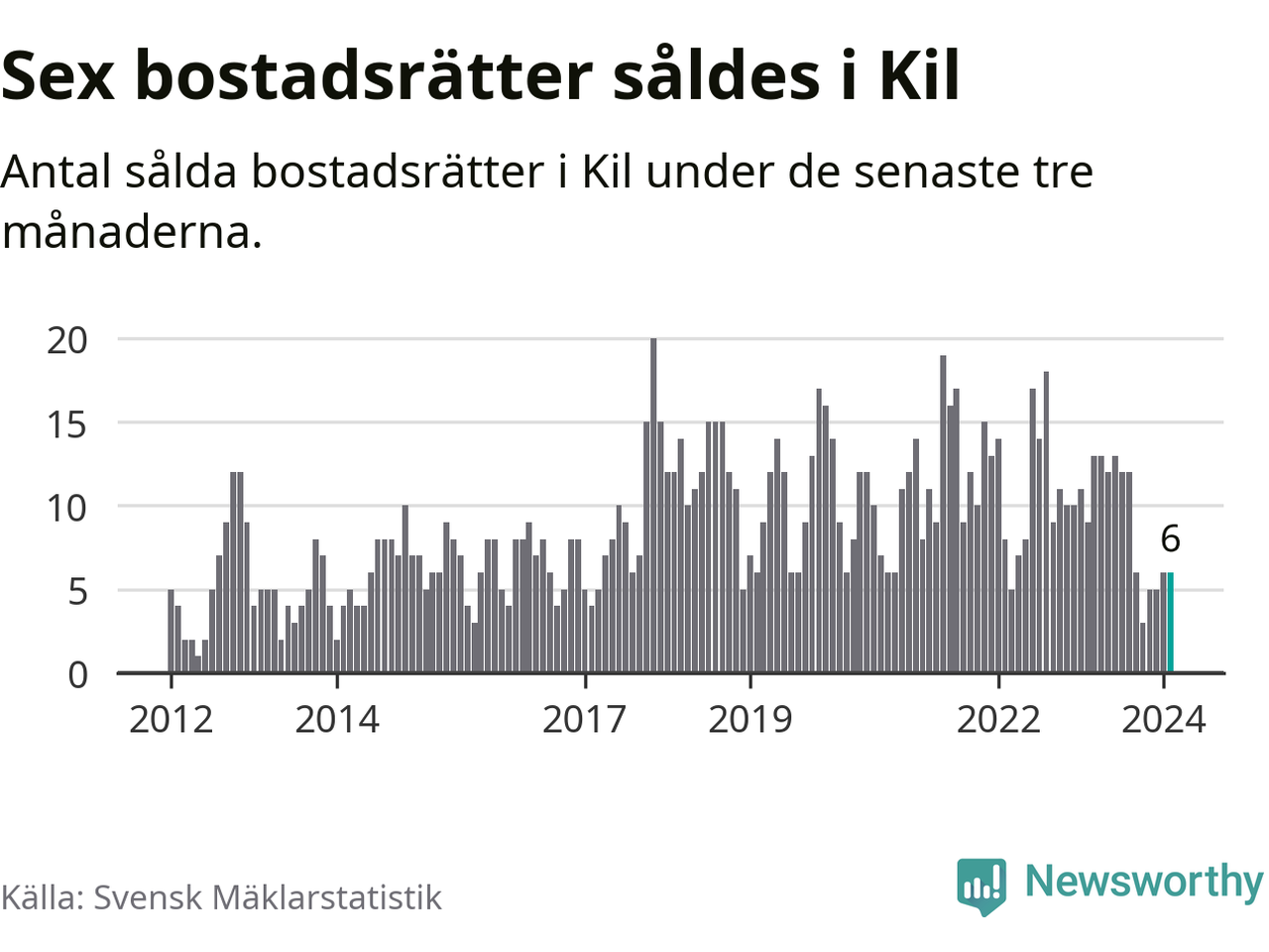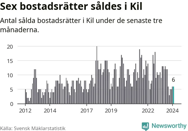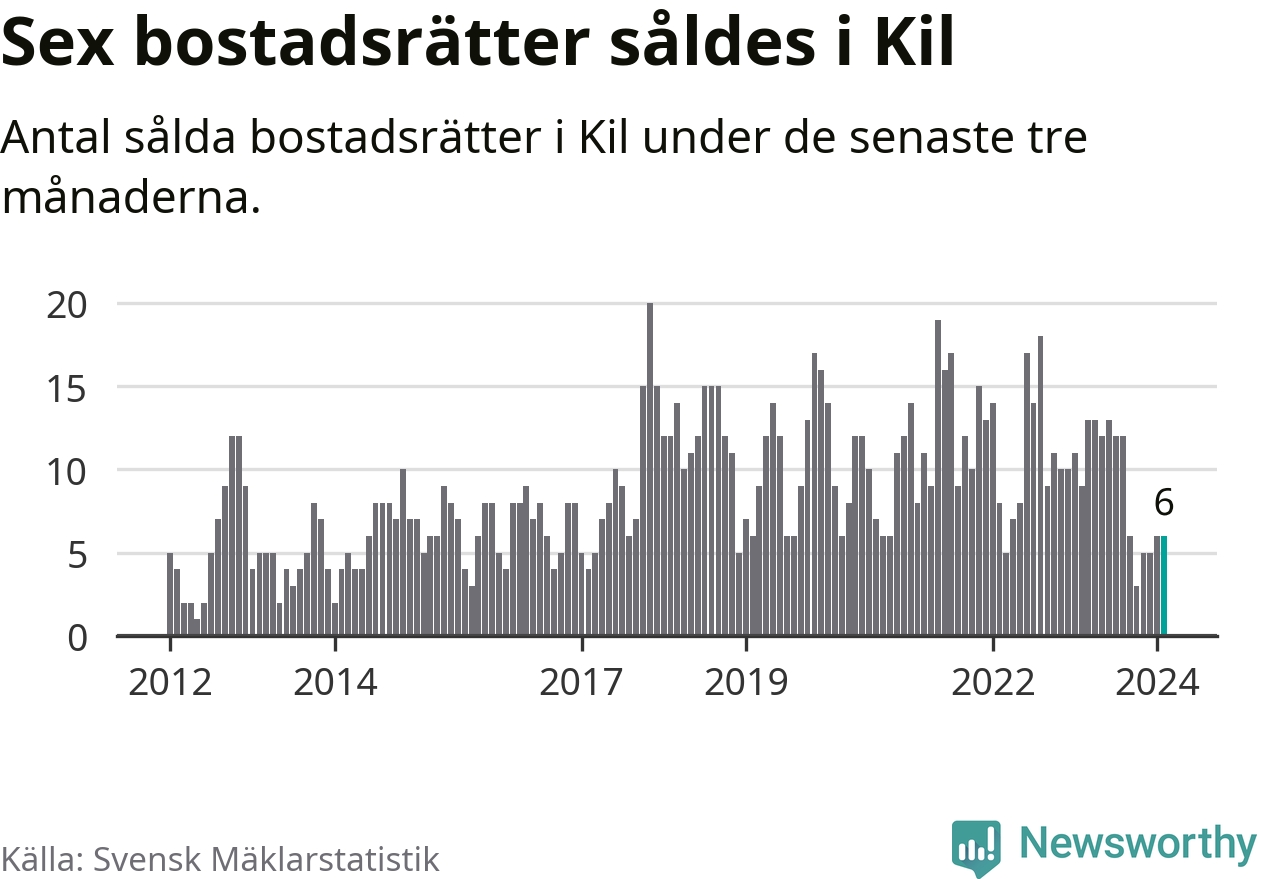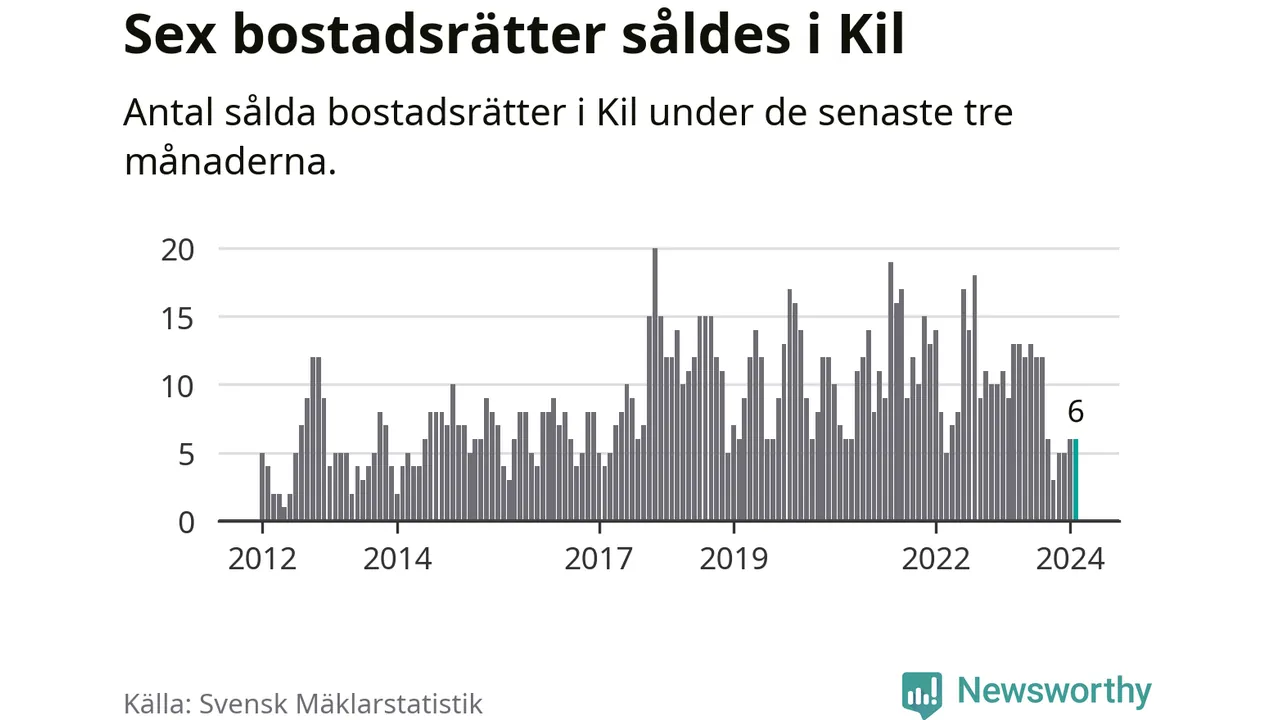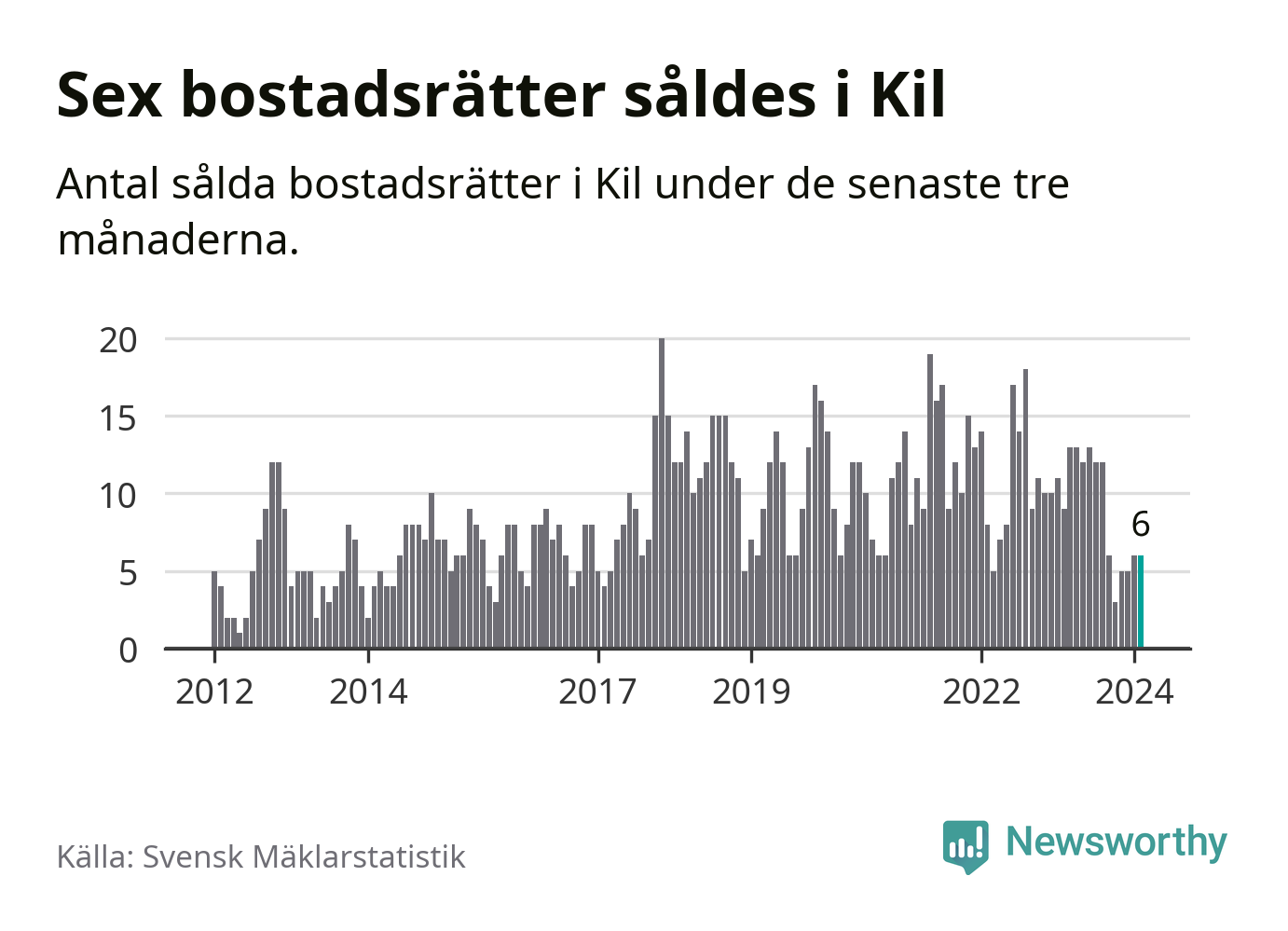 Mellan december och februari gjordes sammanlagt sex affärer med bostadsrätter i Kils kommun. Det kan jämföras med nio vid motsvarande tid i fjol.